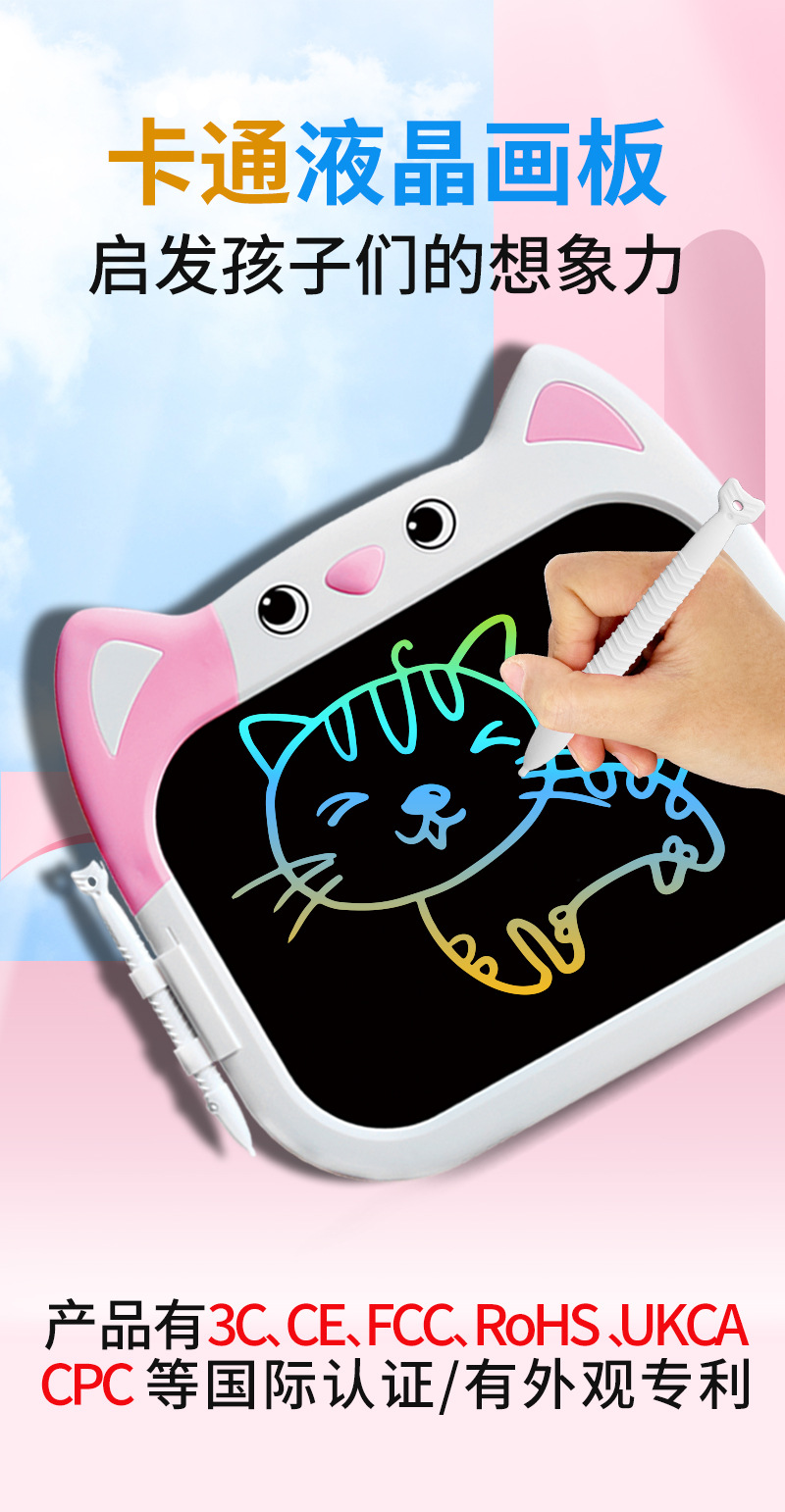 10 인치 고양이 어린이 드로잉 보드 LCD 쓰기 보드 대형 만화 쓰기 보드 아기 낙서 보드 지울 수있는 칠판스토어 가기