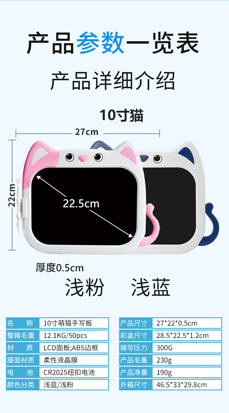 10 인치 고양이 어린이 드로잉 보드 LCD 쓰기 보드 대형 만화 쓰기 보드 아기 낙서 보드 지울 수있는 칠판