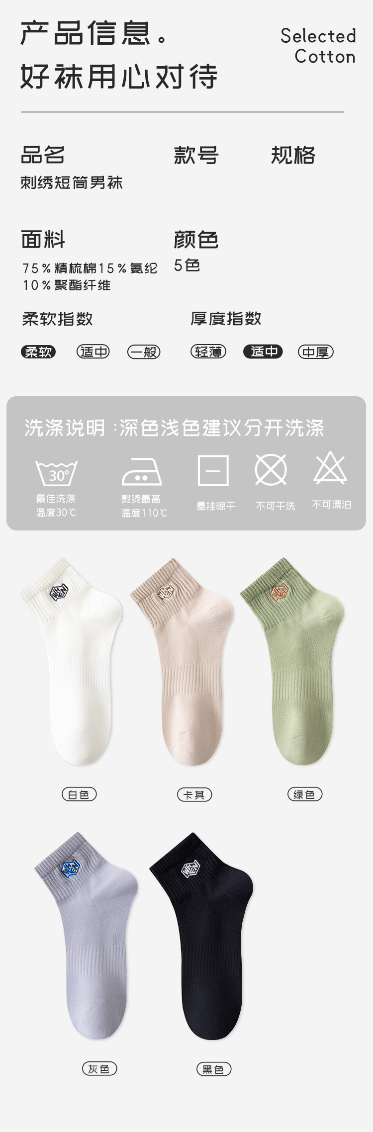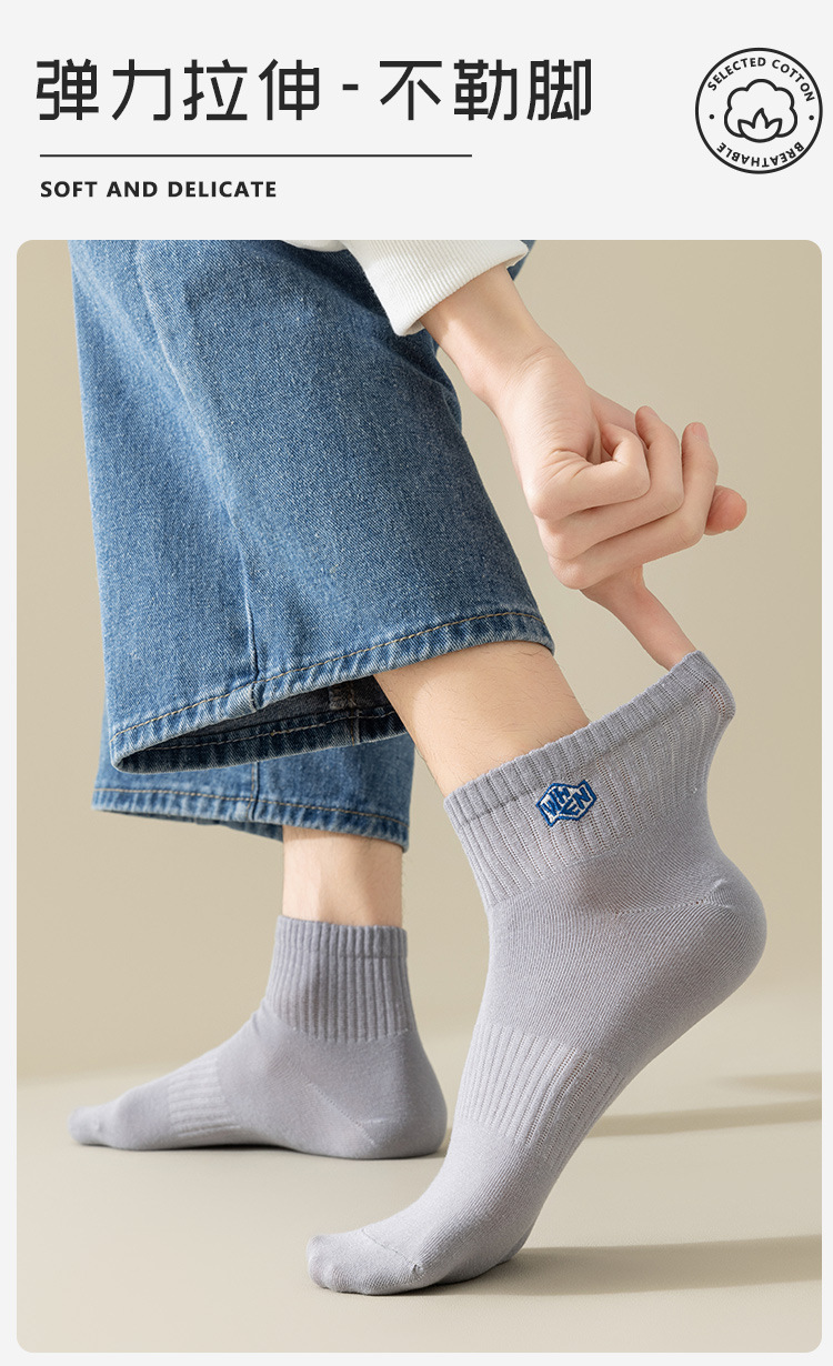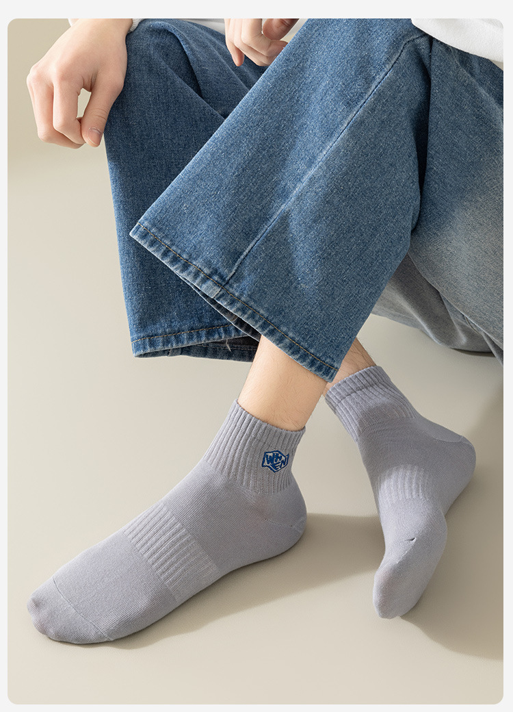 학생 양말 남성 양말 봄 수 놓은 땀 흡수성 짧은 양말 모든 일치하는 스포츠 양말에 트렌디 한 원피스 배달