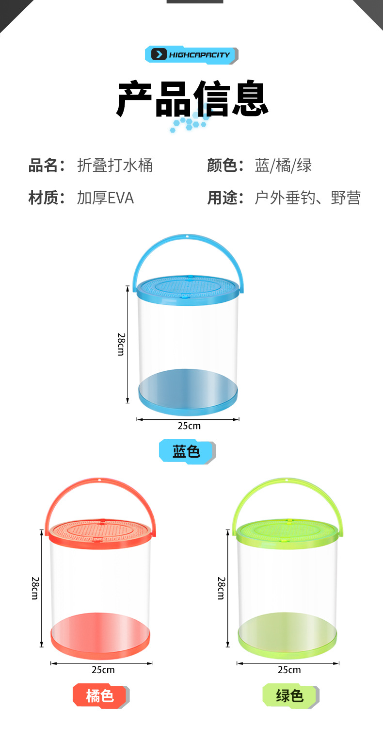 투명한 EVA 라운드 버킷 야외 레저 휴대용 생선 양동이 자동차 휴대용 이동식 접이식 작은 양동이