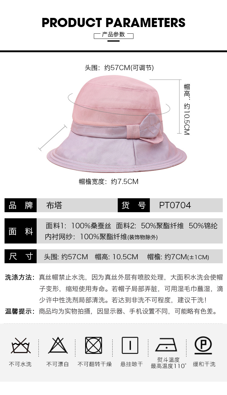 부타 태양 모자 여성의 여름 여행 태양 모자 해변 경량 통기성 뽕나무 실크 태양 모자 PT0704