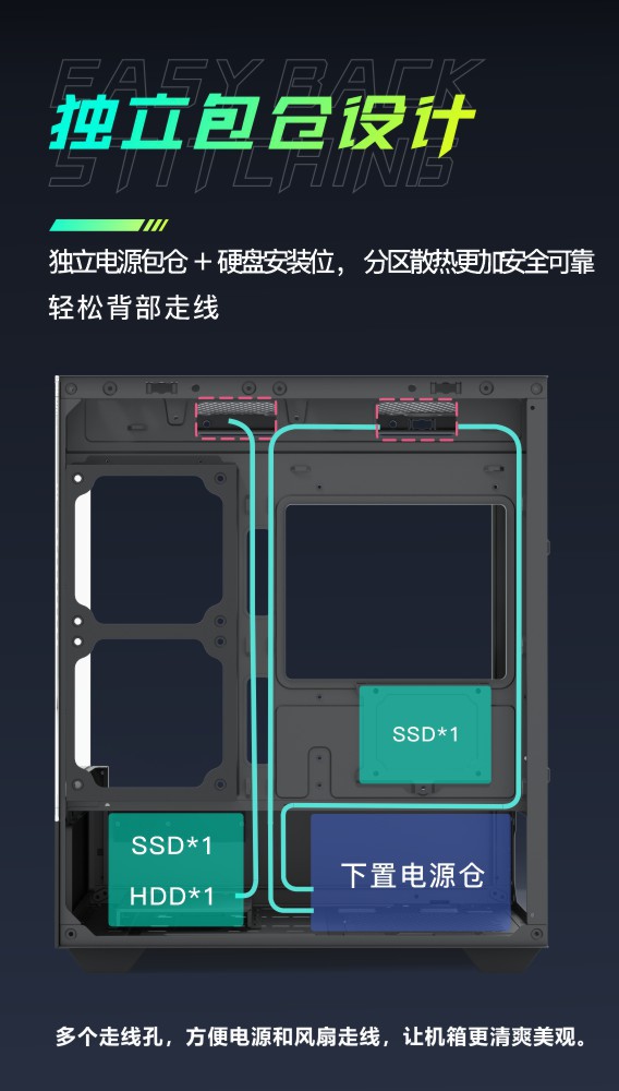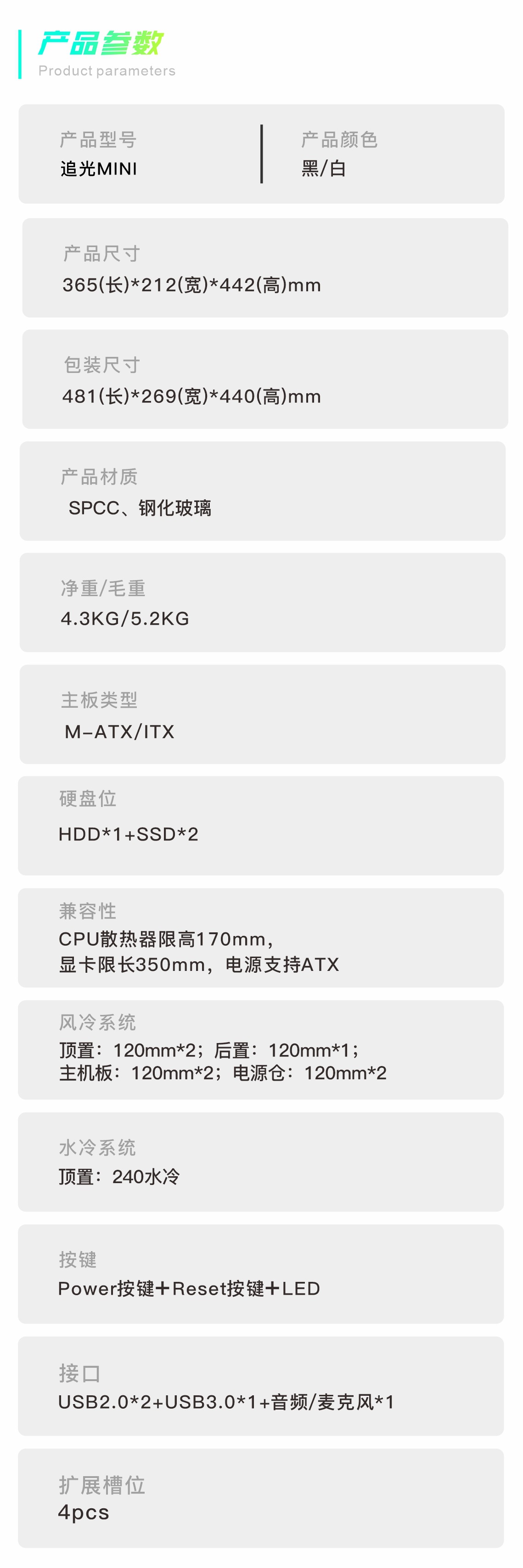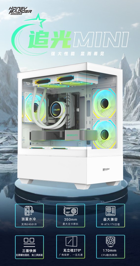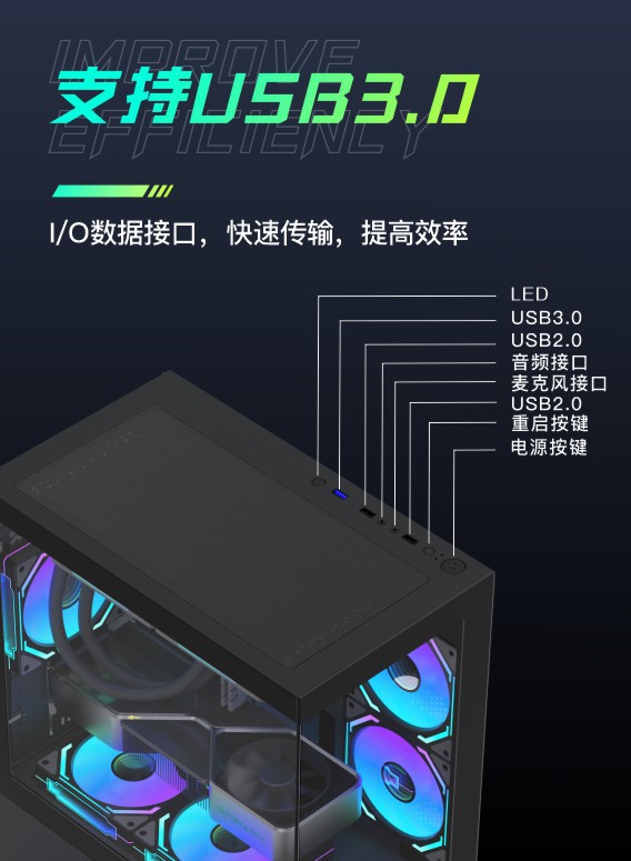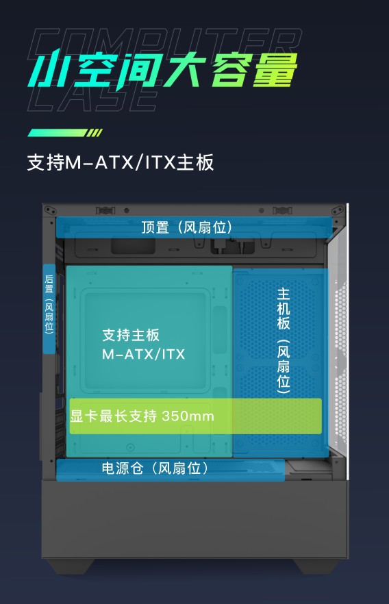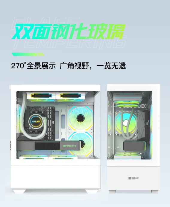 小空间大容量M-ATX无立柱270°全景双面钢化玻璃台式电脑机箱