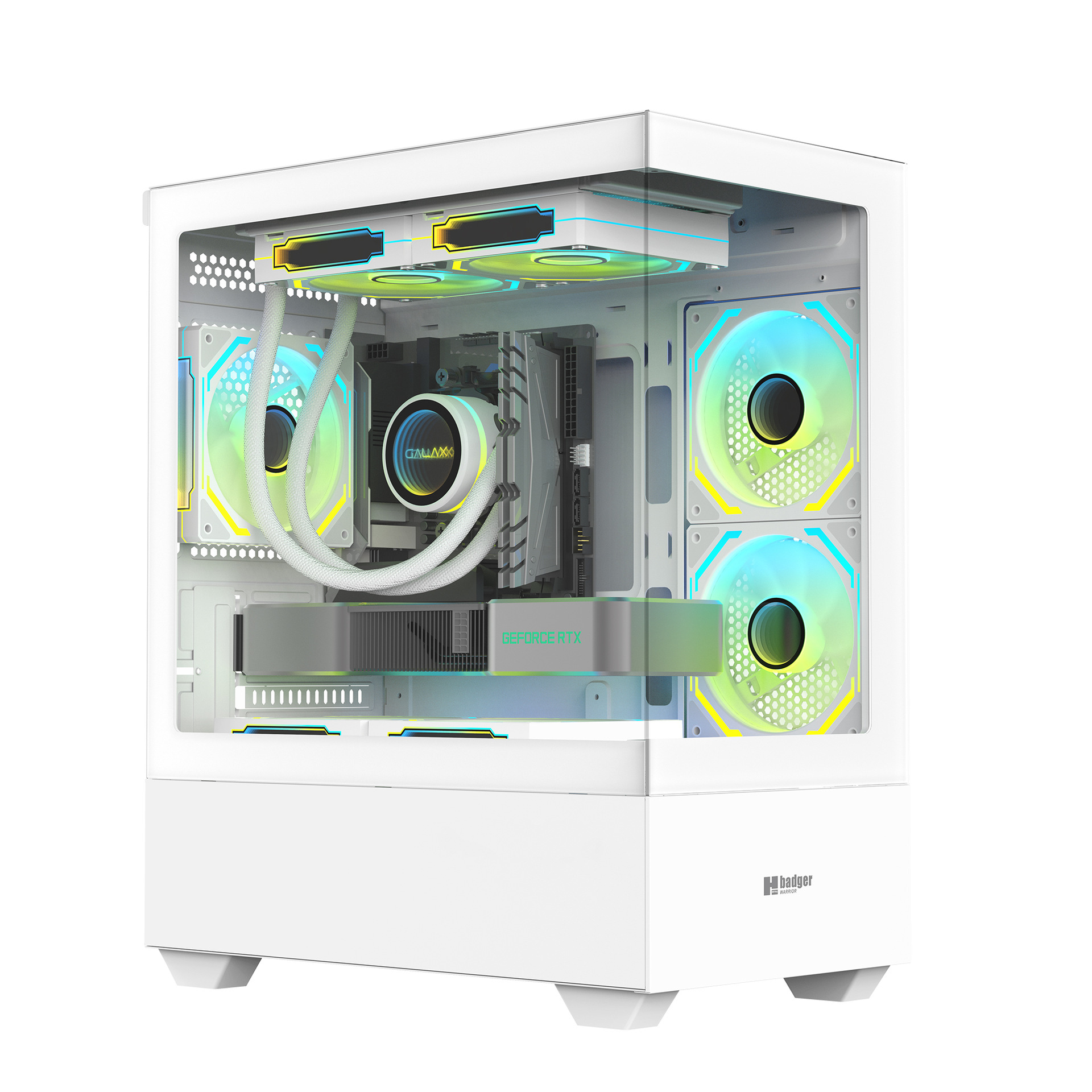 작은 공간 대용량 M-ATX 컬럼 프리 270 ° 파노라마 양면 강화 유리 데스크탑 컴퓨터 케이스