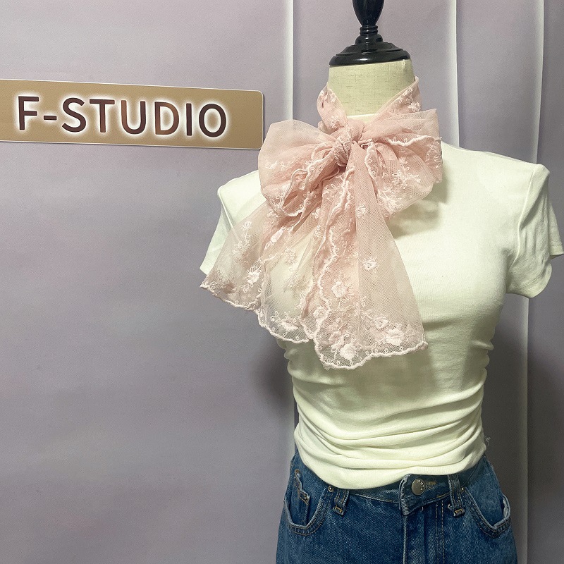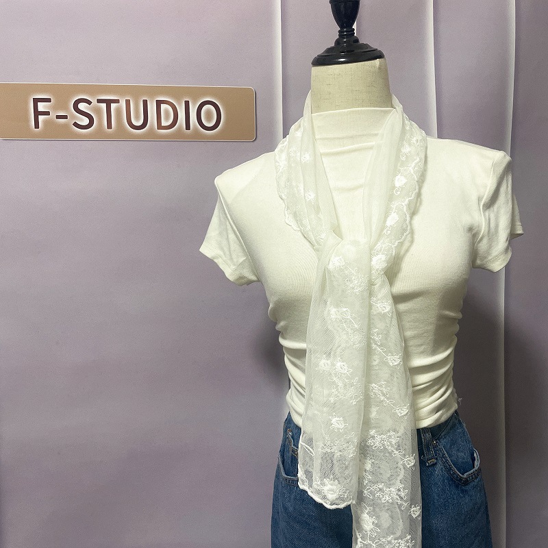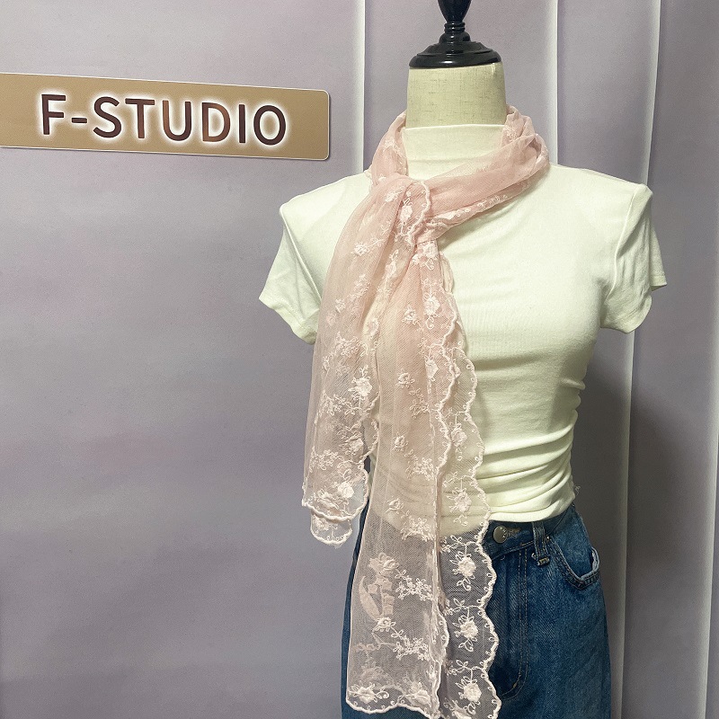 신선하고 아름다운 더블 행 자수 레이스 작은 스카프 우아한 복고풍 예술적 스카프 여성의 봄과 여름 스카프 한국 얇은