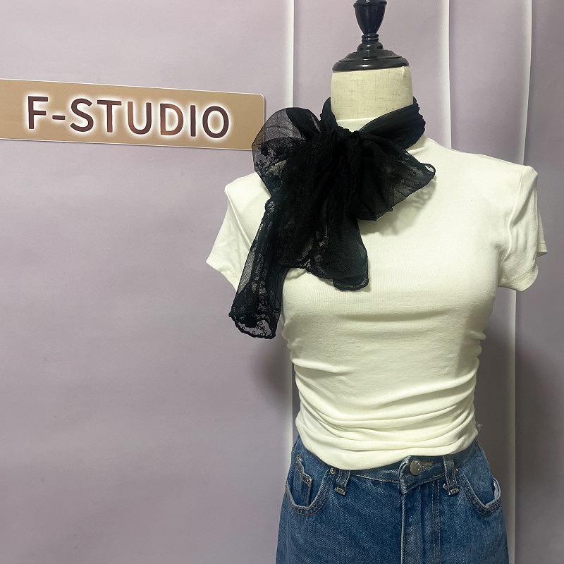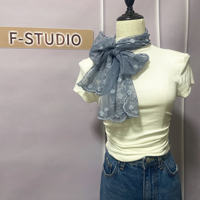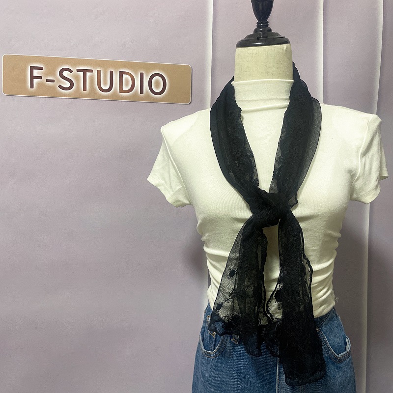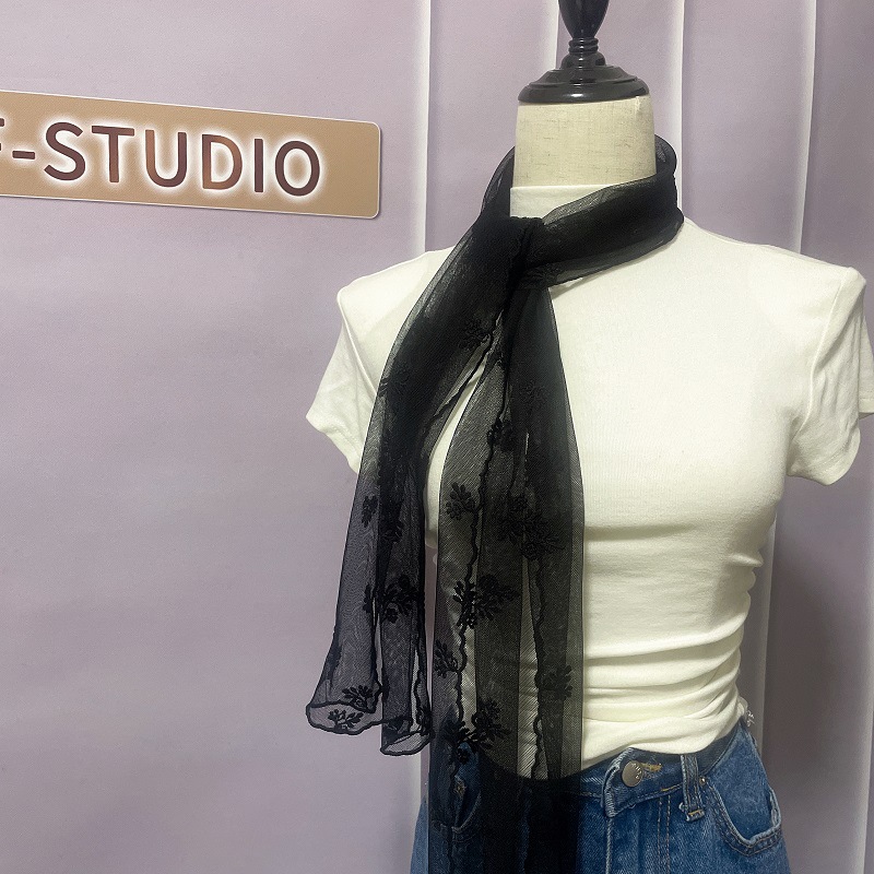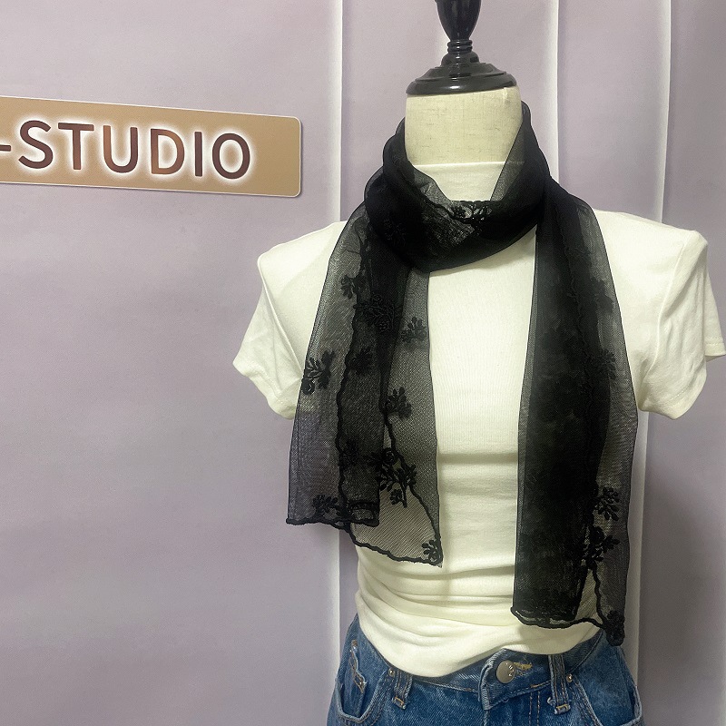 신선하고 아름다운 더블 행 자수 레이스 작은 스카프 우아한 복고풍 예술적 스카프 여성의 봄과 여름 스카프 한국 얇은스토어 가기