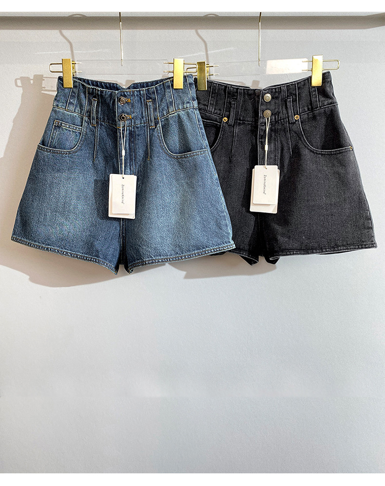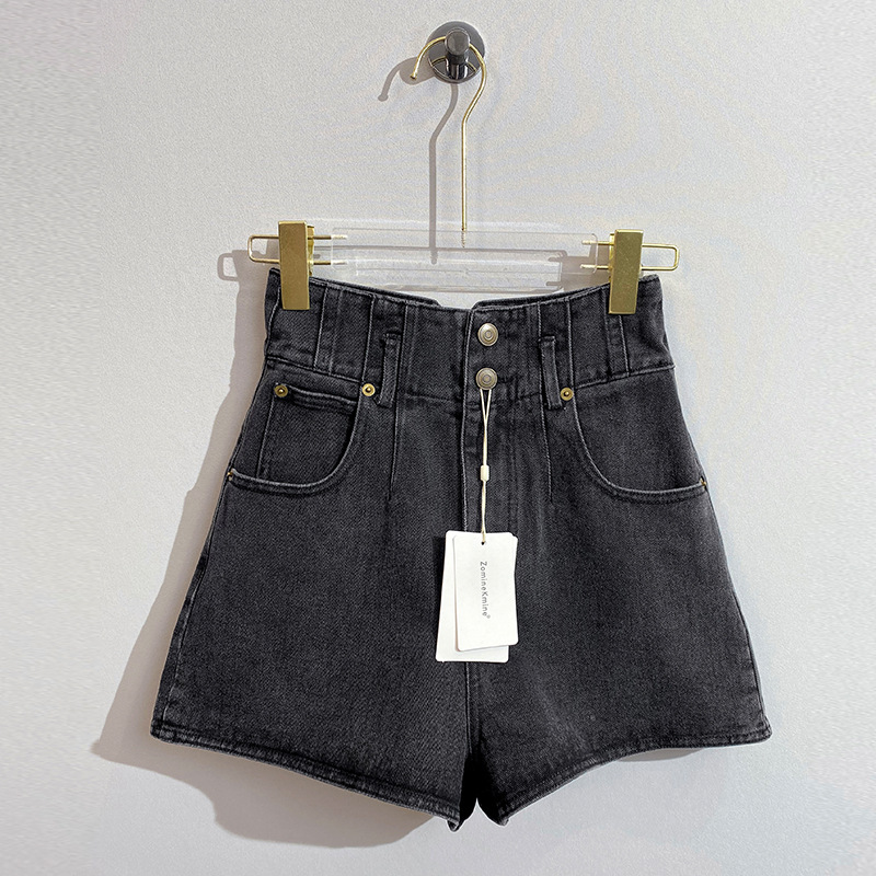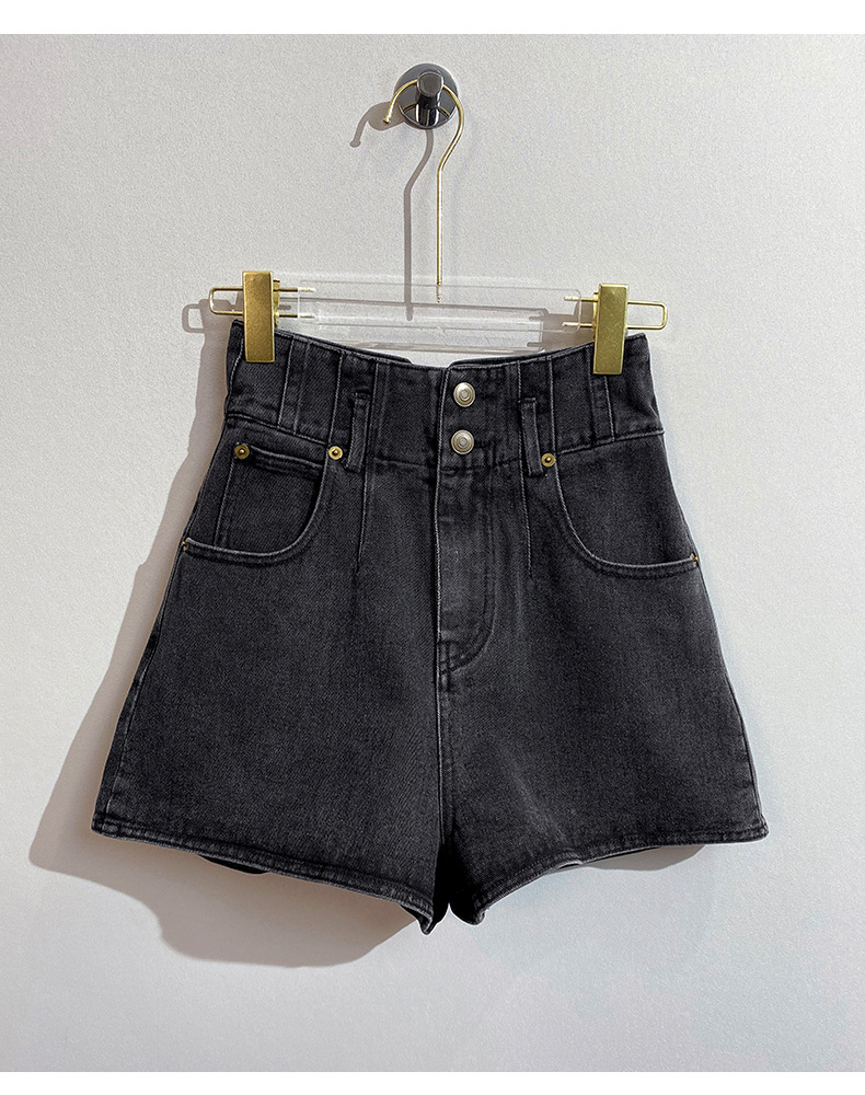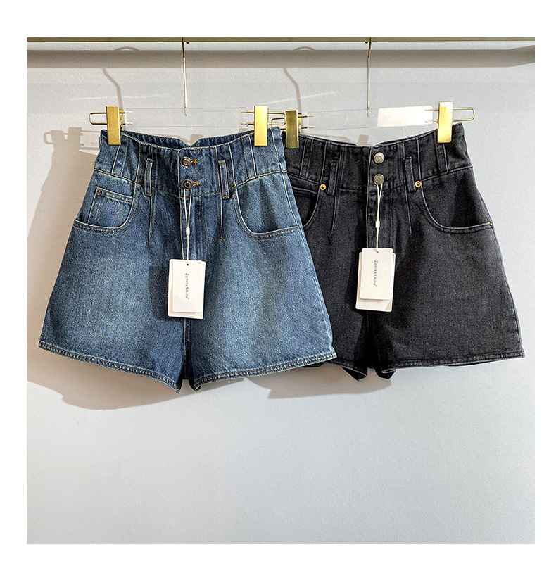 틈새 2024 여름 새로운 패션 스트레이트 다리 바지 슬림 핏 핫 바지 넓은 다리 바지 높은 허리 블랙 데님 반바지 여성스토어 가기
