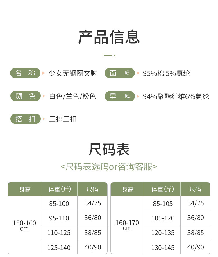 835 중학생 발달 기간 조정 속옷 고정 컵 빈 아웃 여름 통기성 여성 청소년 중학교 브래지어스토어 가기