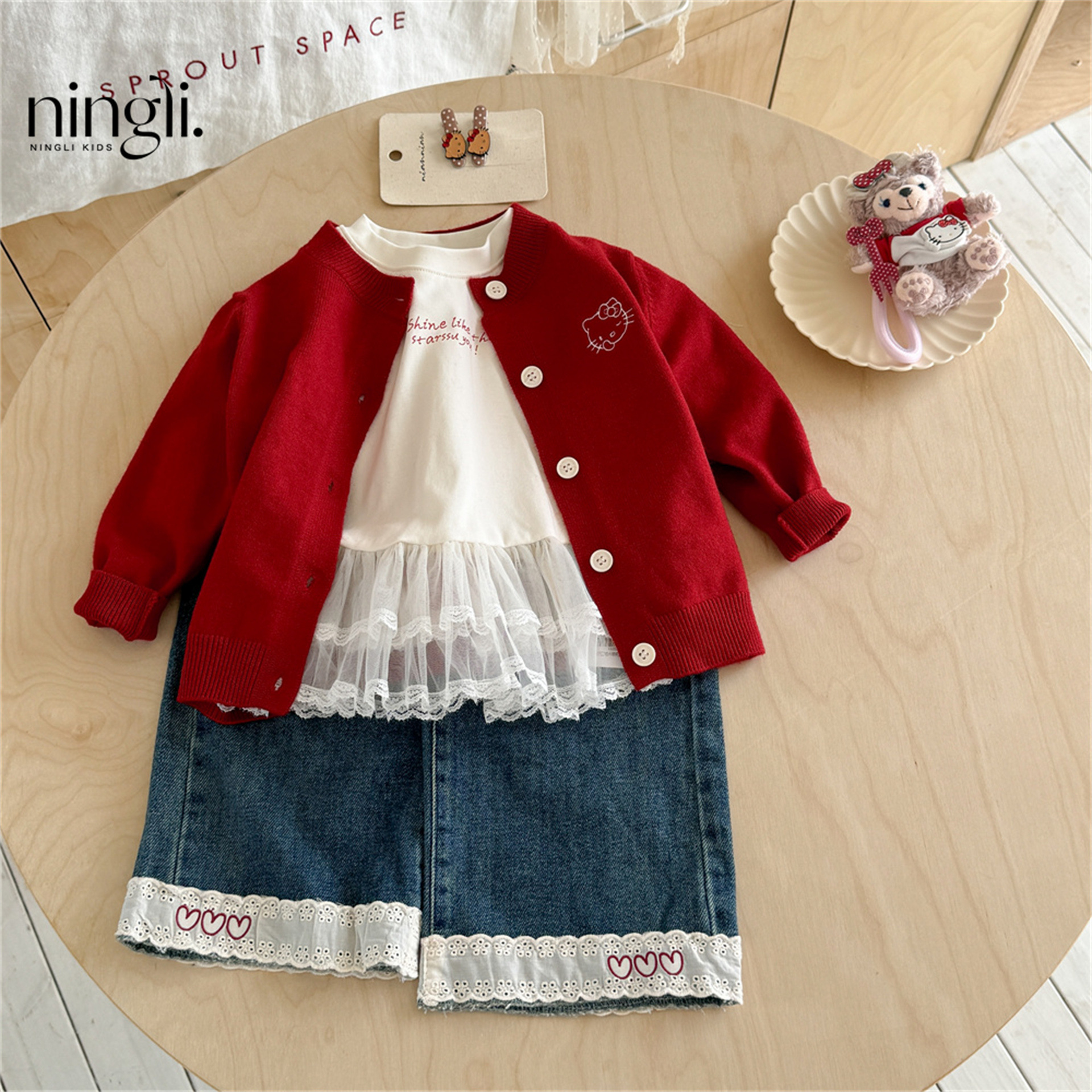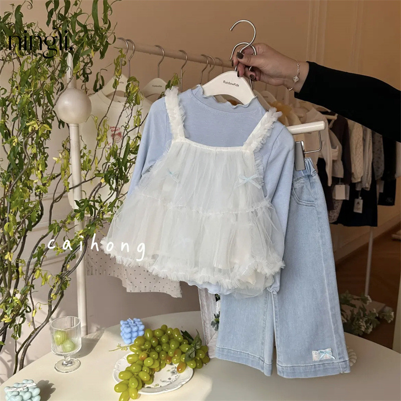 라임 소녀의 어린이 착용 샤넬 스타일 세트 가을 패션 어린이 소녀 조끼 셔츠 패션 청바지 3 종 세트스토어 가기