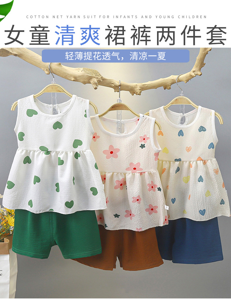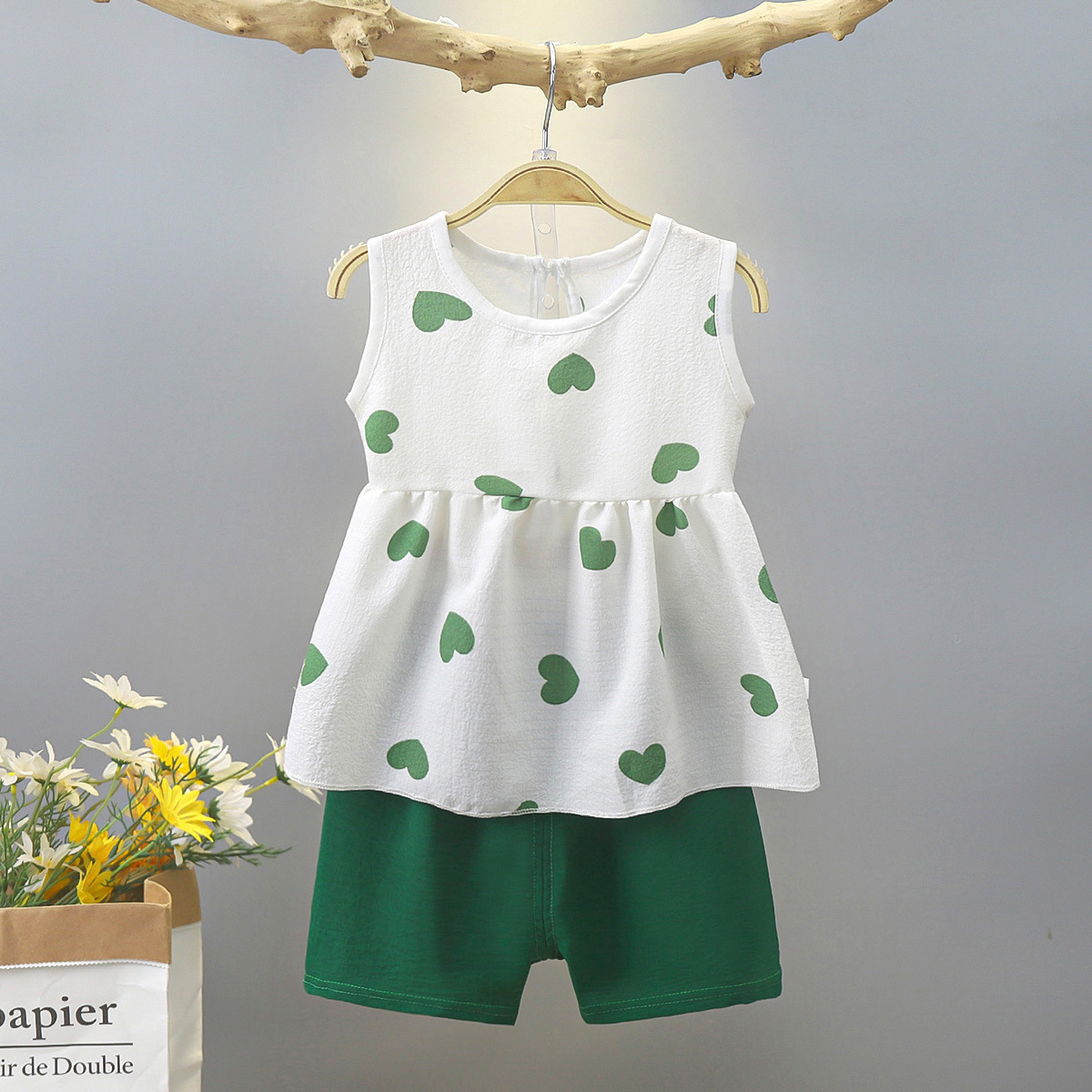 여자 반팔 양복 24 여름 신작 아동 의류 도매 여자 유아 나비 프린트 티셔츠 투피스 얇은 세트스토어 가기