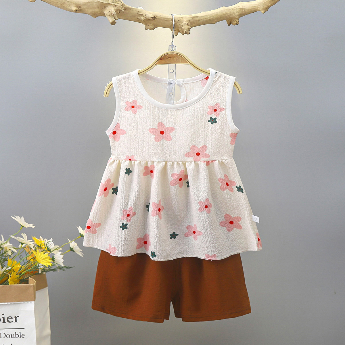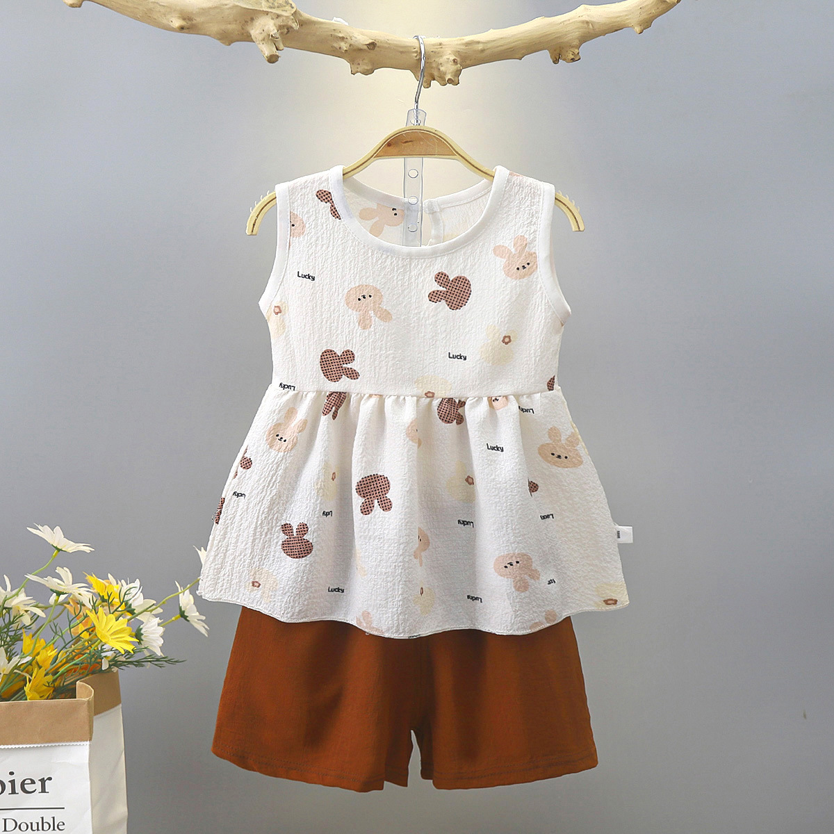 여자 반팔 양복 24 여름 신작 아동 의류 도매 여자 유아 나비 프린트 티셔츠 투피스 얇은 세트