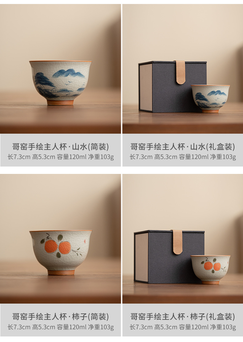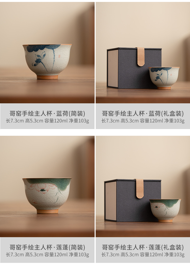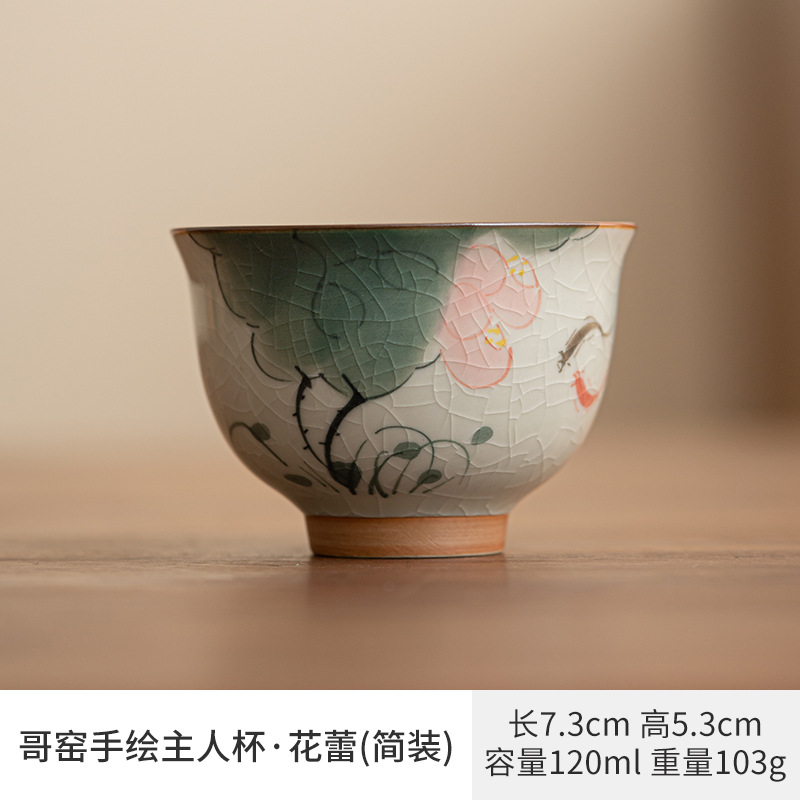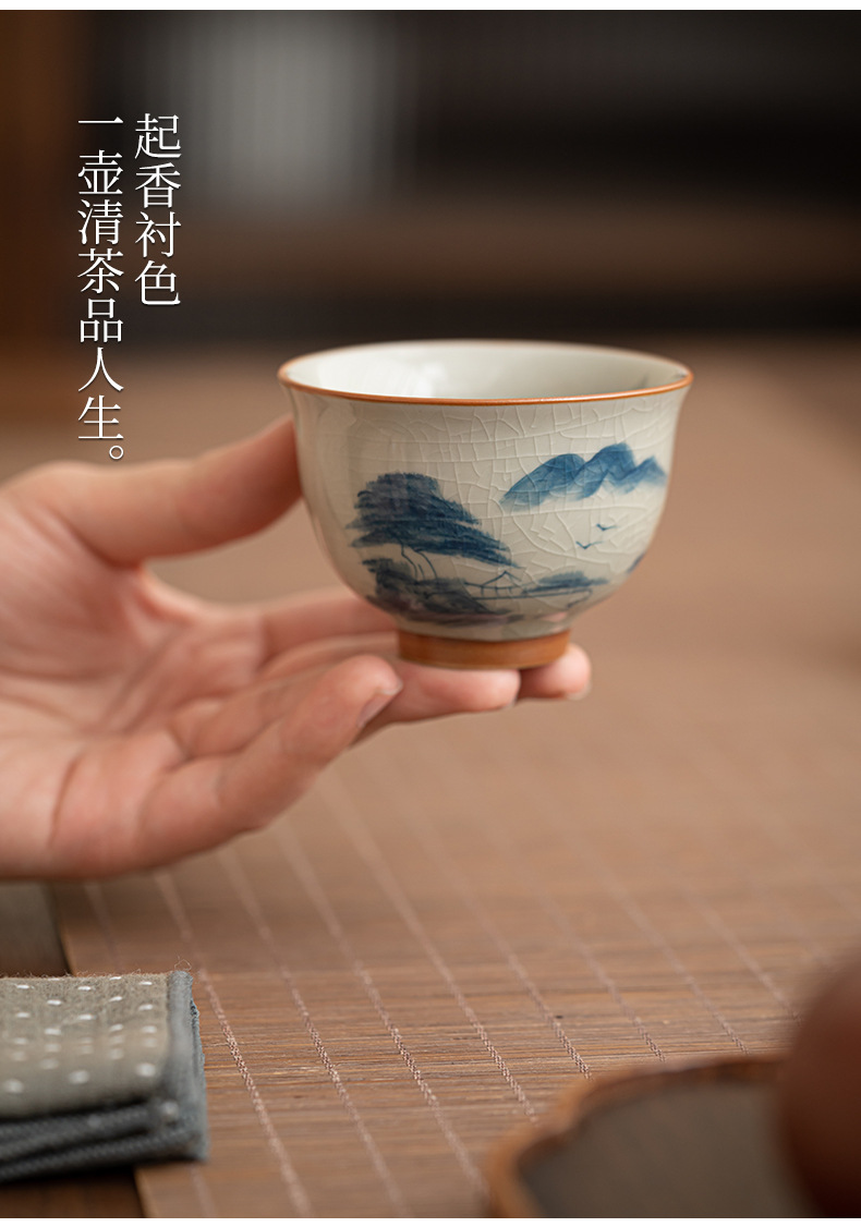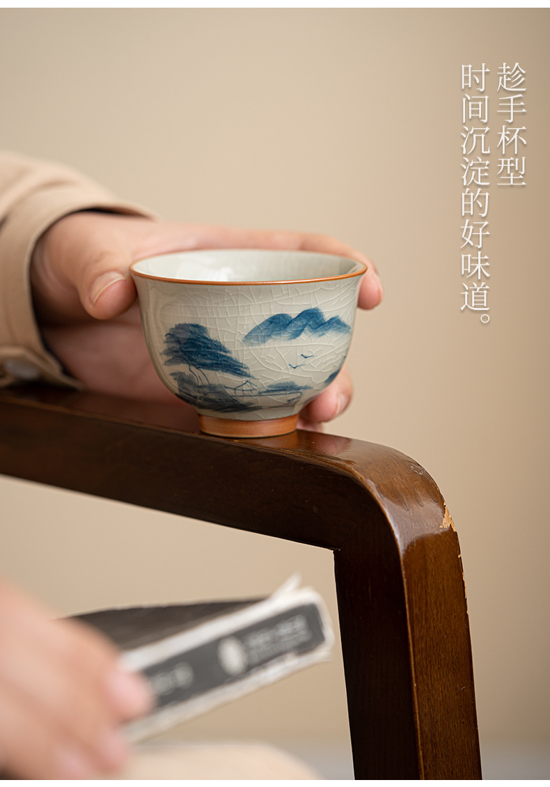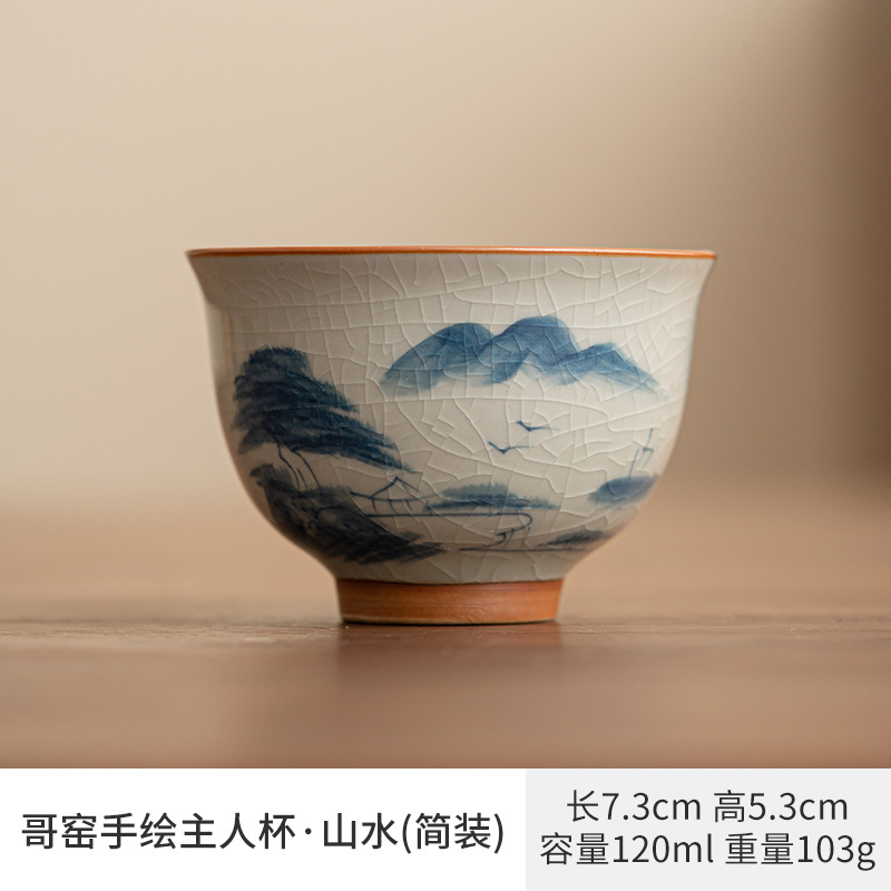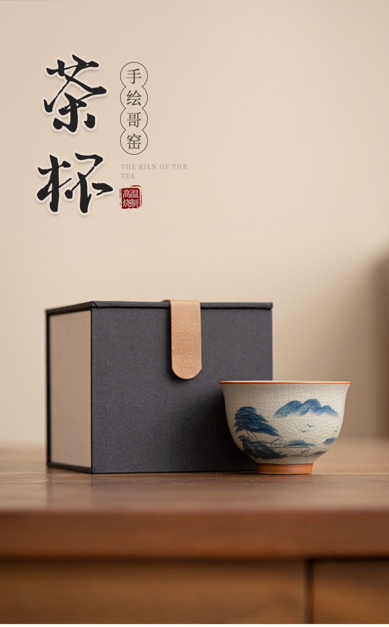 Ge 가마 손으로 그린 차 컵 세라믹 마스터 컵 싱글 컵 개인 전용 고급 차 차 차 차 차 차 컵 대형 차 컵 선물 상자스토어 가기