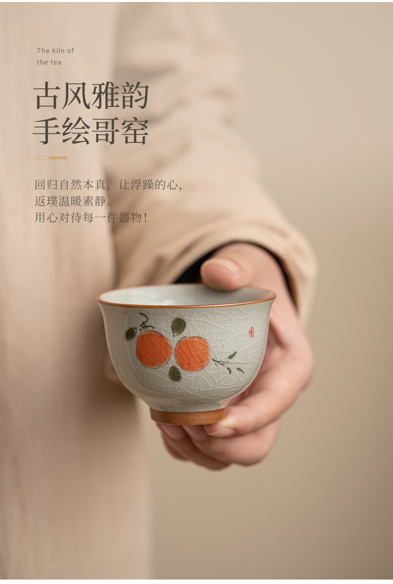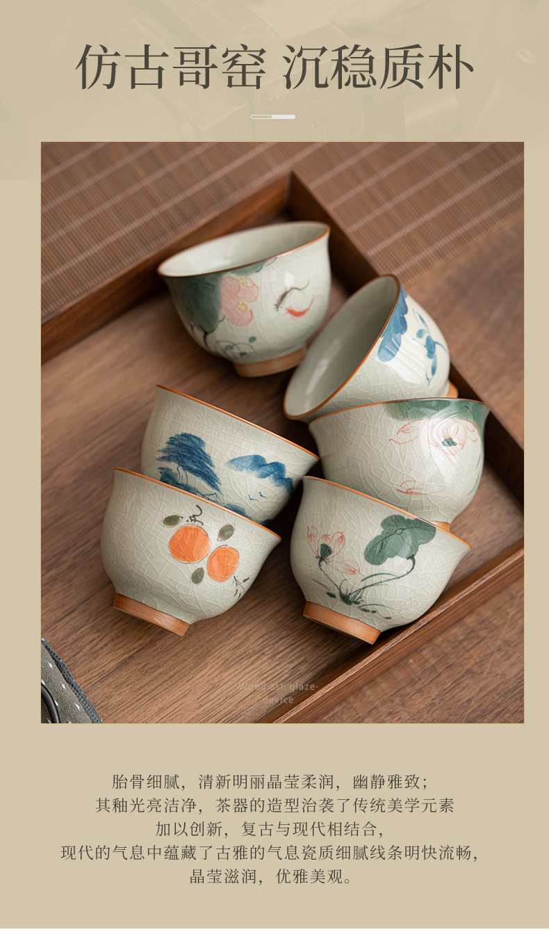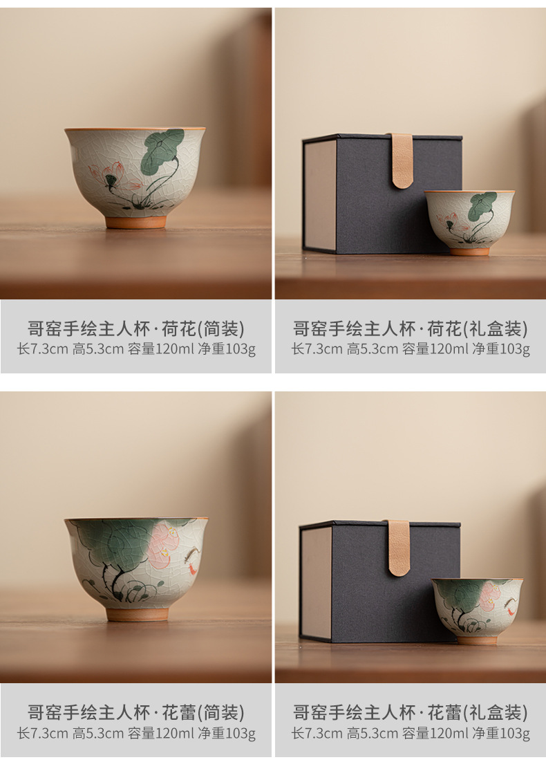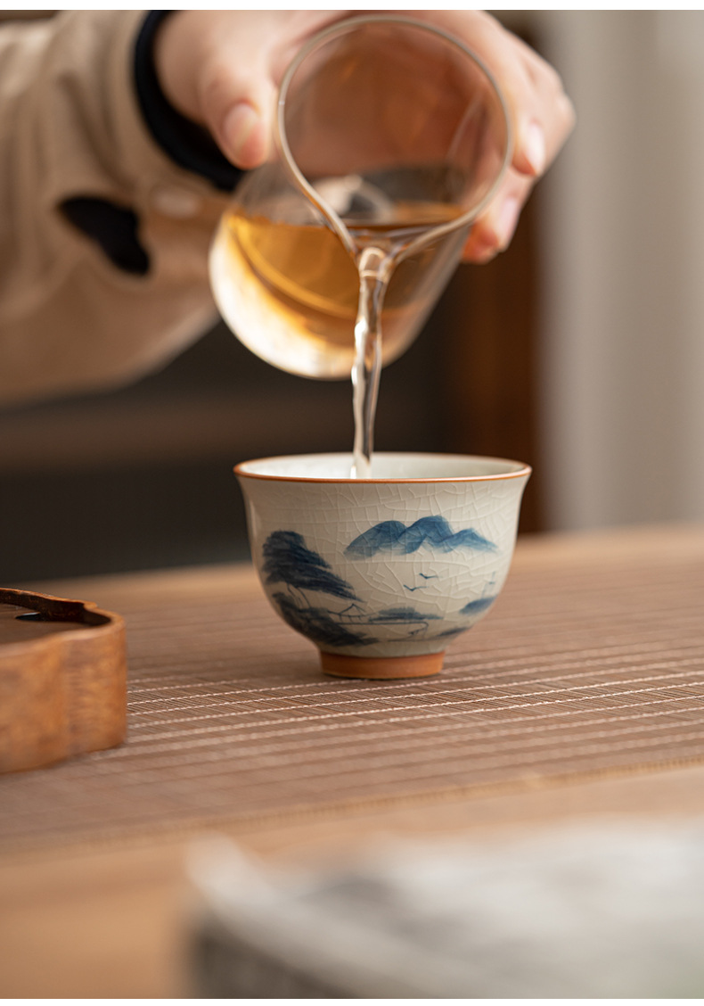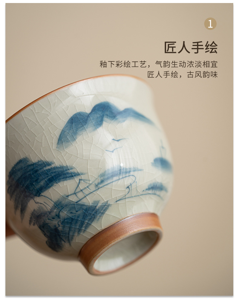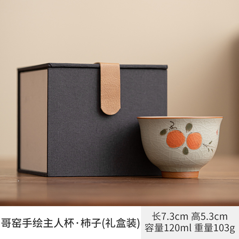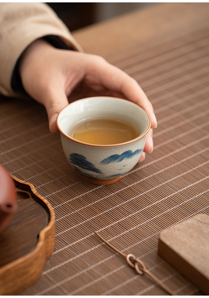 Ge 가마 손으로 그린 차 컵 세라믹 마스터 컵 싱글 컵 개인 전용 고급 차 차 차 차 차 차 컵 대형 차 컵 선물 상자스토어 가기