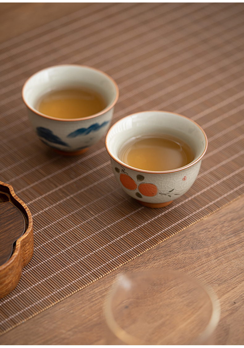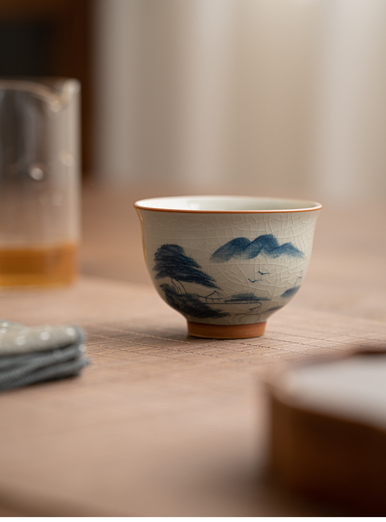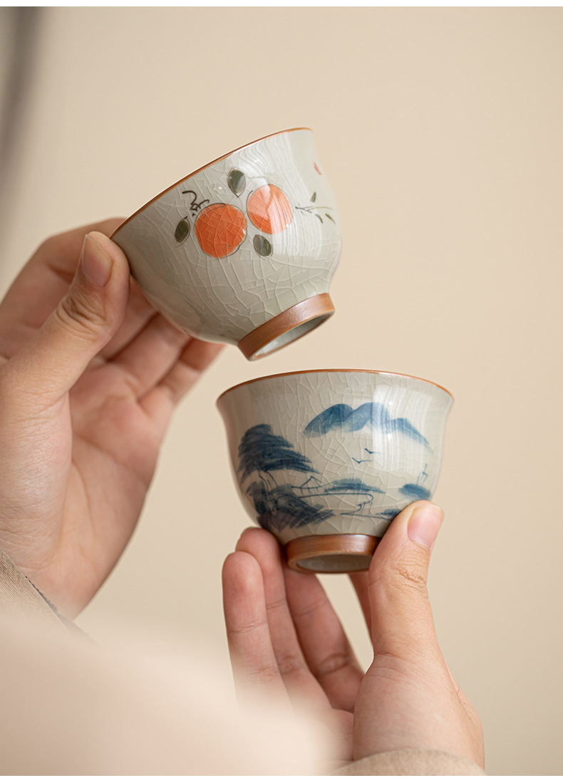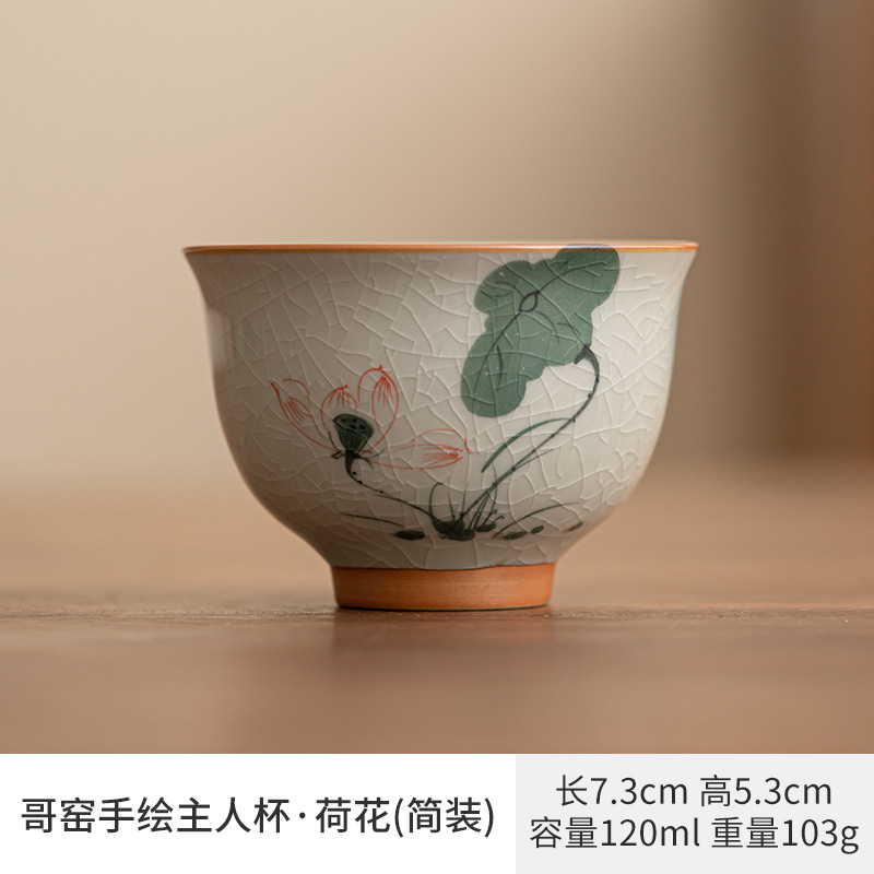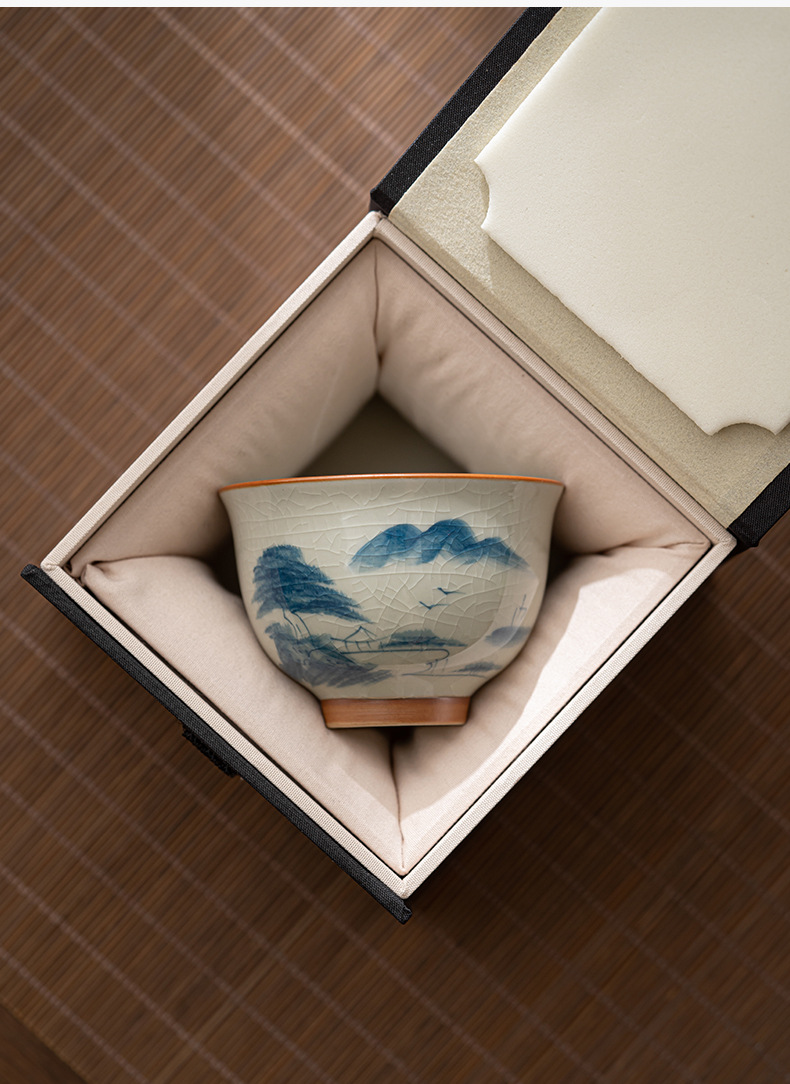 Ge 가마 손으로 그린 차 컵 세라믹 마스터 컵 싱글 컵 개인 전용 고급 차 차 차 차 차 차 컵 대형 차 컵 선물 상자