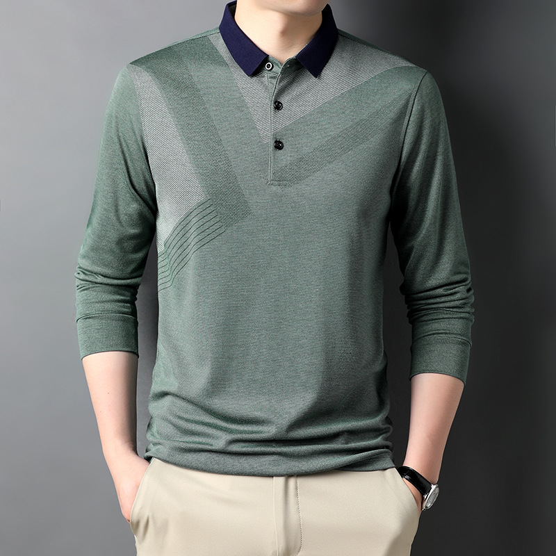 2024 봄과 가을 기하학적 인물 젊고 중년 비즈니스 캐주얼 남성 폴로 셔츠 남성용 스트레치 비 다림질 얇은 길이스토어 가기