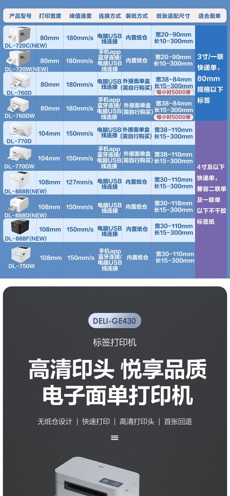 델리 GE430 바코드 프린터 열 의류 라벨 스티커 접착 익스프레스 단일 슈퍼마켓 식품 가격