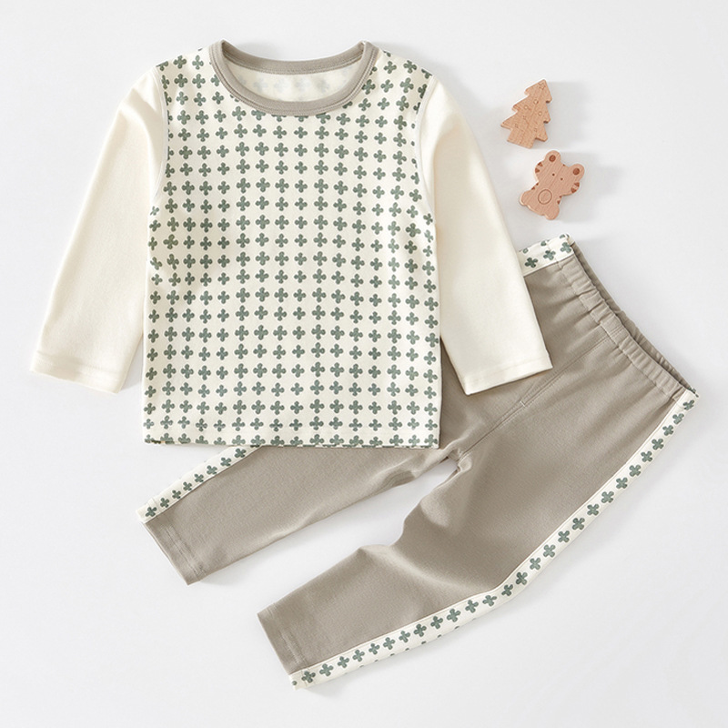 청바오 어린이 속옷 세트 면모 소년의 가을 옷 긴 바지 작은 중간 및 큰 아이들 소녀의 따뜻한 잠옷 내복