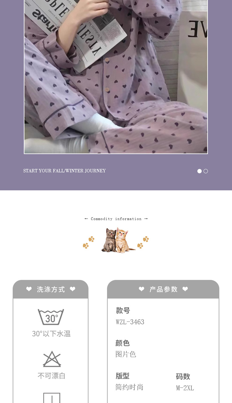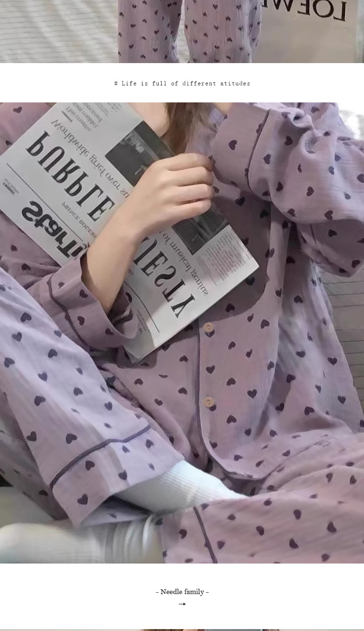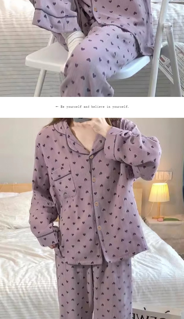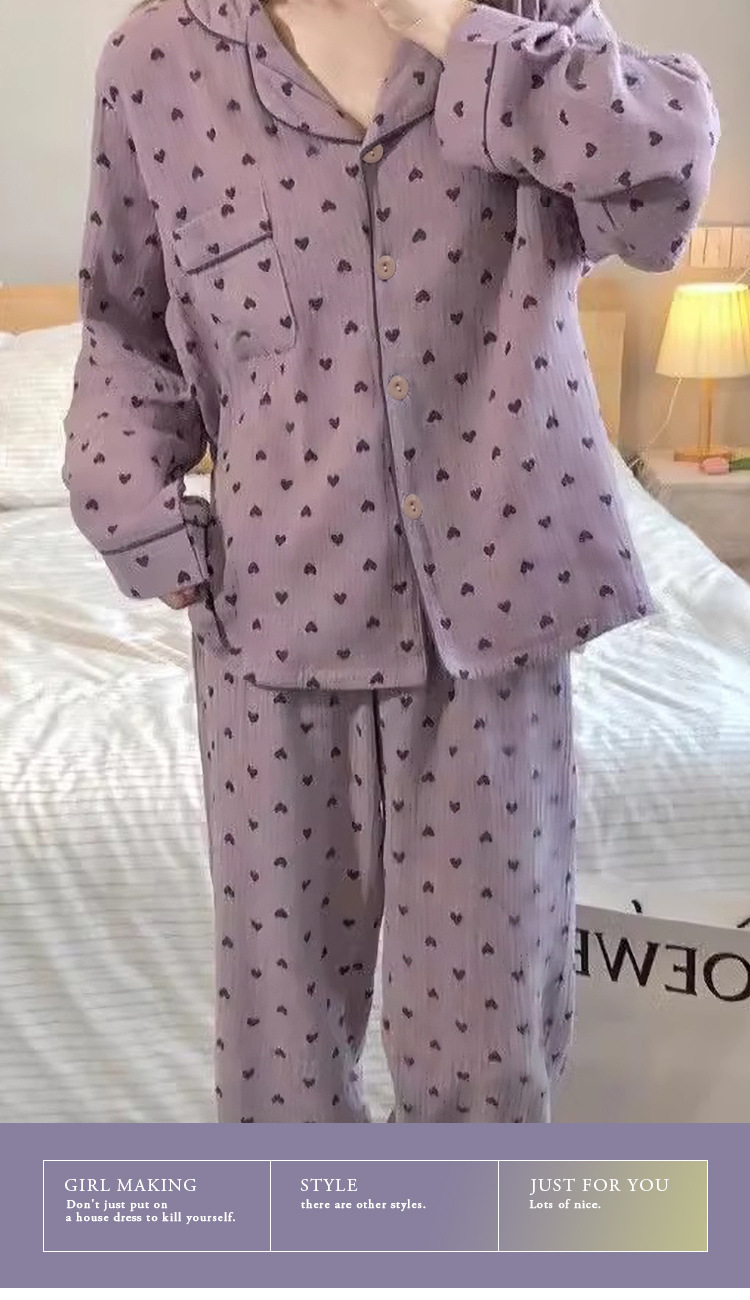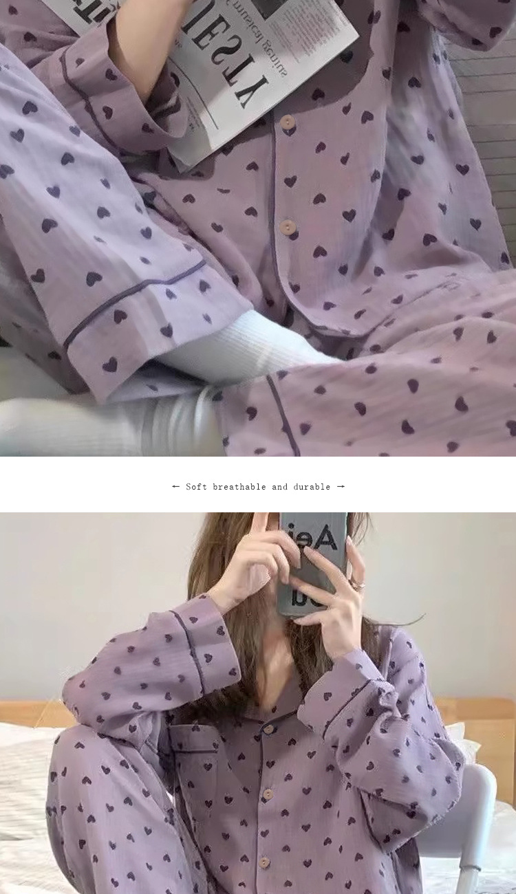 보라색 사랑 달콤한 스타일 가정 의류 봄과 가을 고급 긴팔 잠옷 여성 기숙사는 정장 도매 외부에 착용 가능