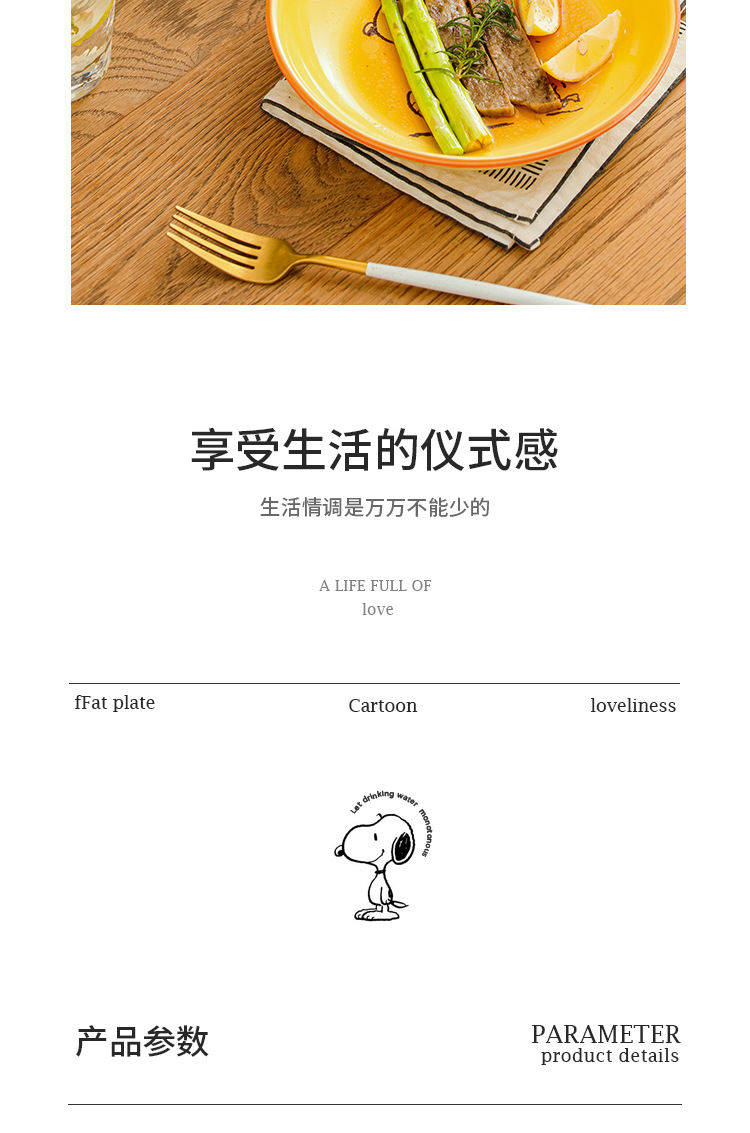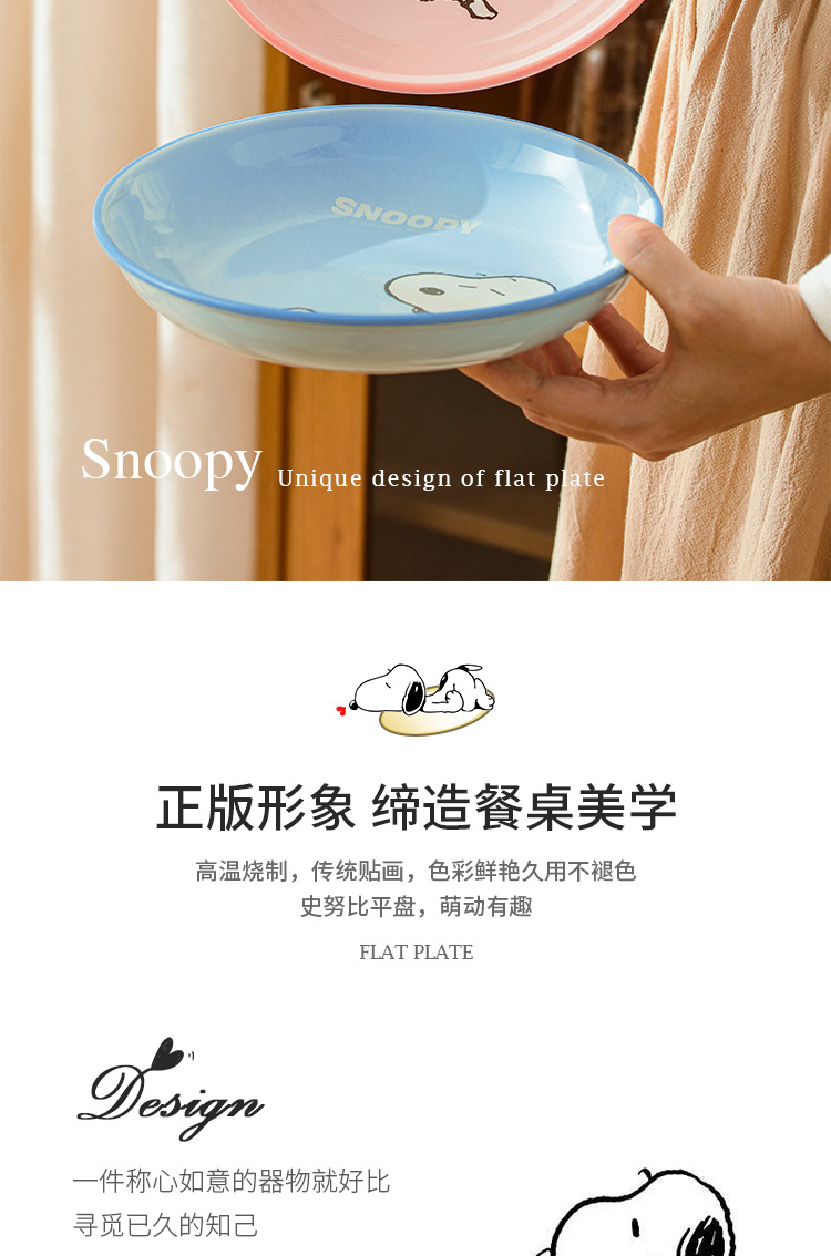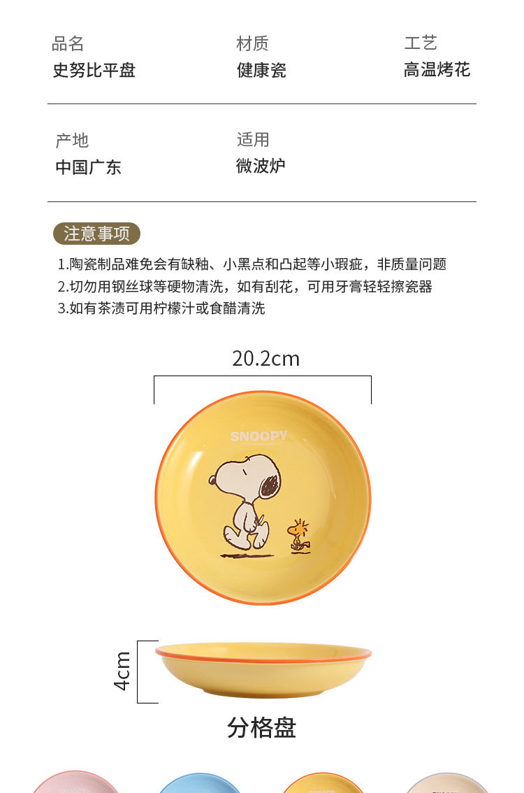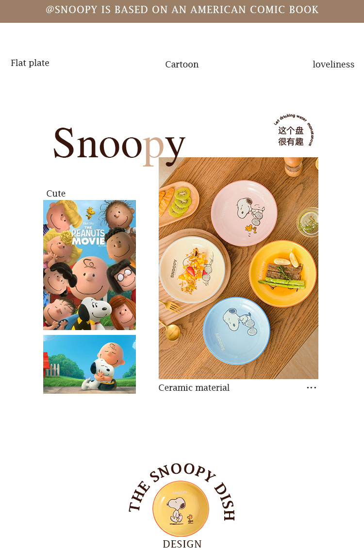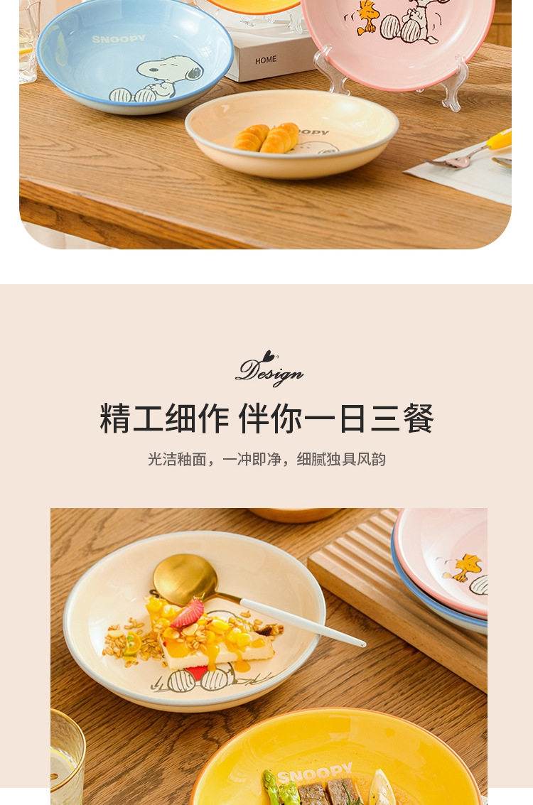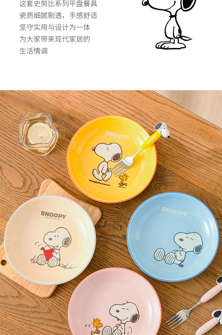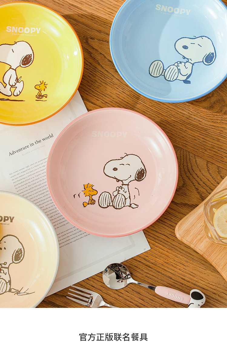 스누피 접시 세트 가정용 스테이크 접시 창의적인 깊은 원형 세라믹 과일 접시스토어 가기