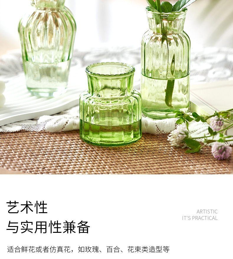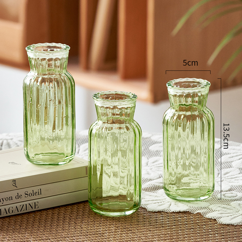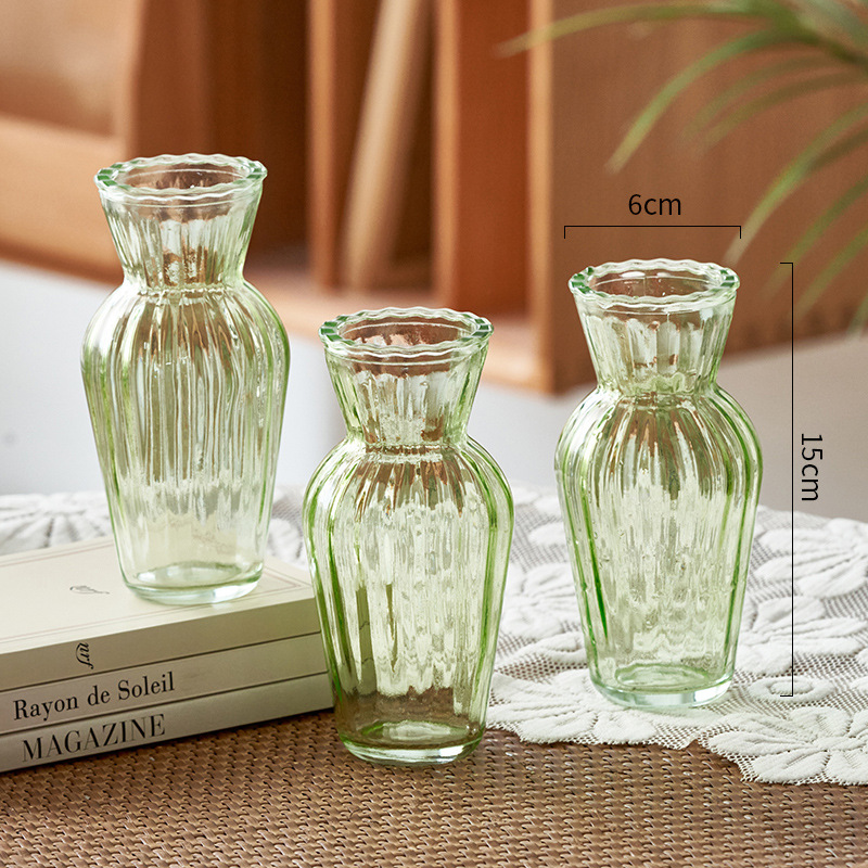 유럽 스타일의 창조적 인 유리 꽃병 투명 그물 붉은 수경 수경 녹색 식물 꽃 작은 꽃병 바탕 화면 장식