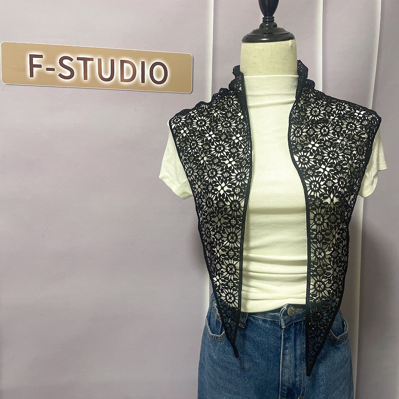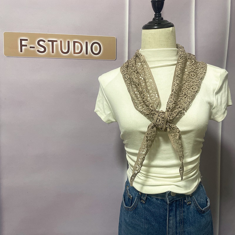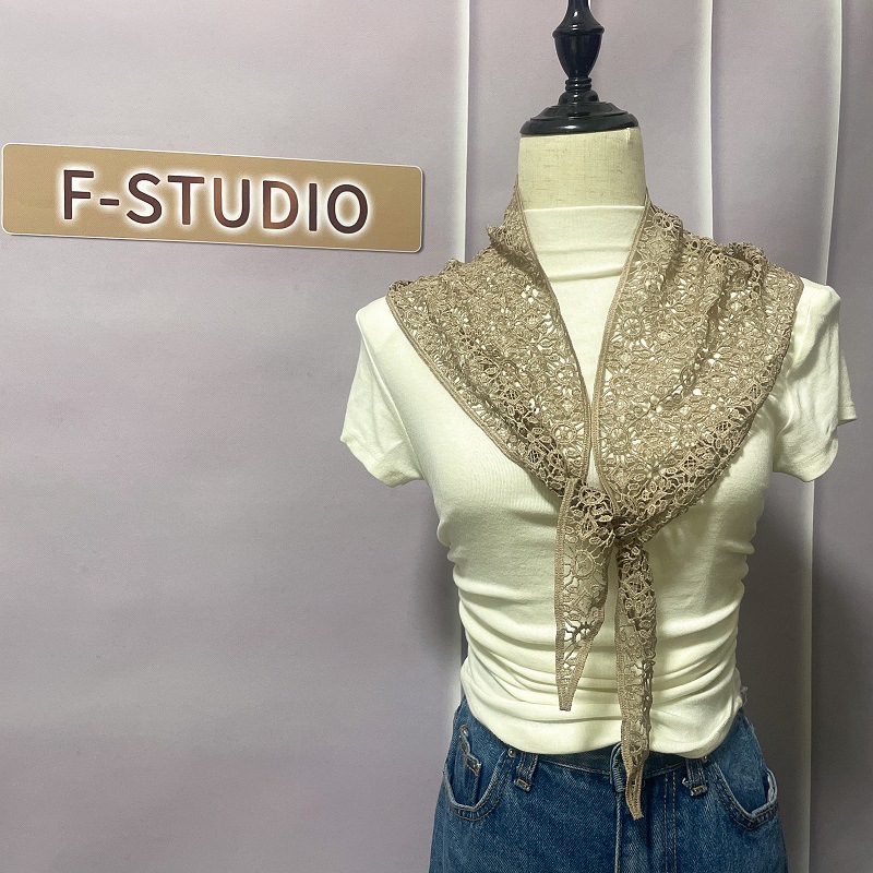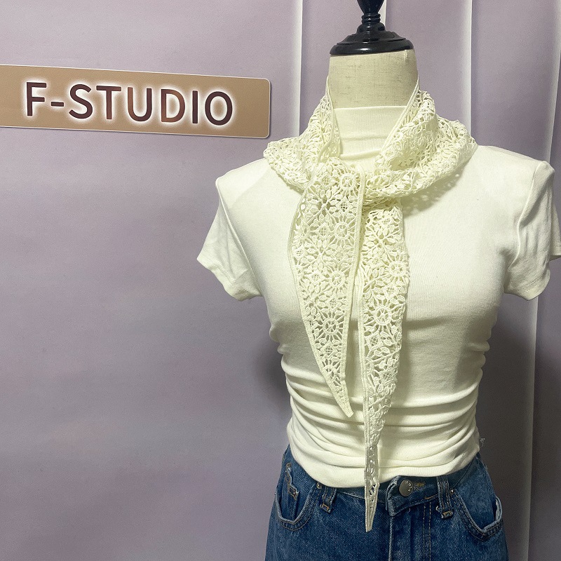 2024 봄과 여름 한국 스타일의 작은 목도리 얇은 수용성 레이스 크로 셰 뜨개질 삼각형 스카프 다목적 태양 보호 양복 조끼 장식 스카프