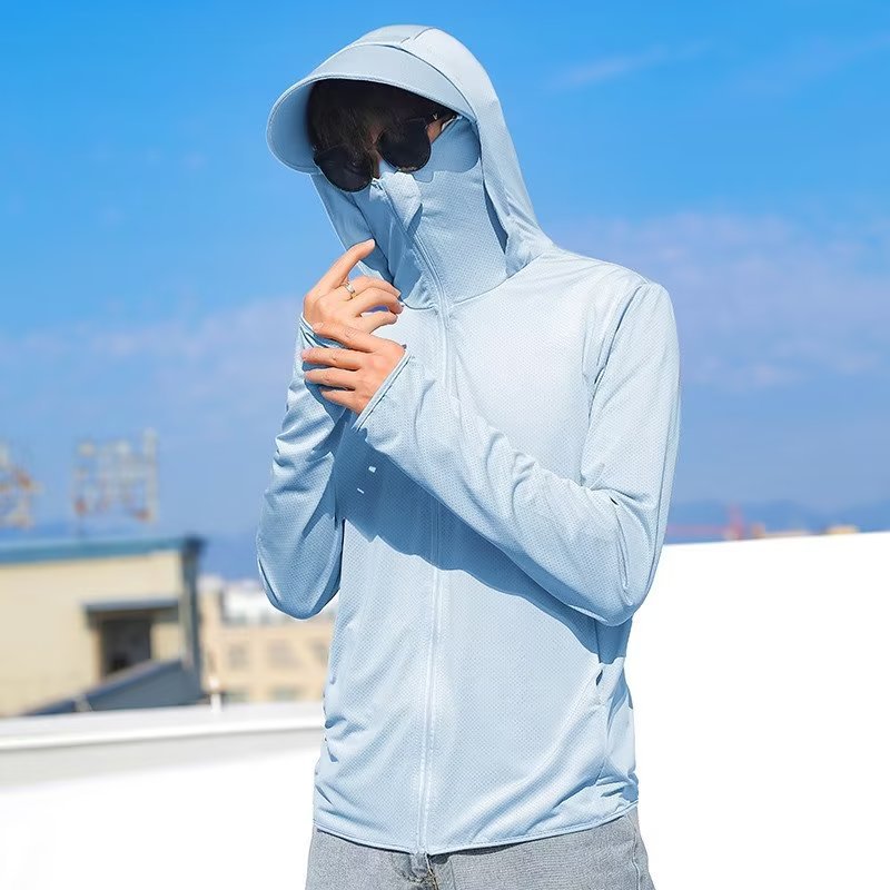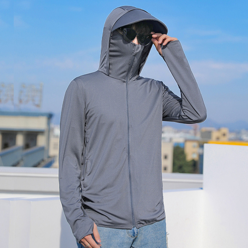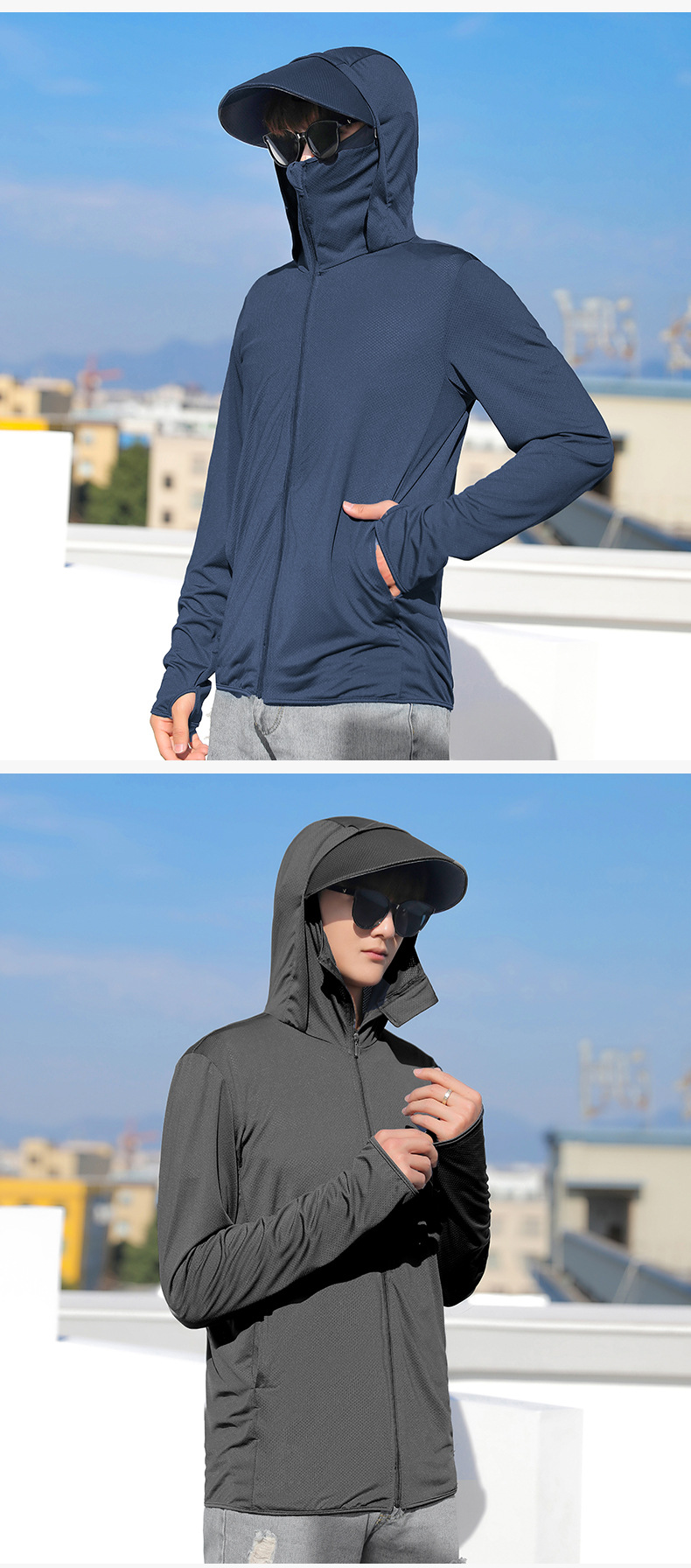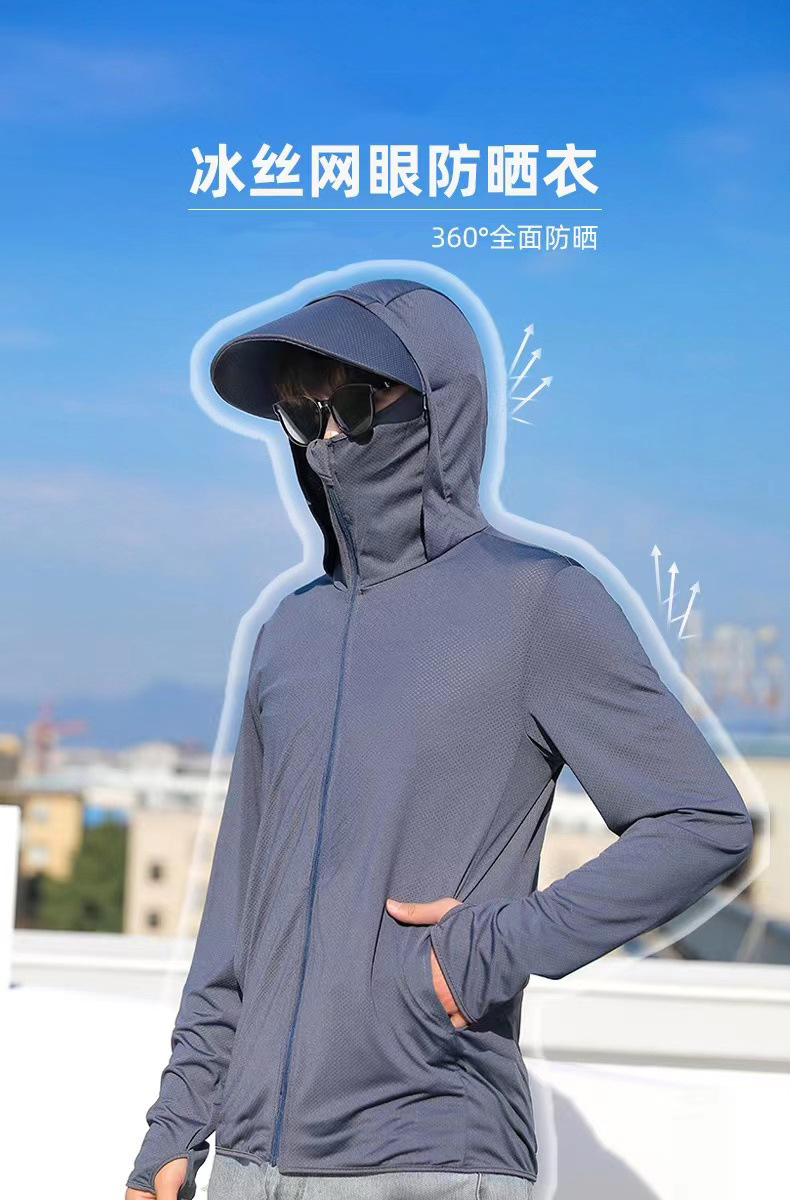 의류 남성 여름 야외 얼굴 커버 낚시 의류 후드 얇은 아이스 실크 자외선 차단 통기성 스킨 의류 2023 새로운