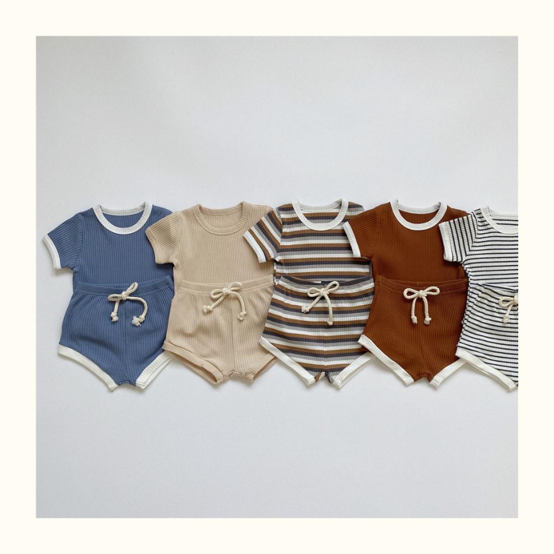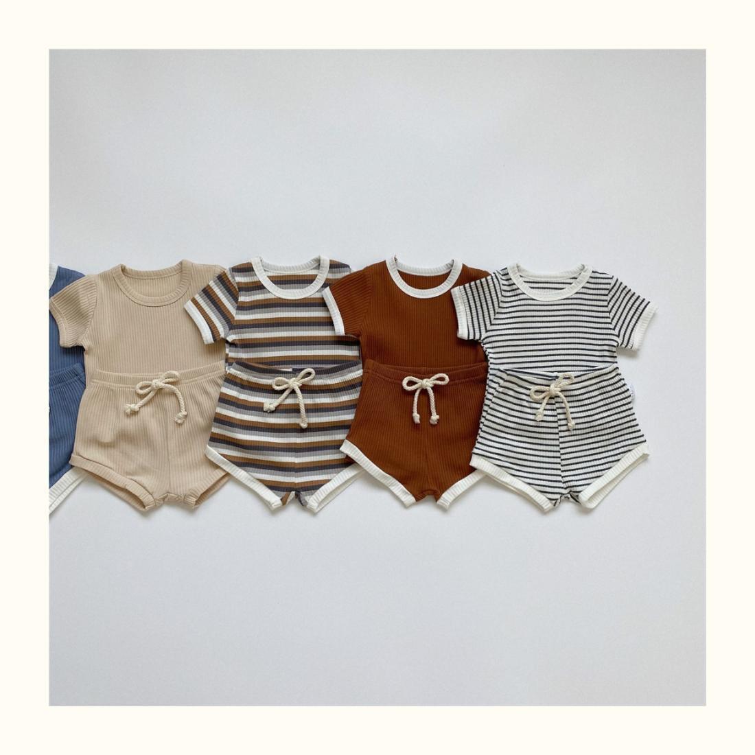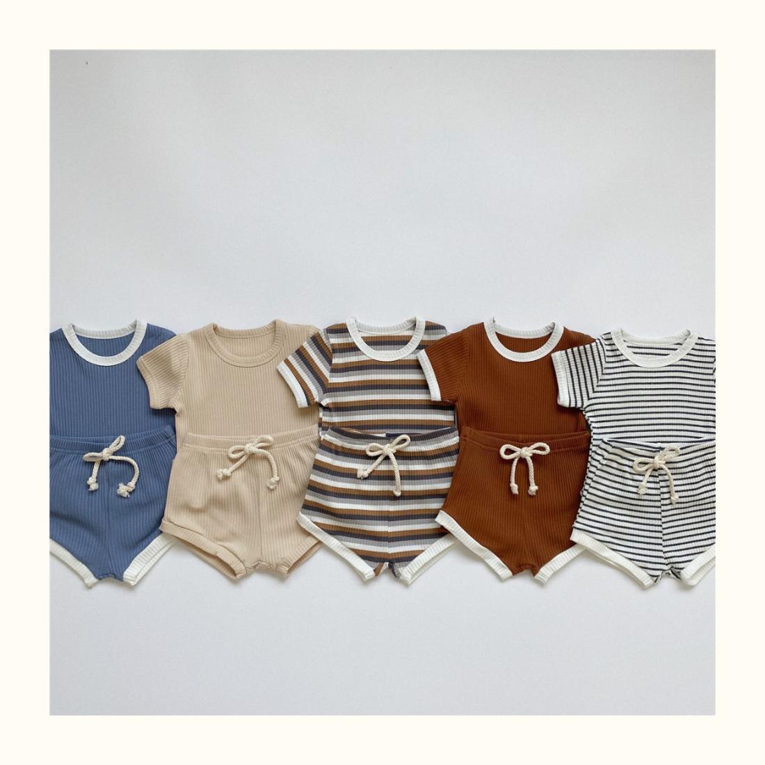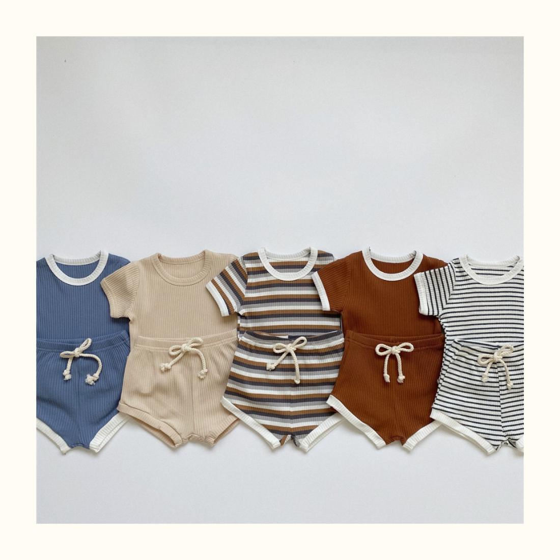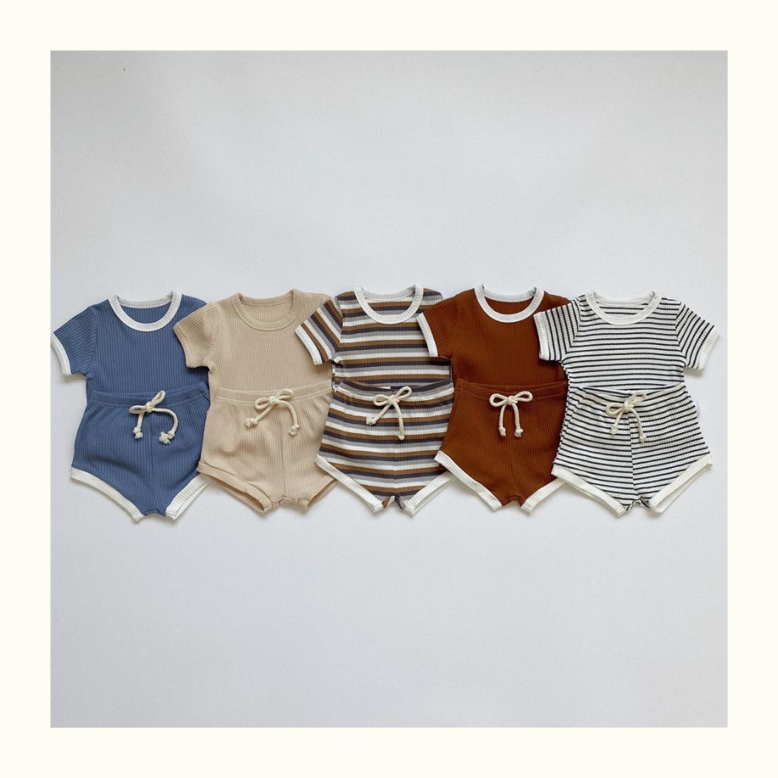 유아 반팔 반바지 세트 2024 여름 새로운 남성과 여성의 아기 간단한 캐주얼 크루 넥 티셔츠 대형 PP 바지스토어 가기