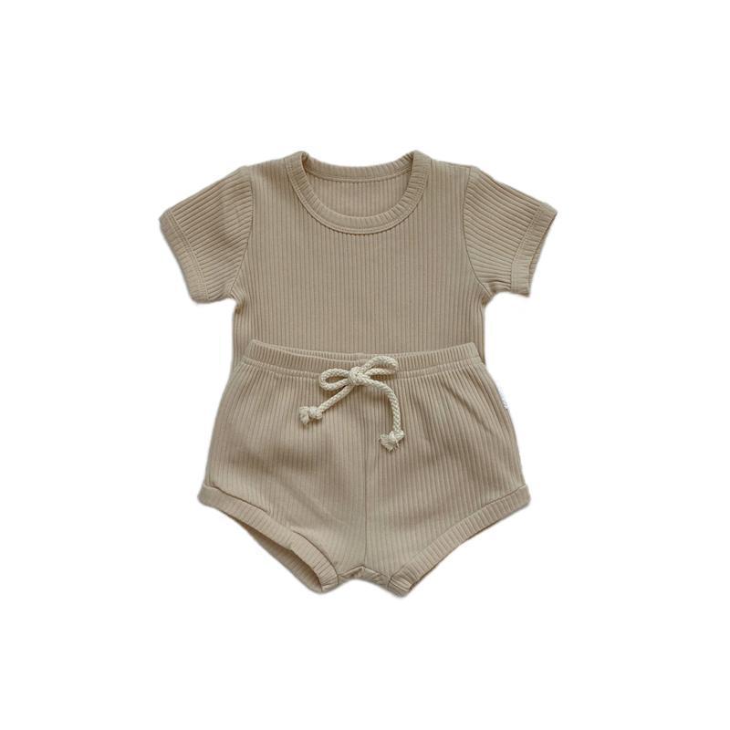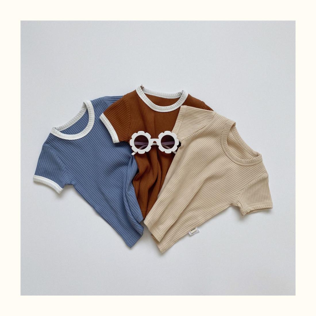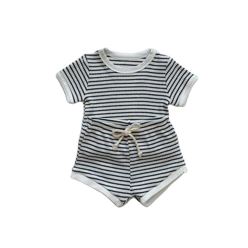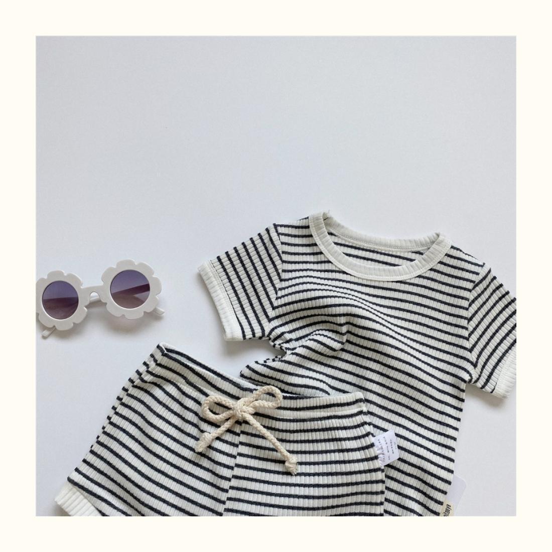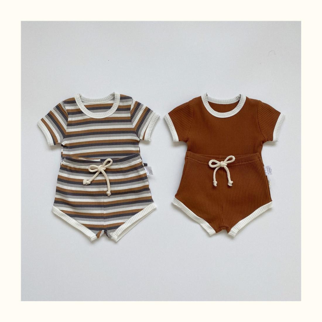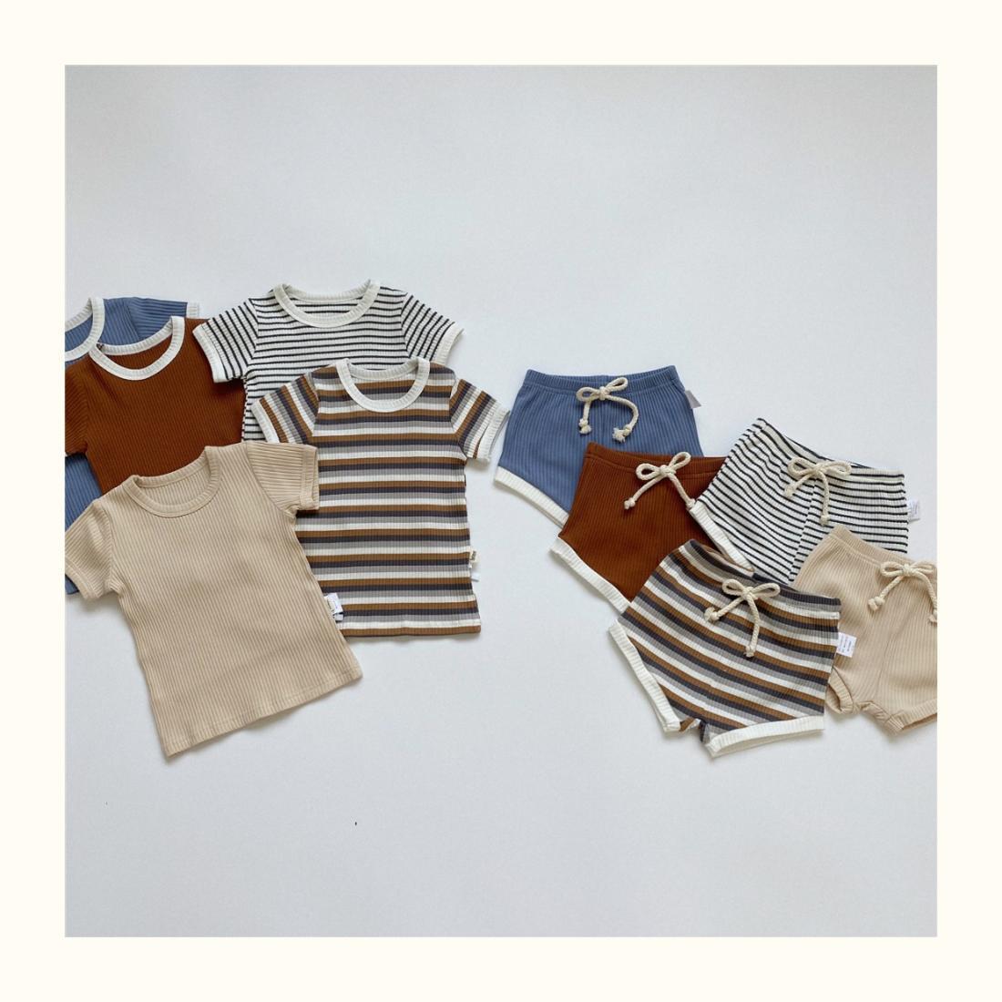 유아 반팔 반바지 세트 2024 여름 새로운 남성과 여성의 아기 간단한 캐주얼 크루 넥 티셔츠 대형 PP 바지스토어 가기