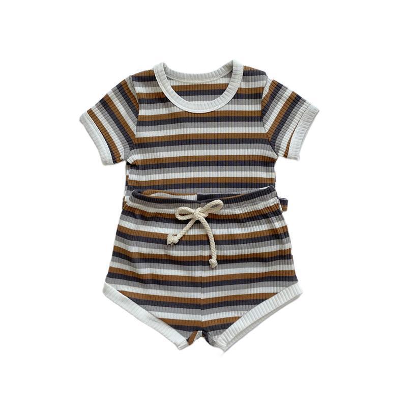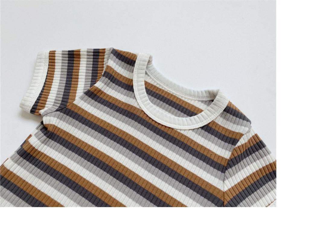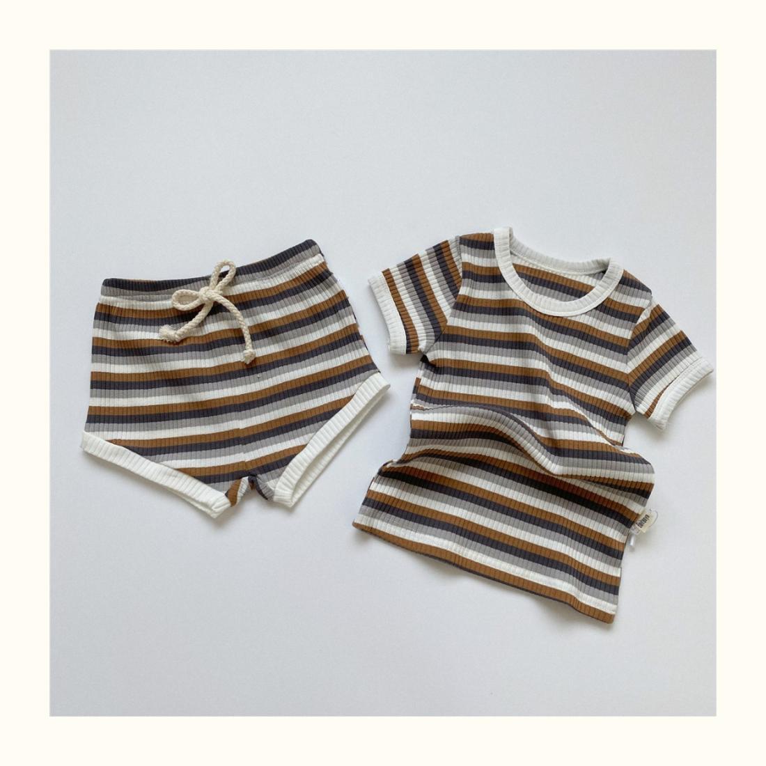 • 브라운, 화이트, 그레이 스트라이프 반팔 슈트