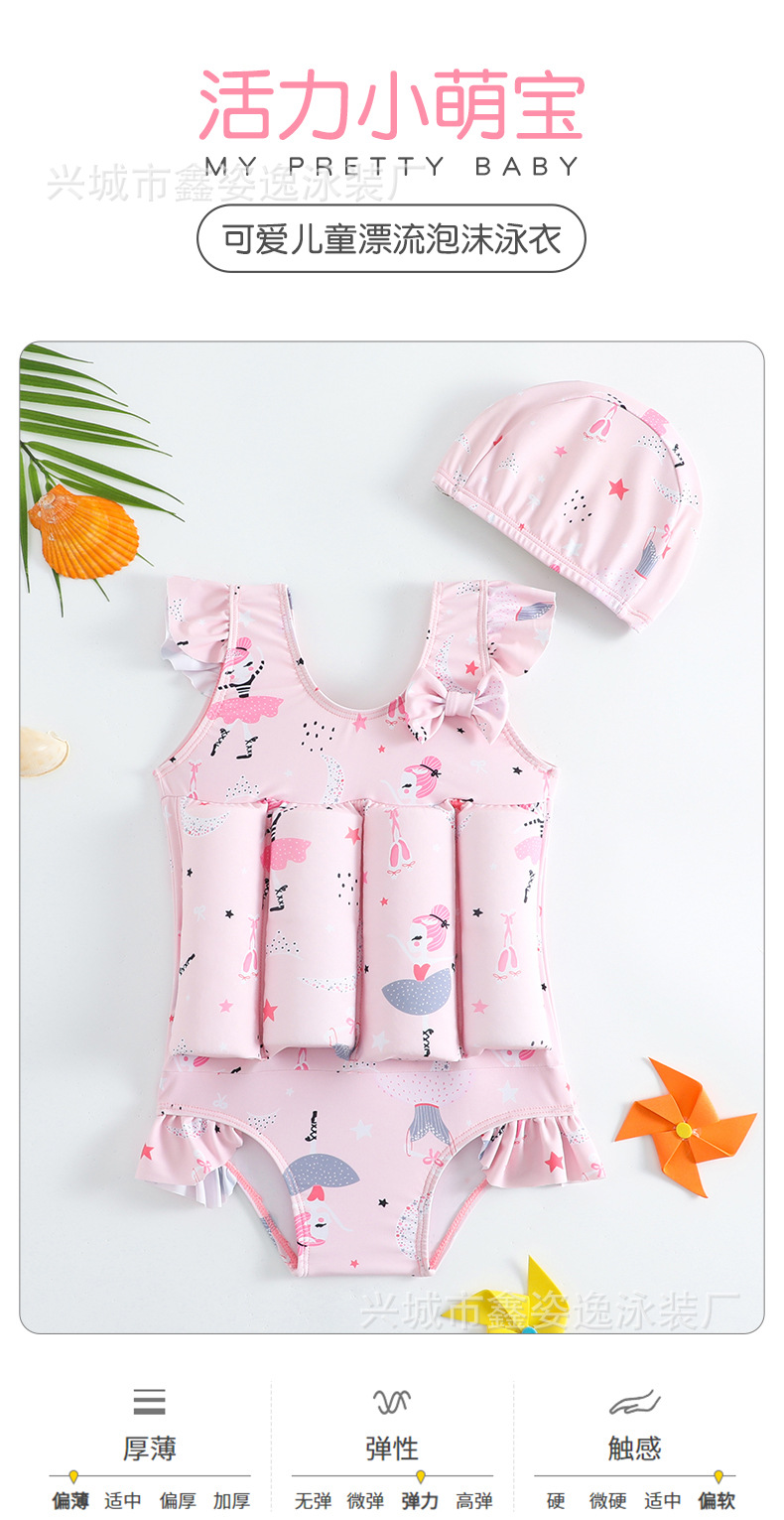 Langdeyi 어린이 부력 수영복 2024 새 소녀의 핑크 활 원피스 수영복 공장 직접 판매스토어 가기