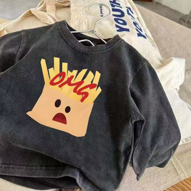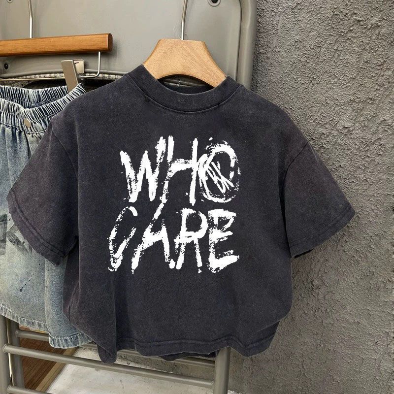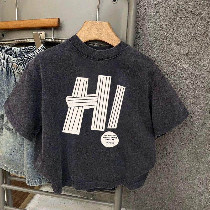 세탁 된 블랙 아동복 빈 복고풍 반팔 티셔츠 순면 소년과 소녀 아기 어린이 잘 생긴 유행 탑스토어 가기