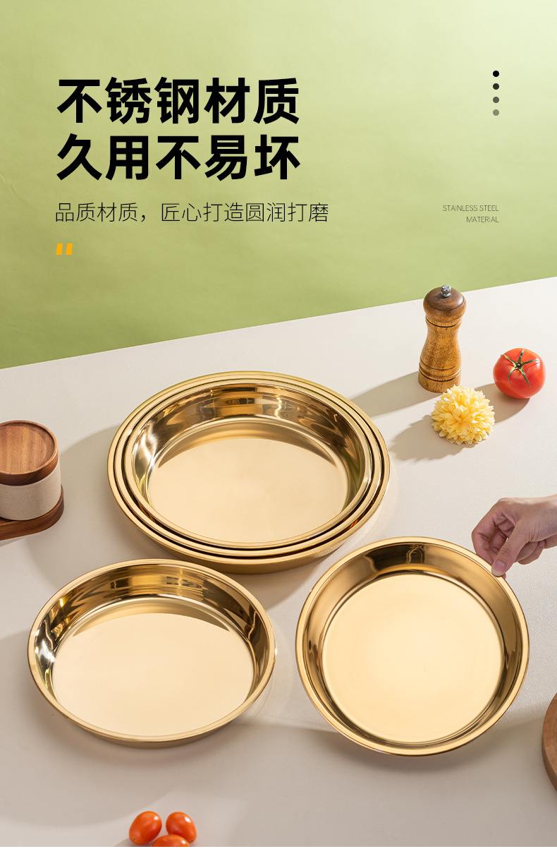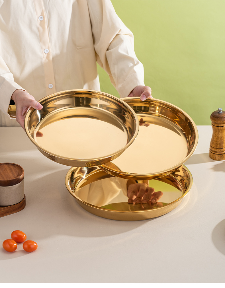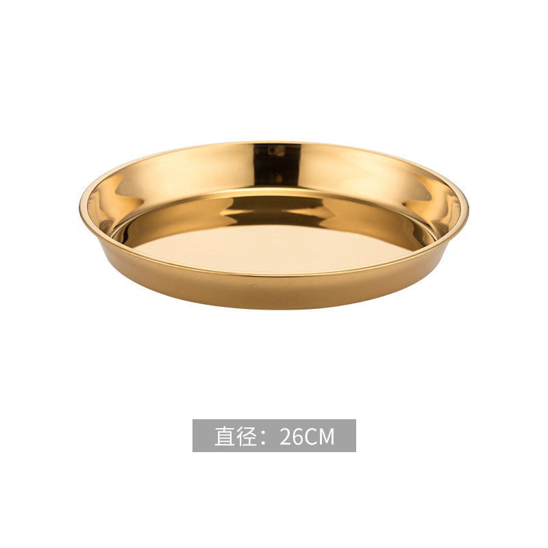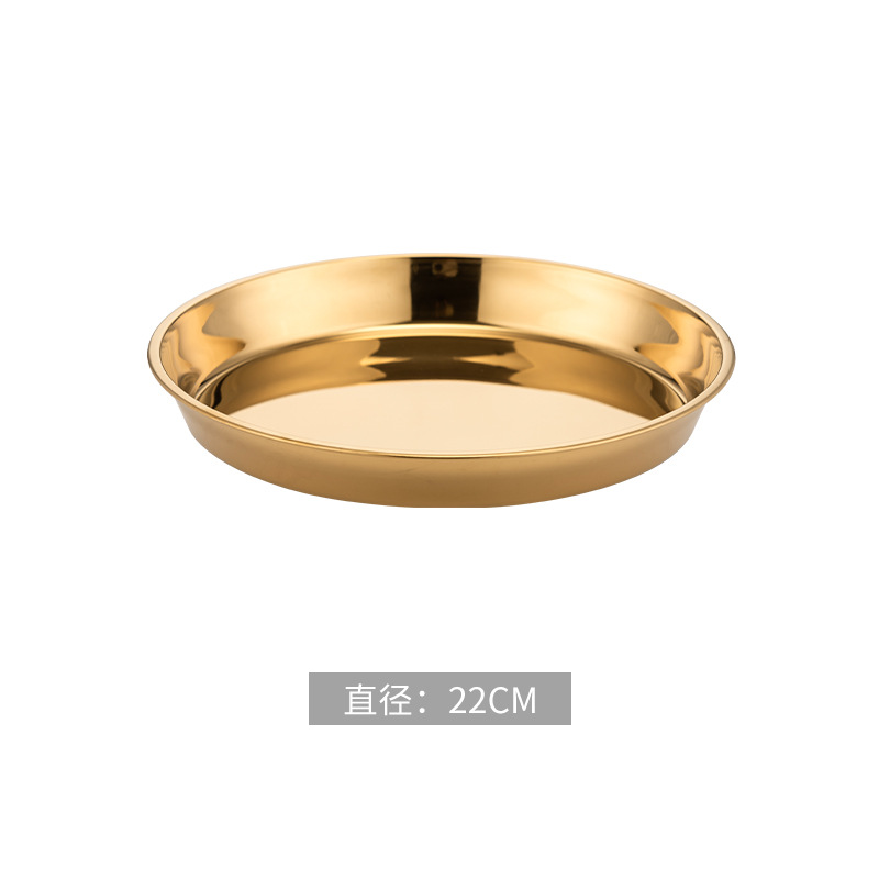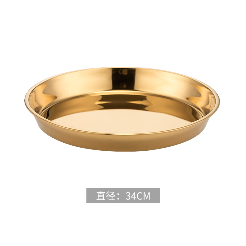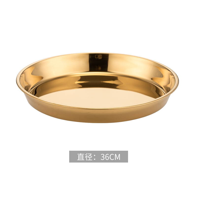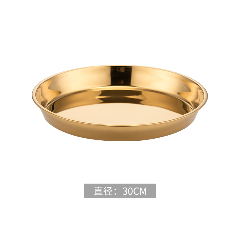 식품 학년 간단한 황금 스테인레스 스틸 접시 트레이 가정용 김이 판 차가운 케이크 플레이트 라운드 바베큐 플레이트 과일 플레이트스토어 가기