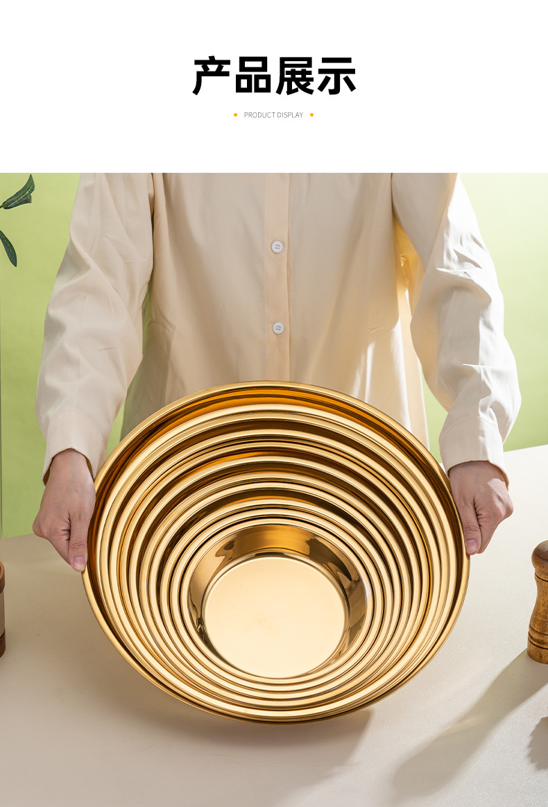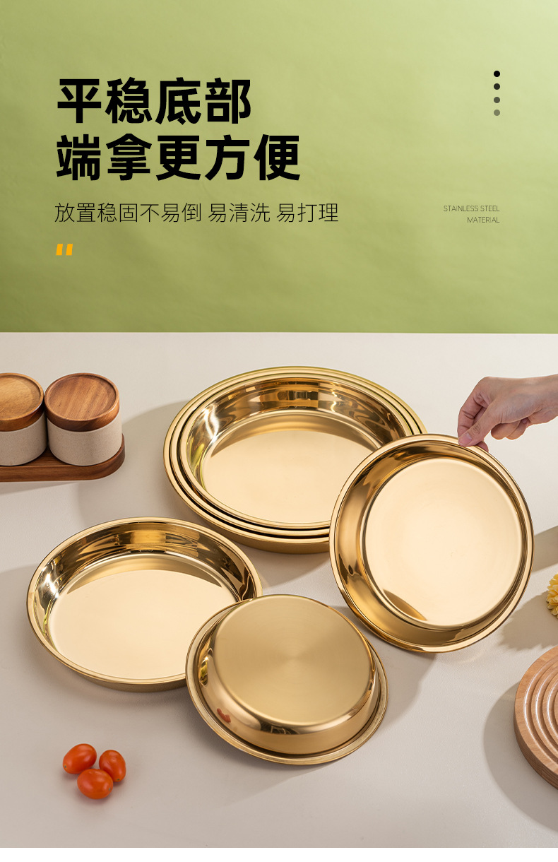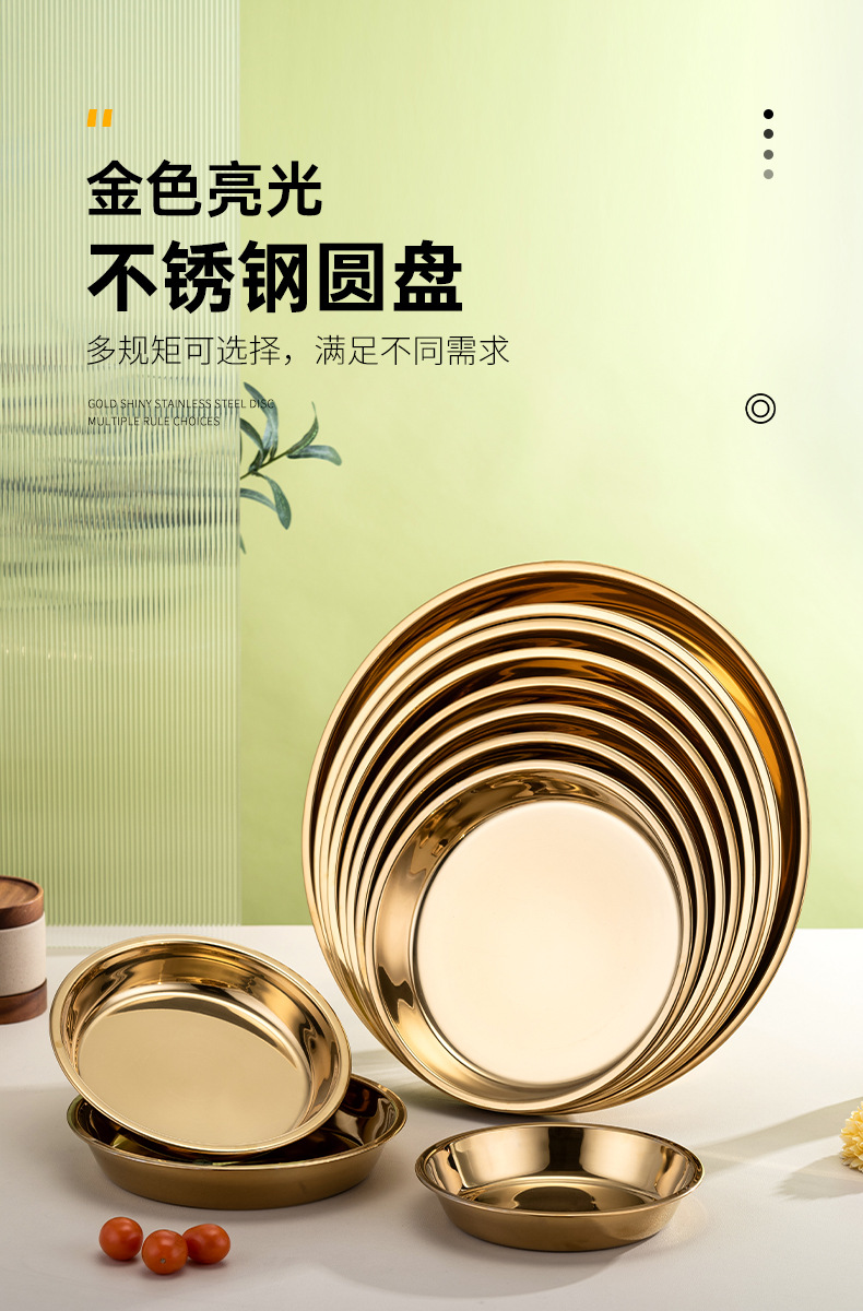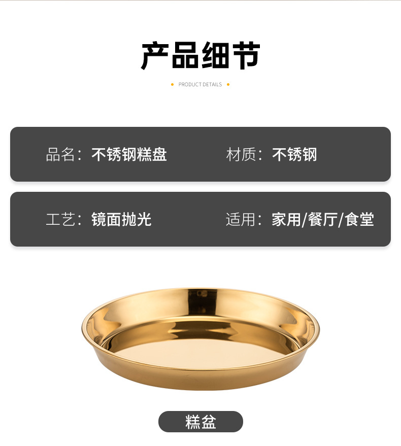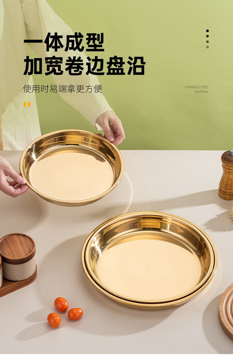 식품 학년 간단한 황금 스테인레스 스틸 접시 트레이 가정용 김이 판 차가운 케이크 플레이트 라운드 바베큐 플레이트 과일 플레이트스토어 가기