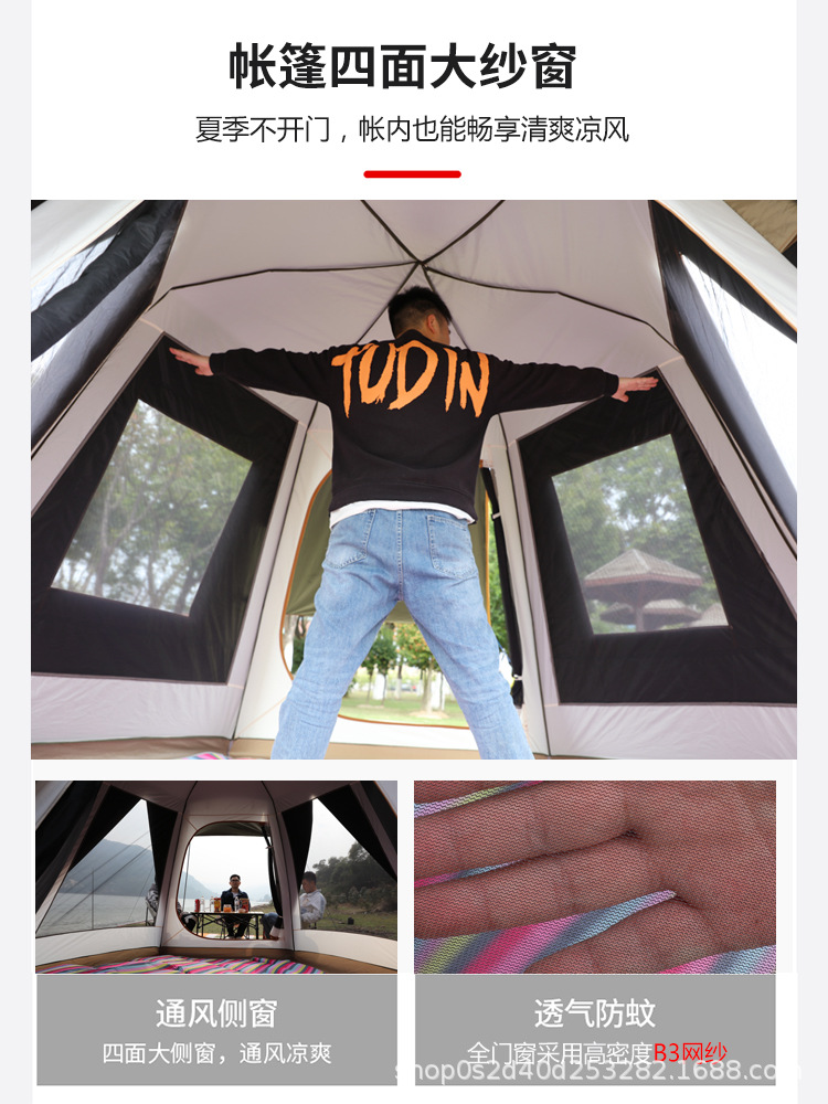 텐트 야외 완전 자동 빠른 오프닝 3-4 명 캠핑 자외선 차단제 폭풍우 패딩 블랙 접착제 모든 알루미늄 극 캠핑 5-8 명스토어 가기