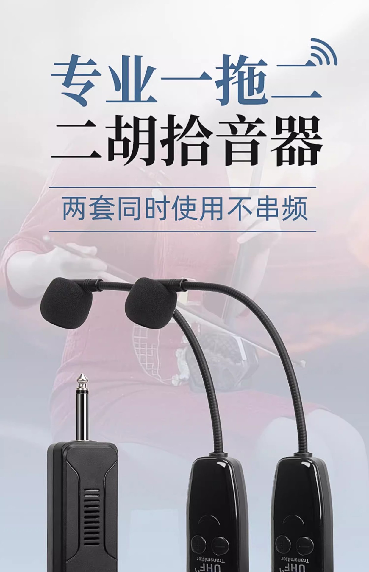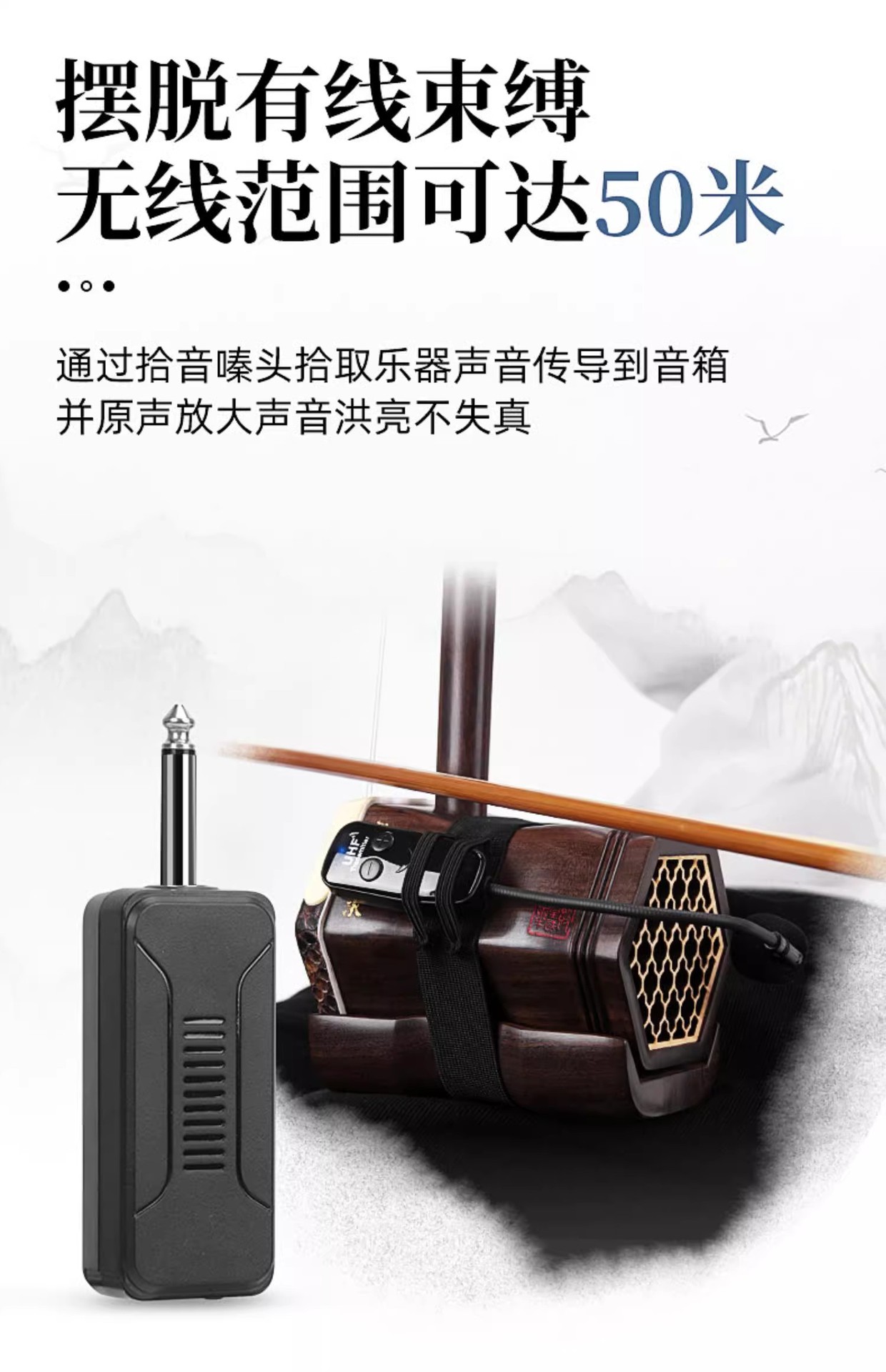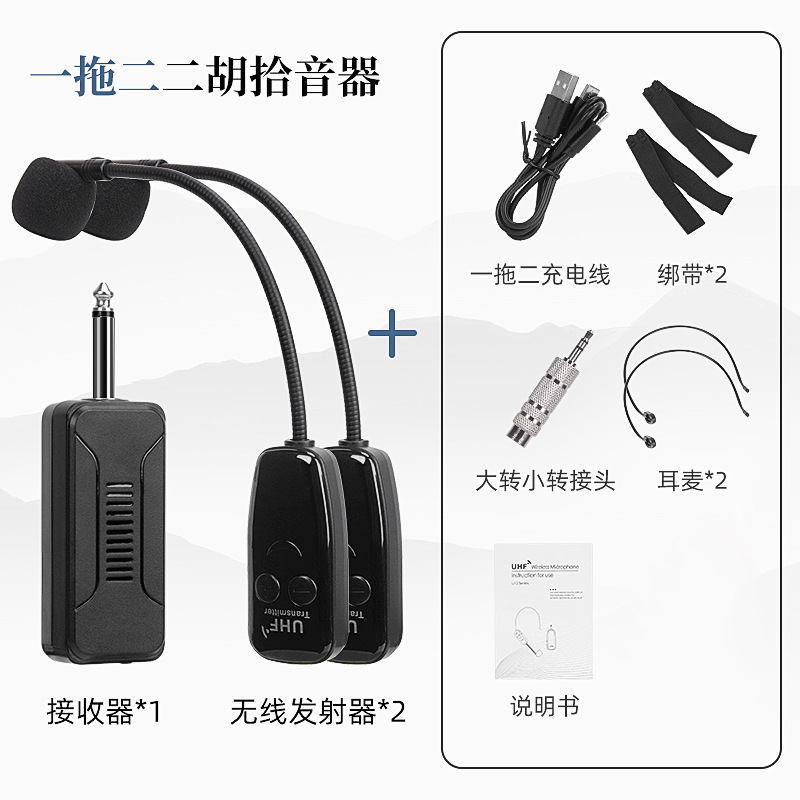 Erhu 전용 무선 픽업 2 성능 전문 라우드 스피커 높은 충실도 악기 무선 마이크 클립