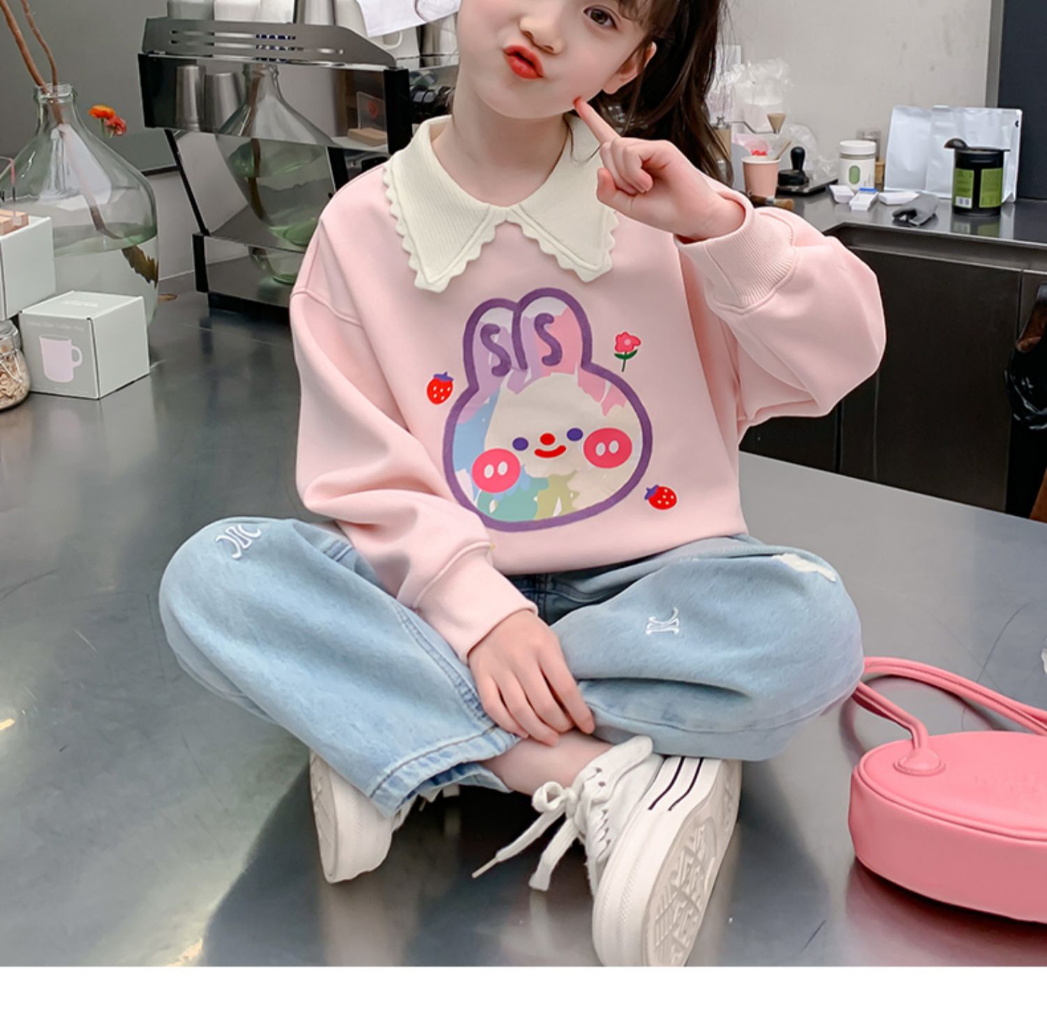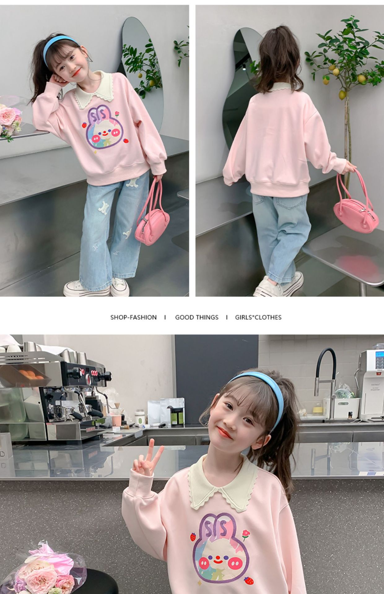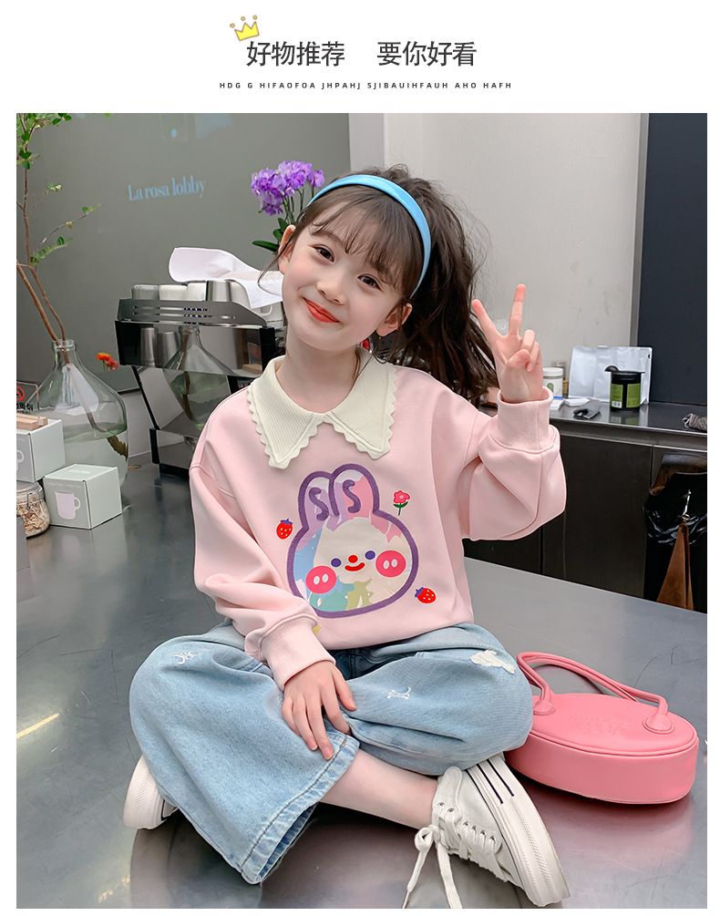 소녀 한국식 스웨터 2024 봄 새로운 어린이 캐주얼 서양식 의류 중대형 어린이 봄과 가을 인형 칼라 탑스토어 가기