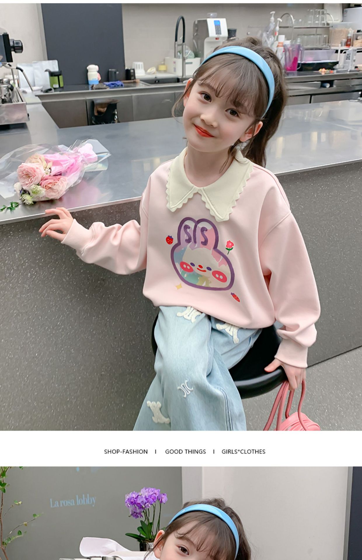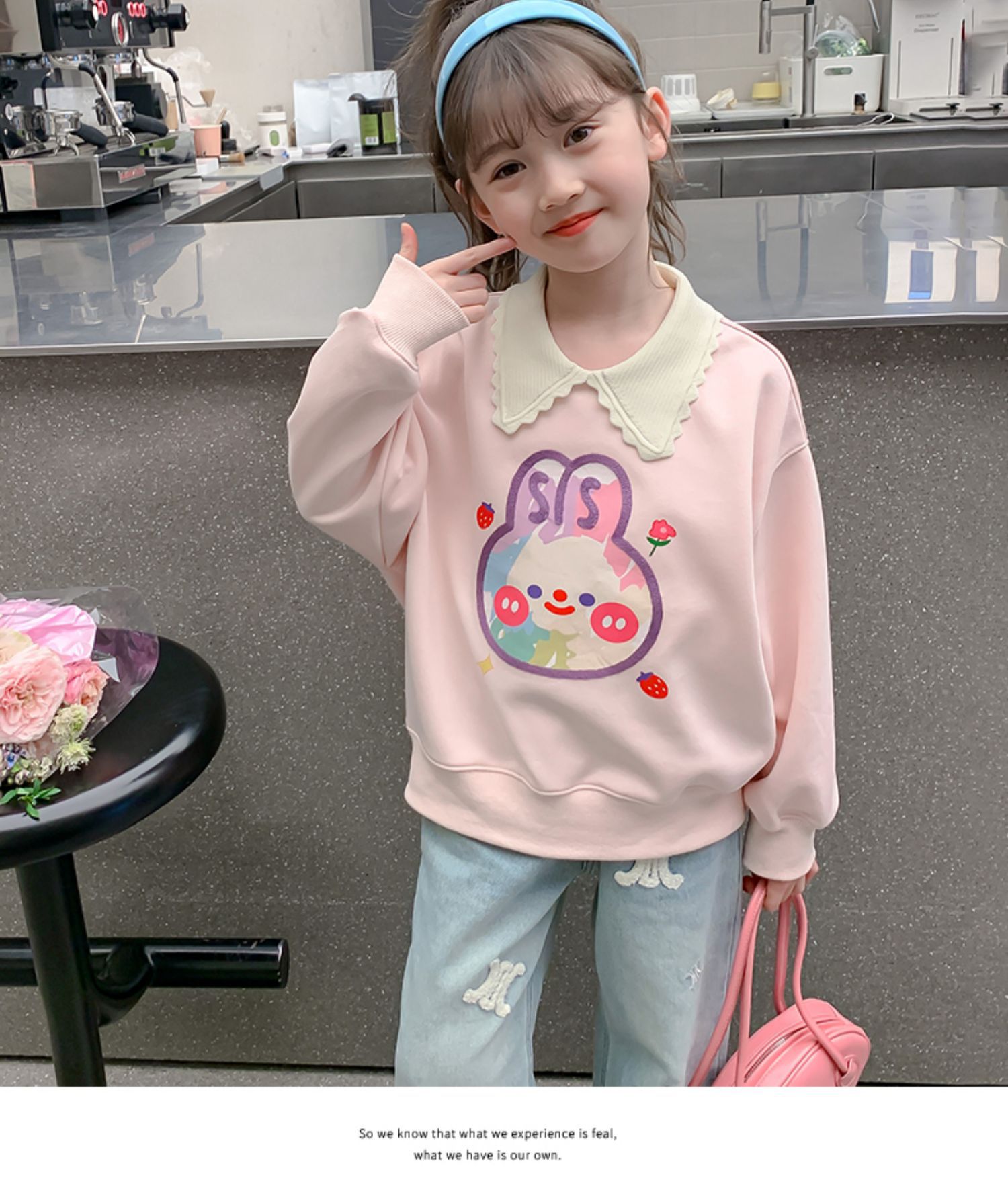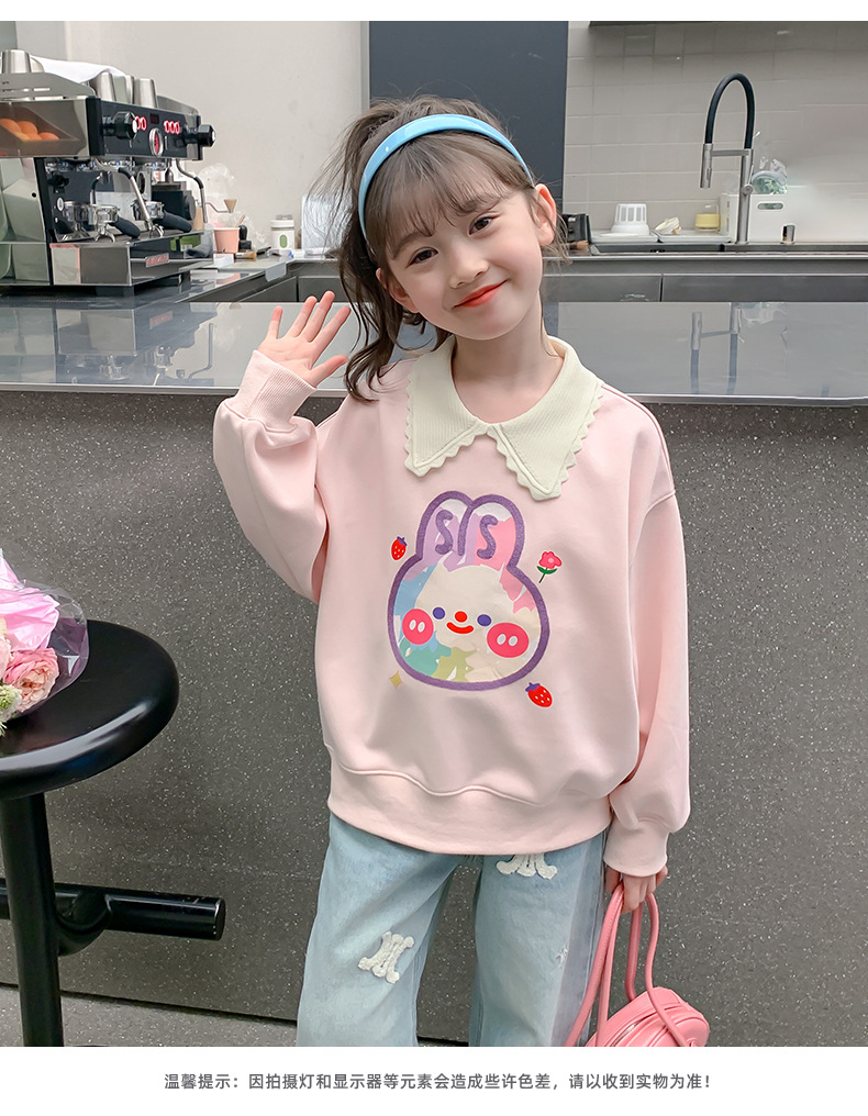 소녀 한국식 스웨터 2024 봄 새로운 어린이 캐주얼 서양식 의류 중대형 어린이 봄과 가을 인형 칼라 탑스토어 가기