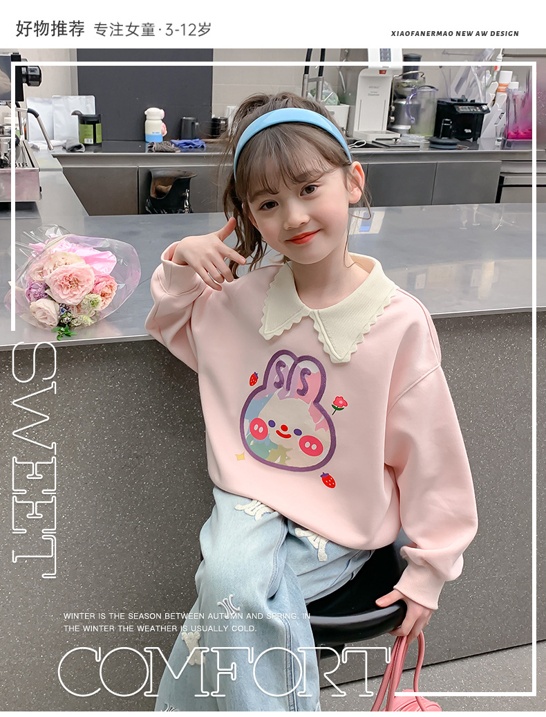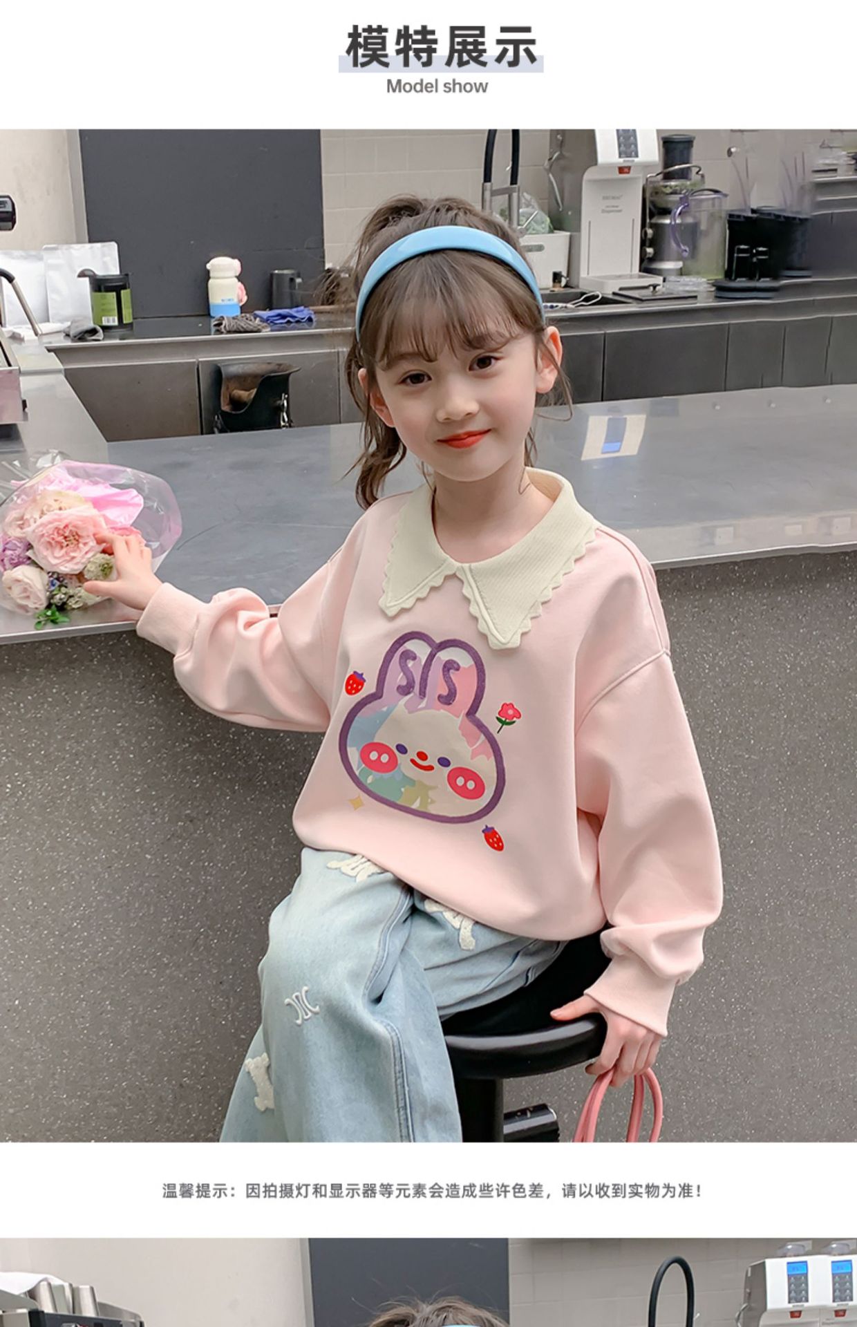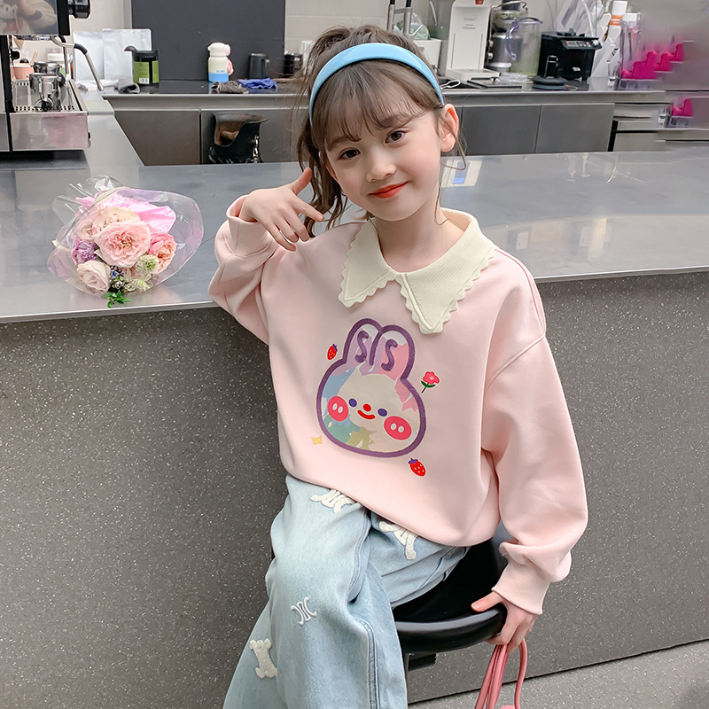 소녀 한국식 스웨터 2024 봄 새로운 어린이 캐주얼 서양식 의류 중대형 어린이 봄과 가을 인형 칼라 탑