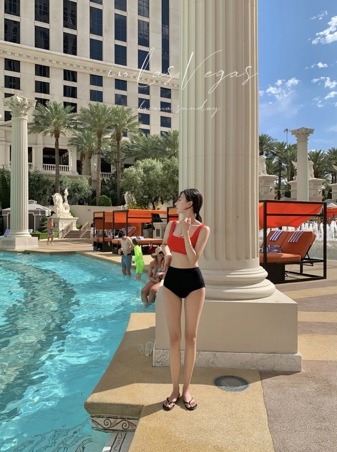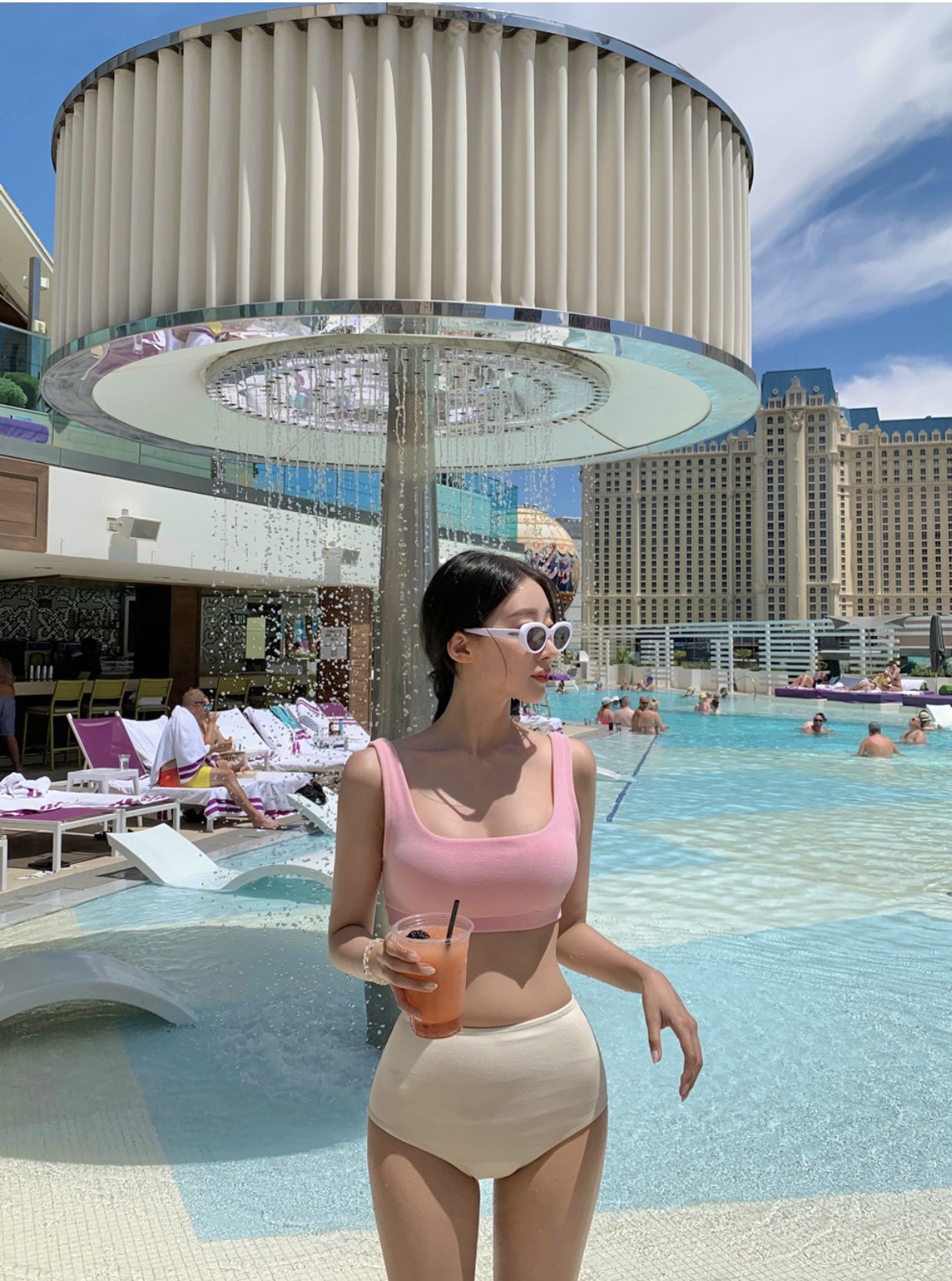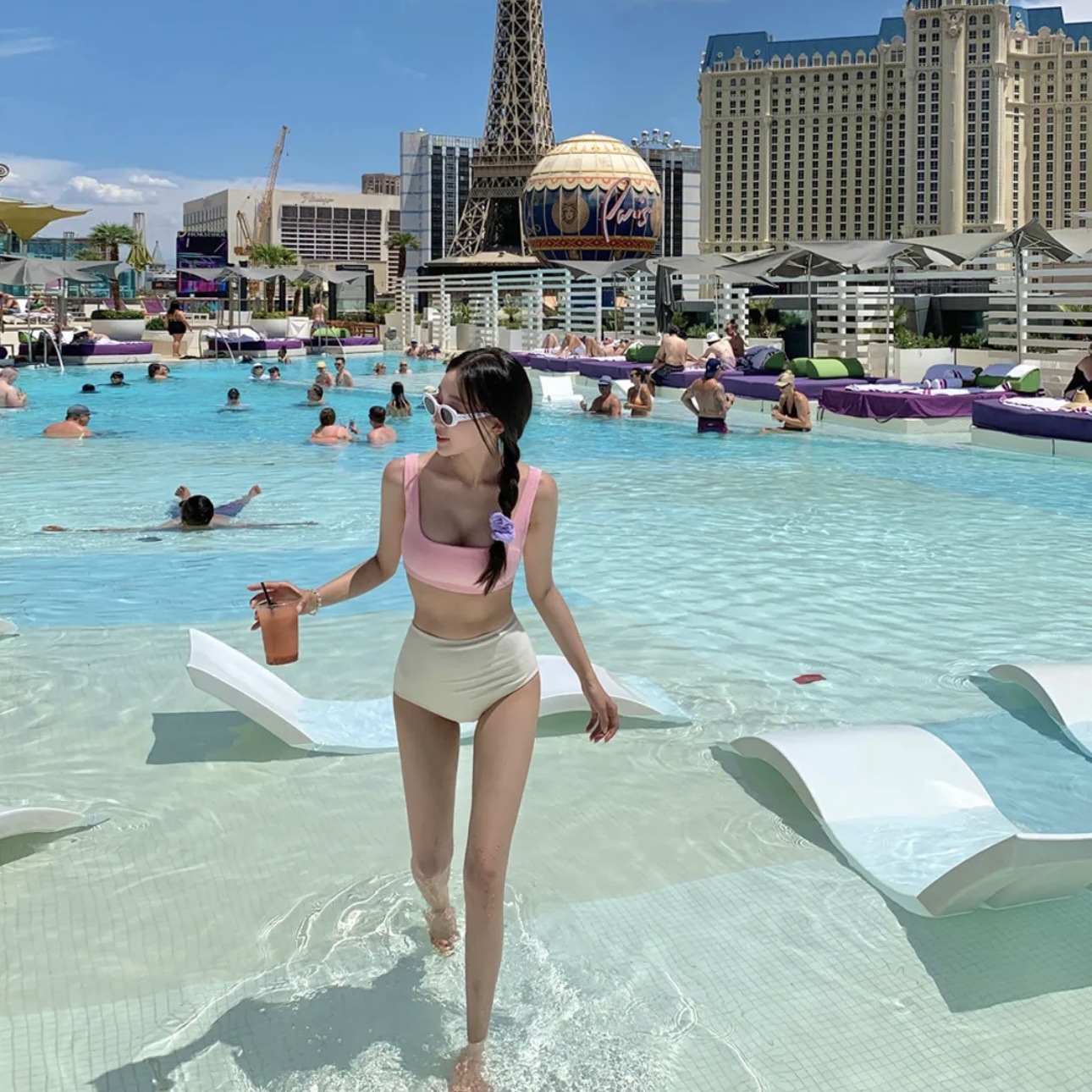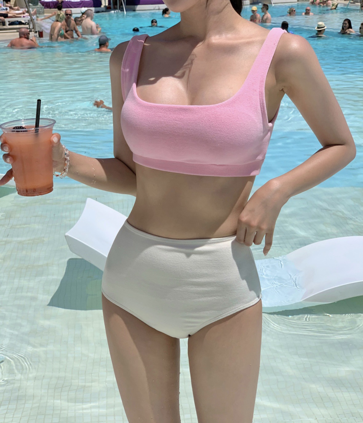 한국 동대문 스플릿 컬러 매칭 투피스 세트 간단한 하이 허리 배 커버 슬리밍 인 스타일 온천 휴가 비키니