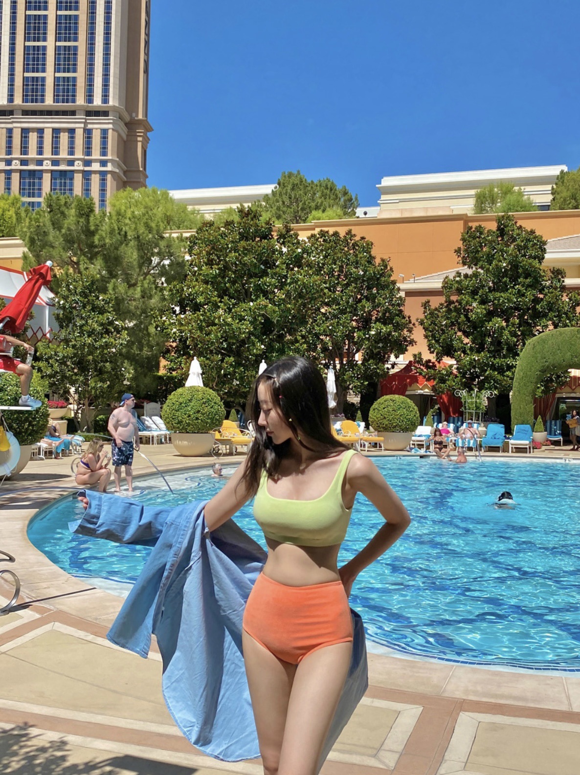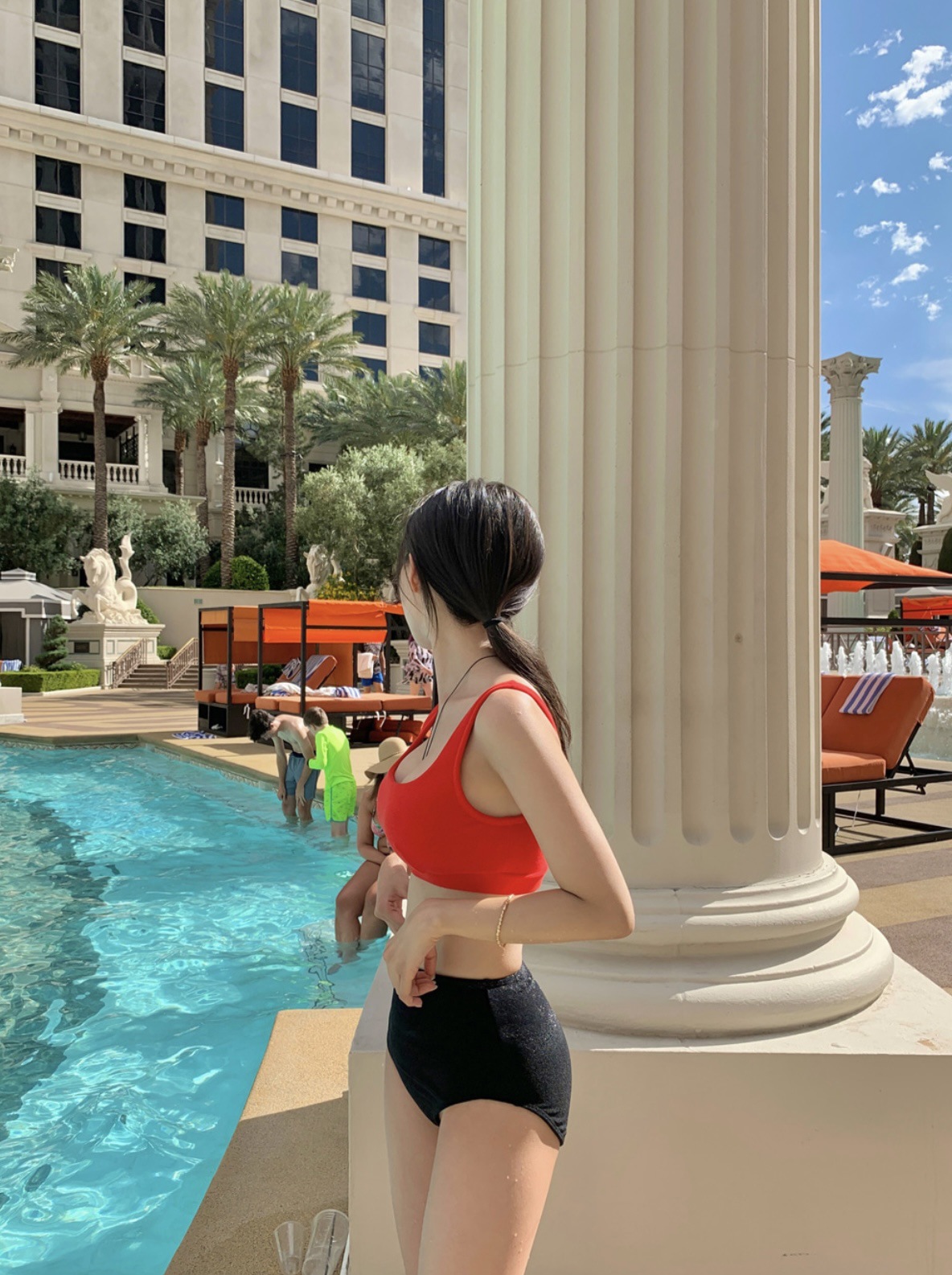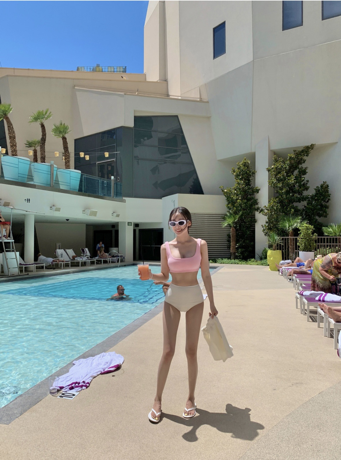 한국 동대문 스플릿 컬러 매칭 투피스 세트 간단한 하이 허리 배 커버 슬리밍 인 스타일 온천 휴가 비키니
