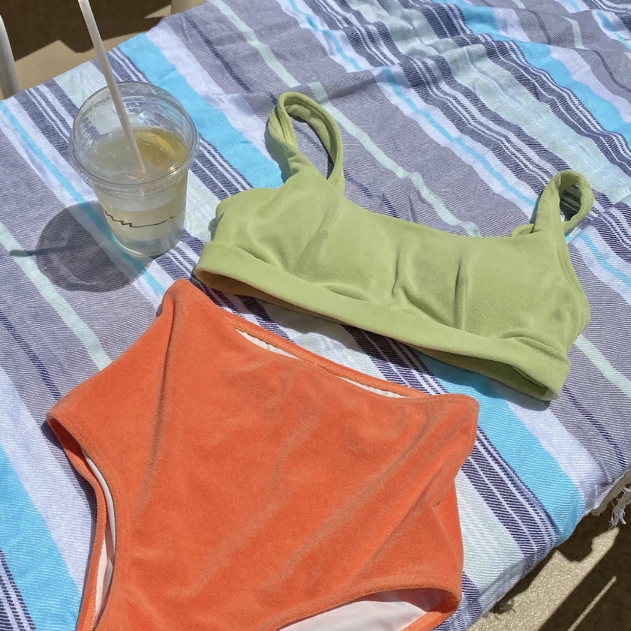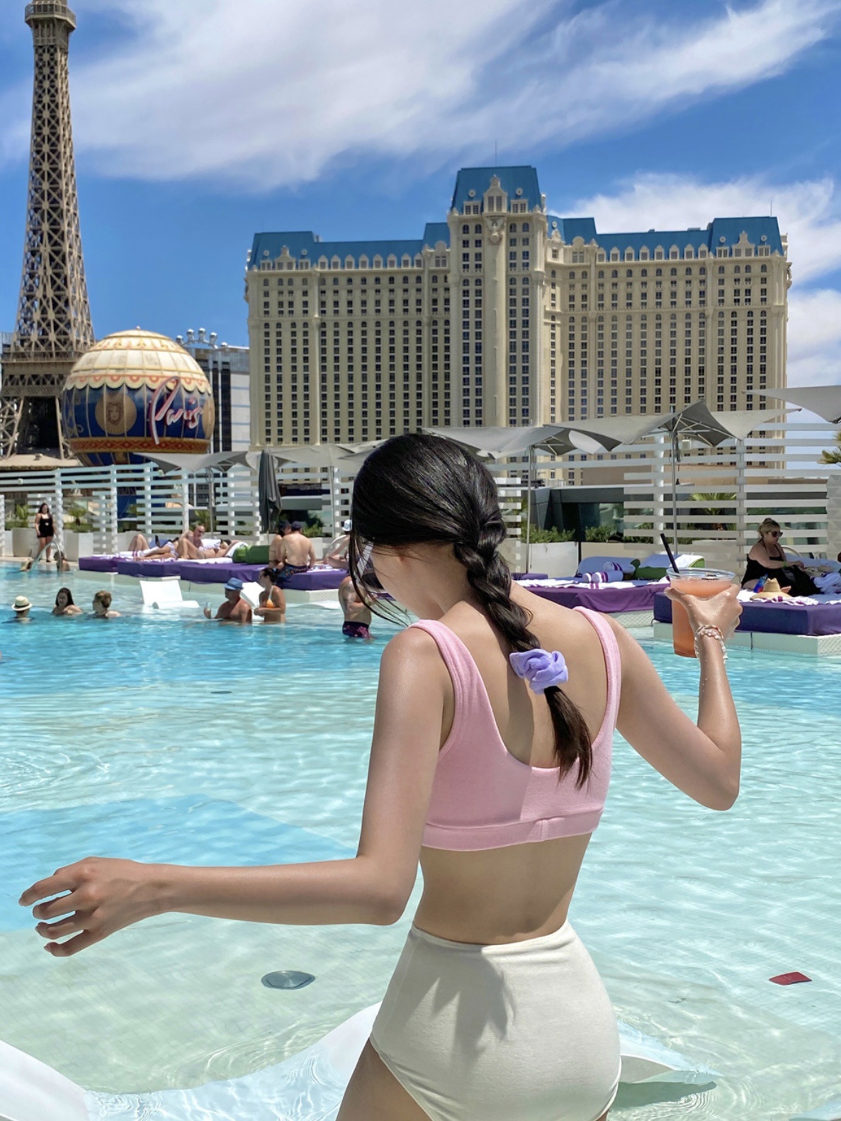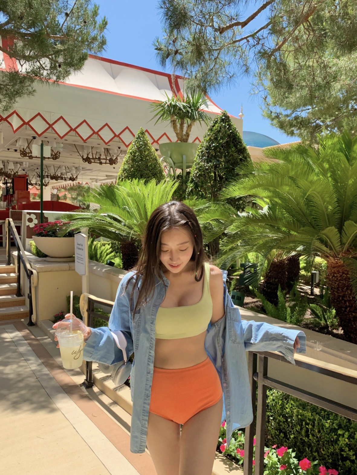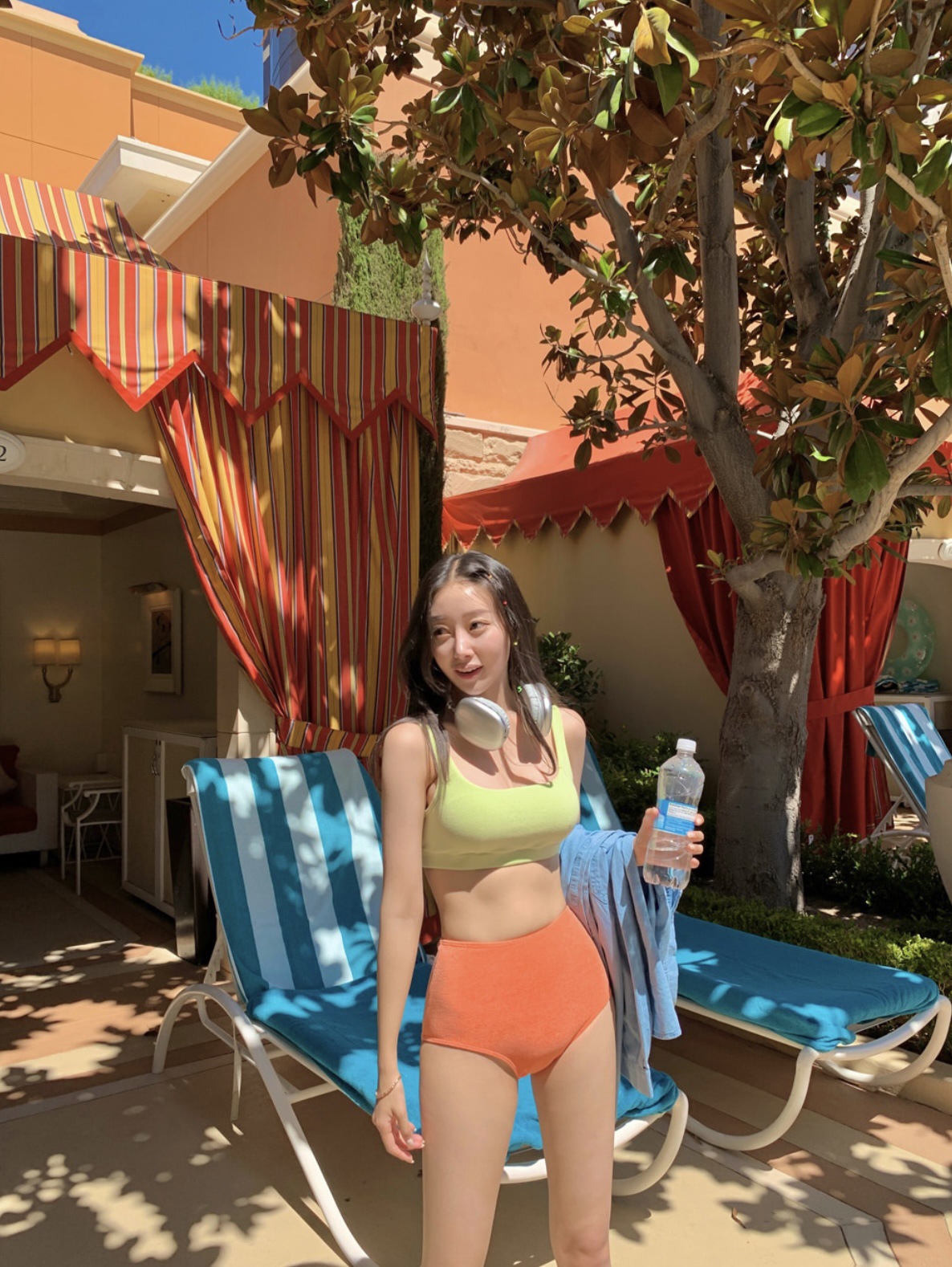 한국 동대문 스플릿 컬러 매칭 투피스 세트 간단한 하이 허리 배 커버 슬리밍 인 스타일 온천 휴가 비키니
