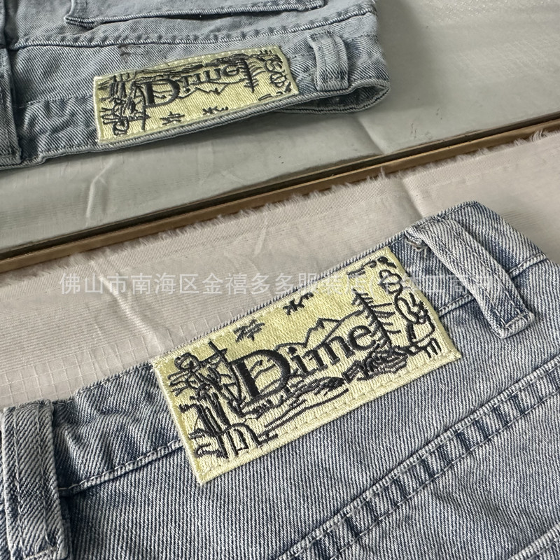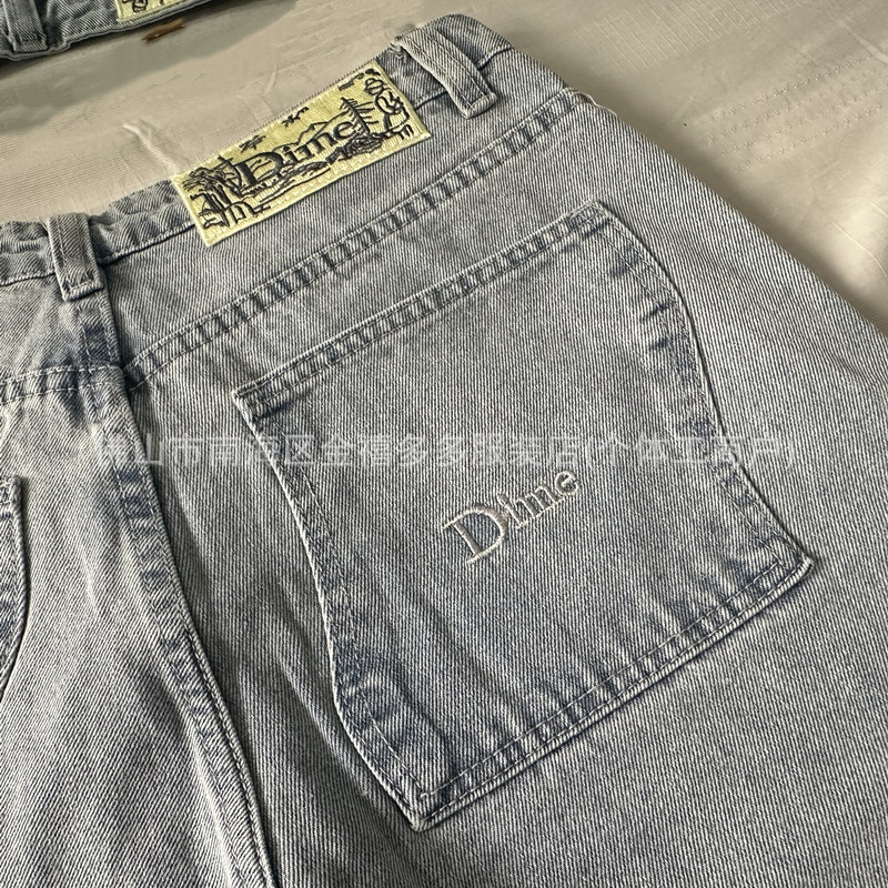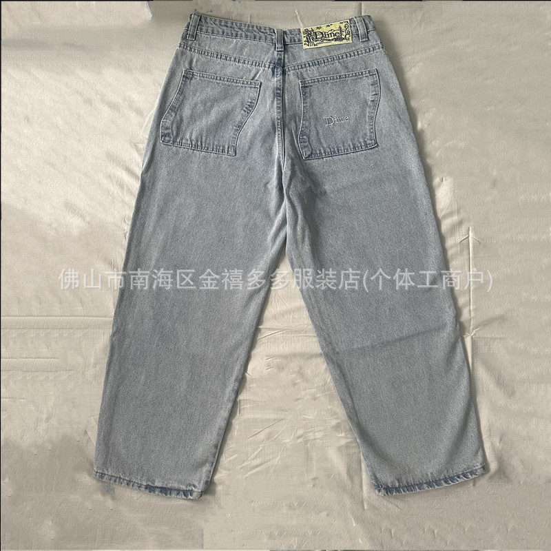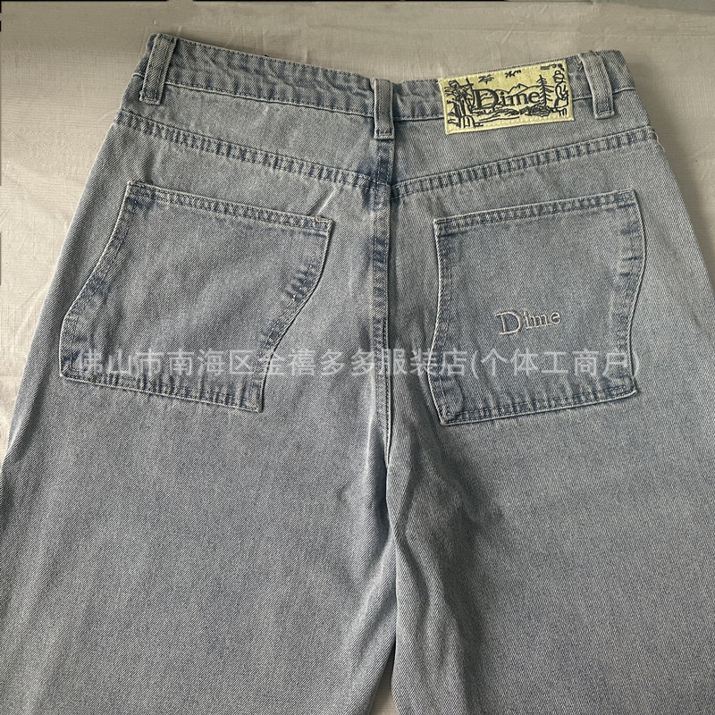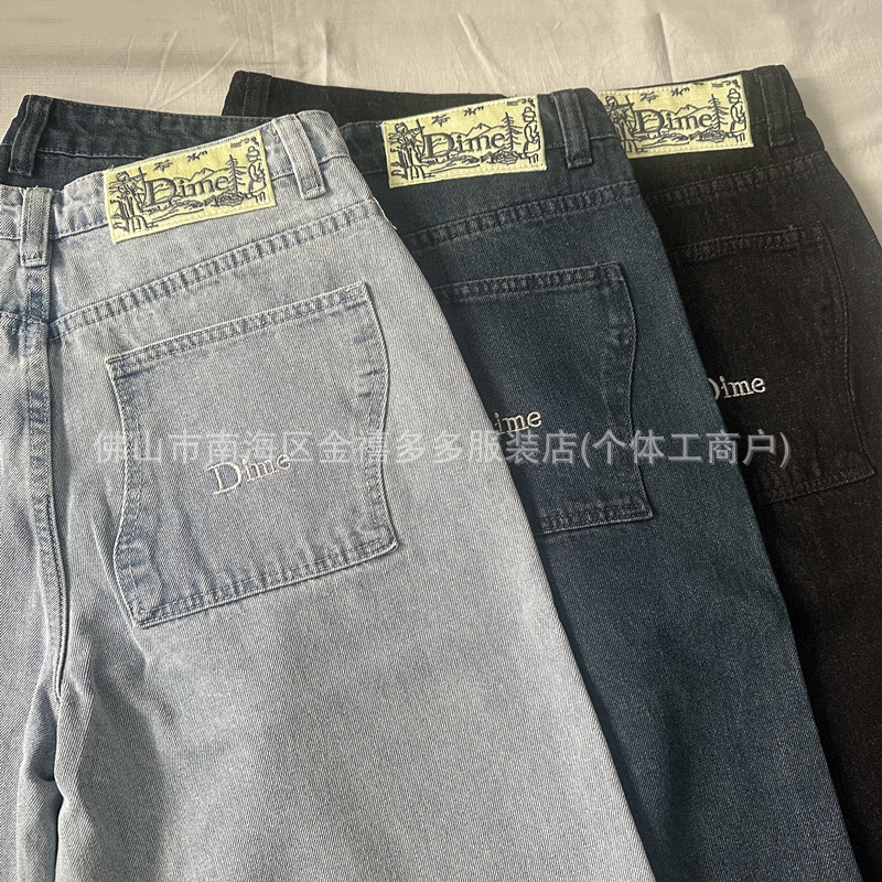 DM 봄과 여름 새로운 3 차원 자수 남성 바지 느슨한 스트레이트 중성 면화 남성과 여성의 데님 스케이트 보드 바지 패션 브랜드
