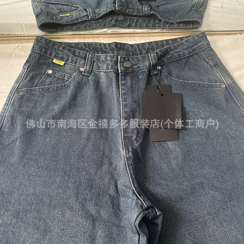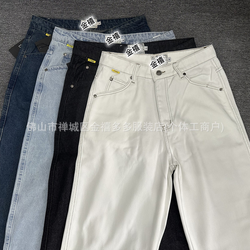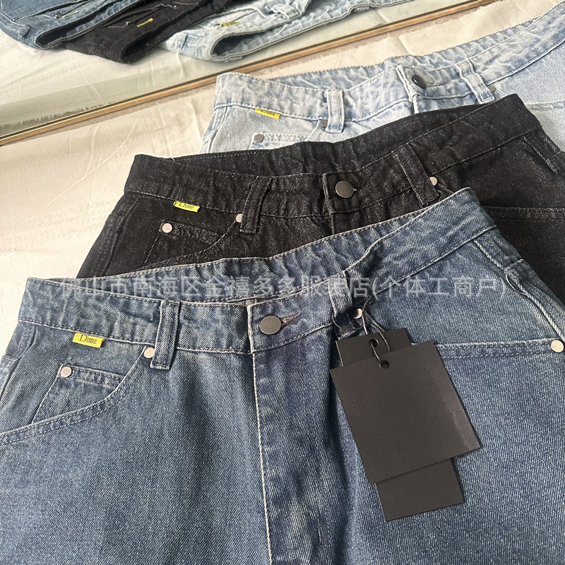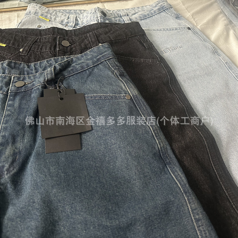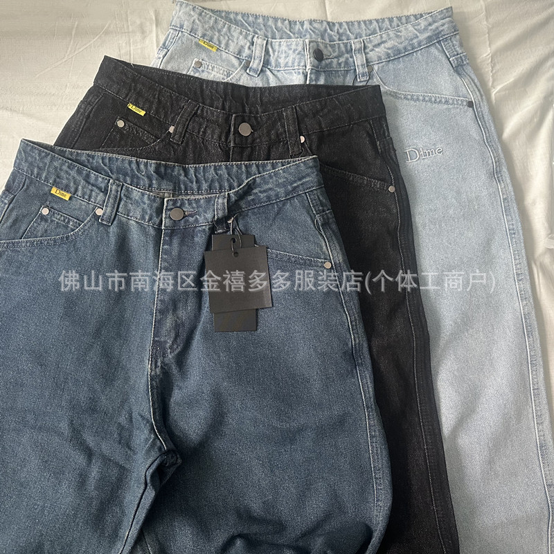 DM 봄과 여름 새로운 3 차원 자수 남성 바지 느슨한 스트레이트 중성 면화 남성과 여성의 데님 스케이트 보드 바지 패션 브랜드