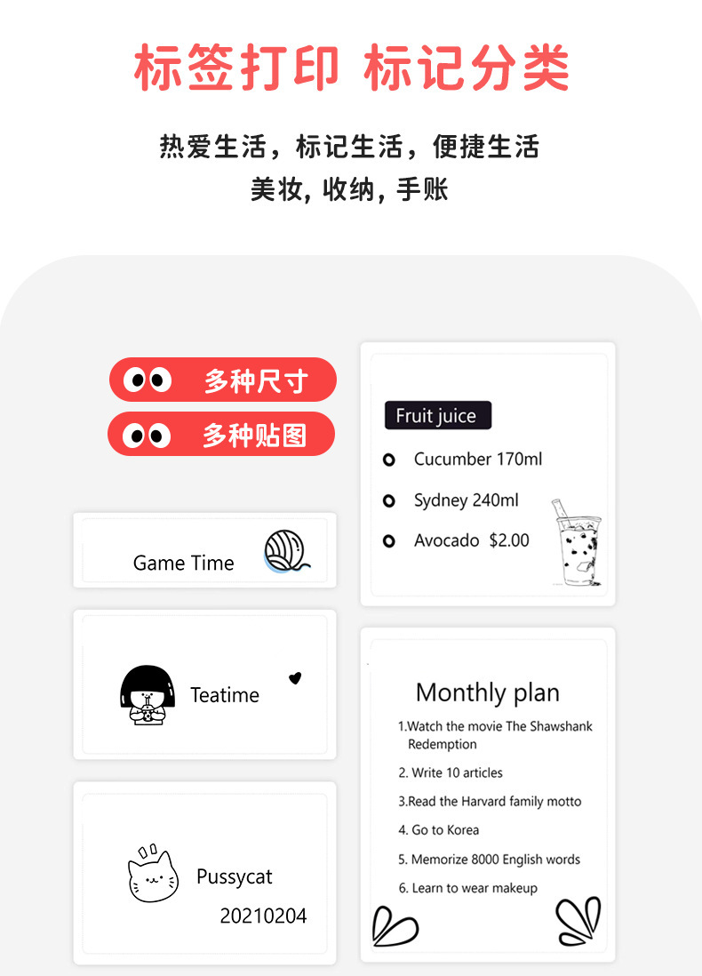 미니 프린터 크로스 보더 HD 편리한 넓은 잘못된 프린터 잉크없는 텍스트 라벨 프린터스토어 가기