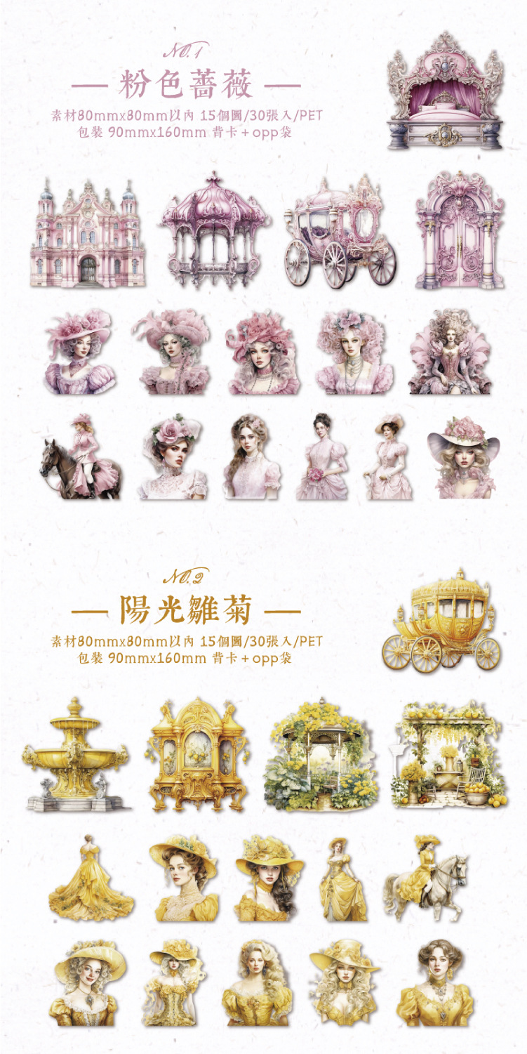 Yanji PET 스티커 가방 Gubao Princess 시리즈 복고풍 캐릭터 손 계정 소재 장식 콜라주 스티커 6 모델스토어 가기
