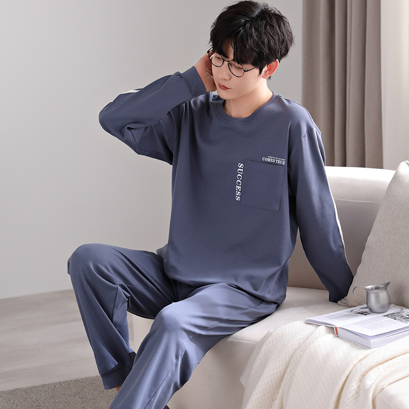 [100% 면] 봄과 가을 잠옷 남자 긴 소매 캐주얼 플러스 사이즈 220 진 홈 의류 가을 겨울 세트스토어 가기
