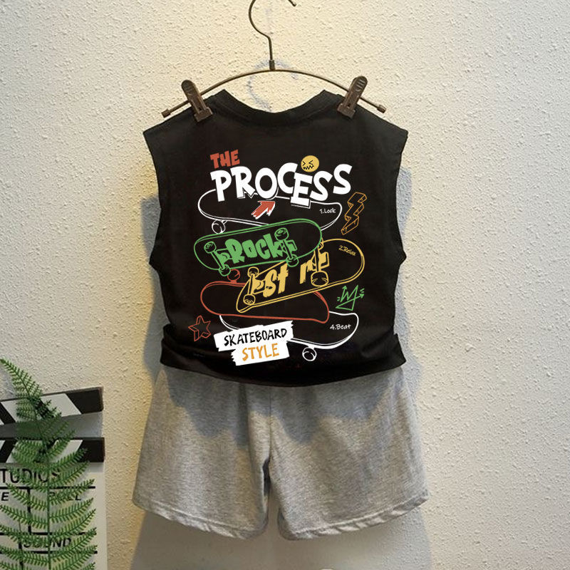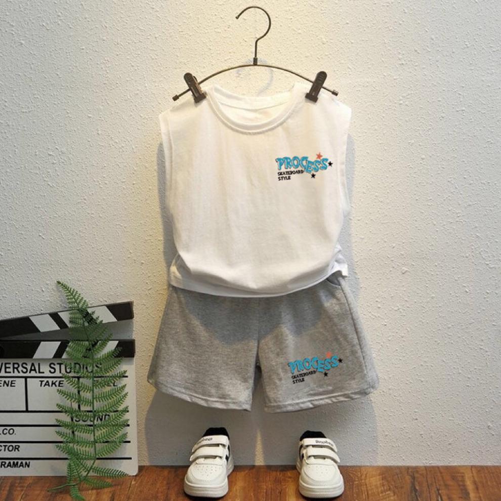 2024 아동복 소년 여름 옷 세트 어린이 조끼 투피스 민소매 티셔츠면 느슨한 소년 여름스토어 가기