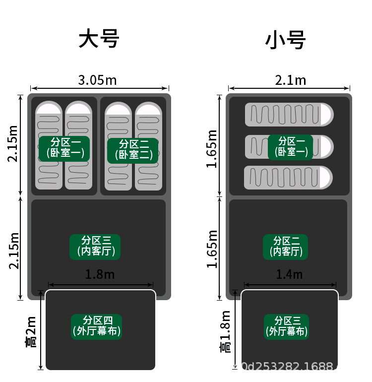 • 소형 : 3~5인(330x210x180cm) 8.8kg