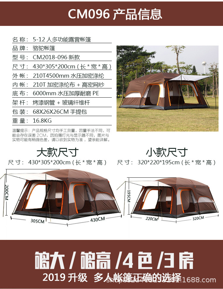 텐트 야외 5-8 명, 방 2 개, 홀 1 개, 이층 다인용 캠핑과 야영 두꺼운 비방 그룹 10-12 명 텐트
