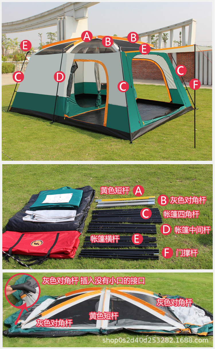 텐트 야외 5-8 명, 방 2 개, 홀 1 개, 이층 다인용 캠핑과 야영 두꺼운 비방 그룹 10-12 명 텐트스토어 가기