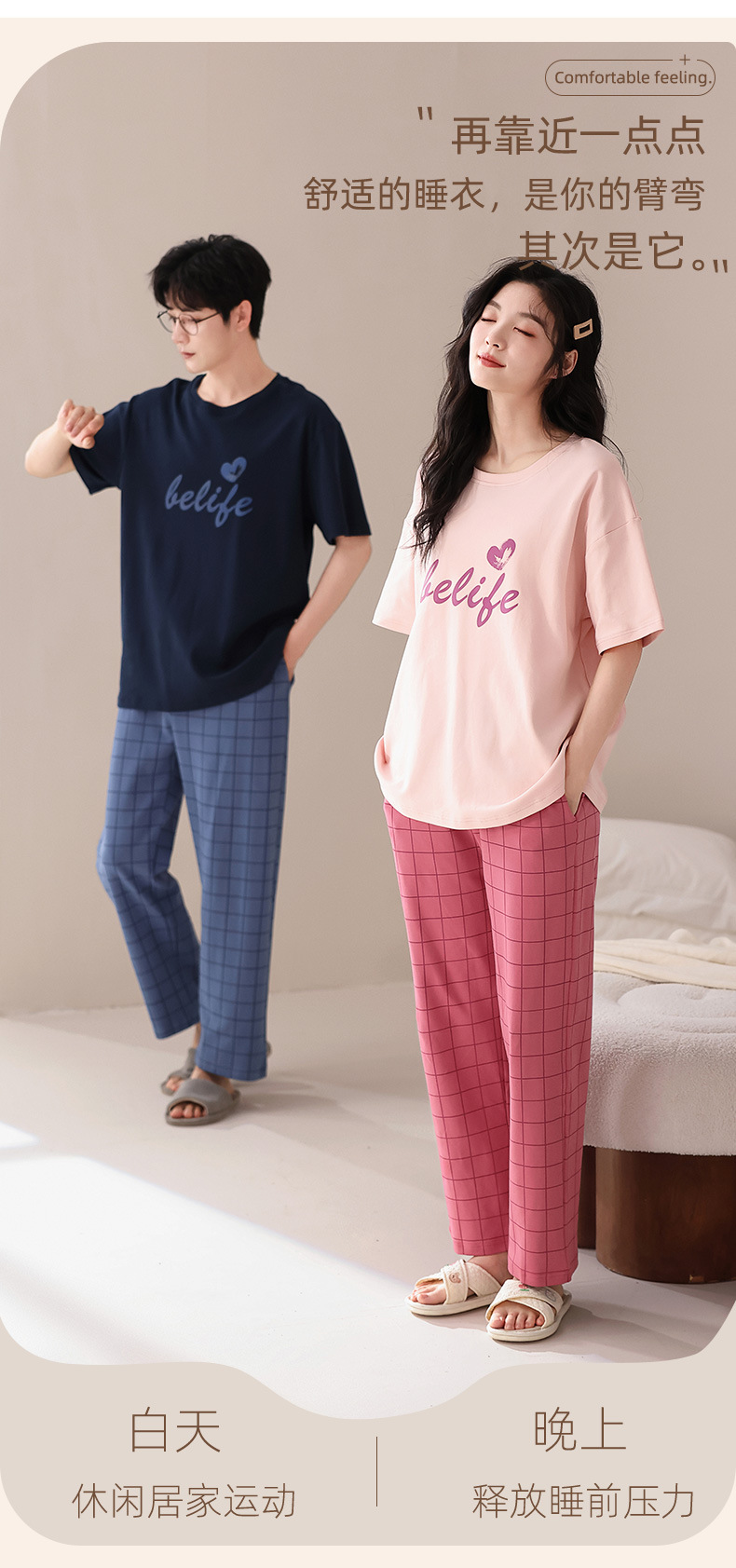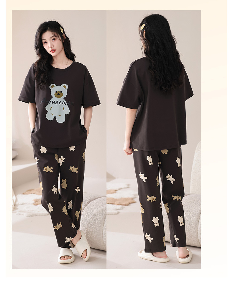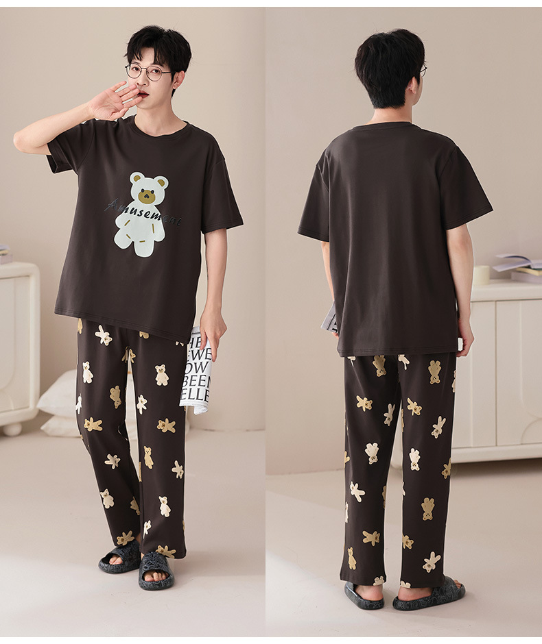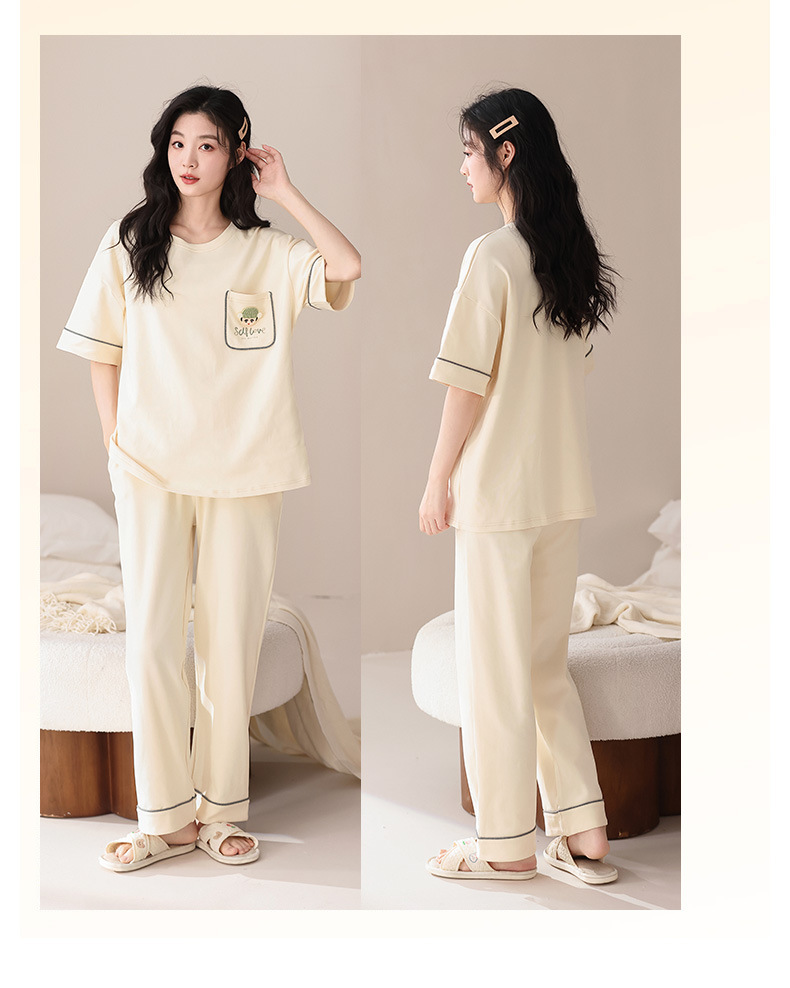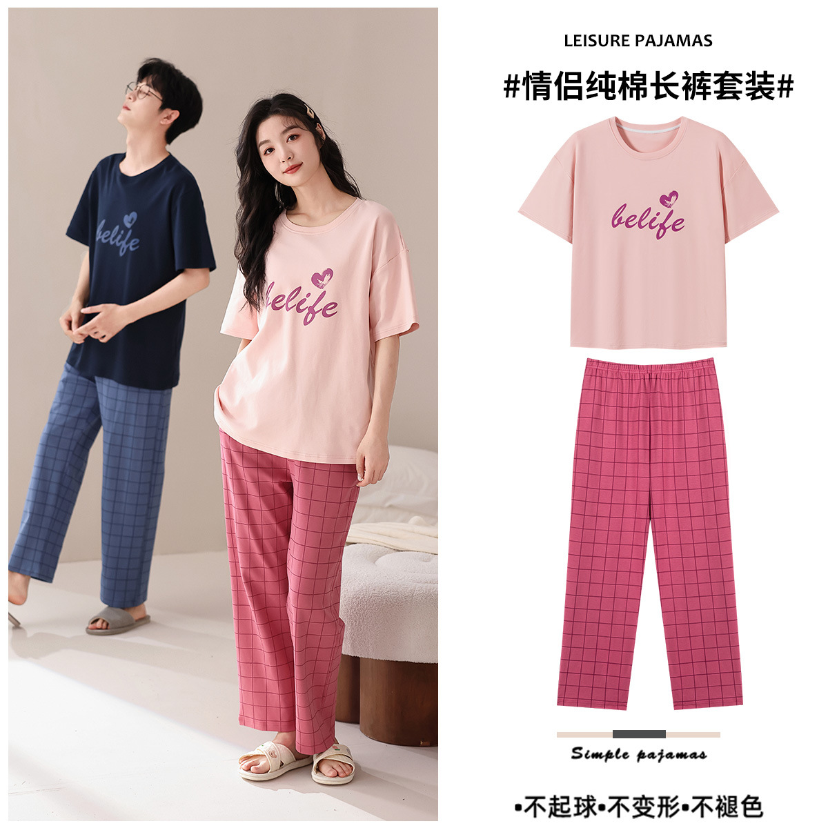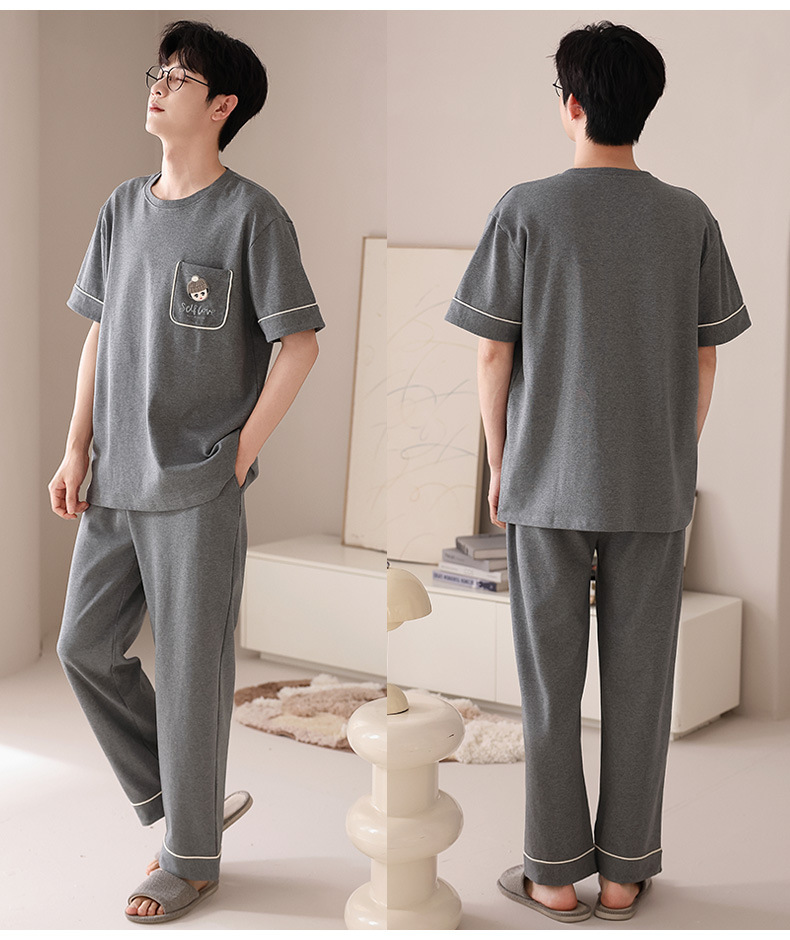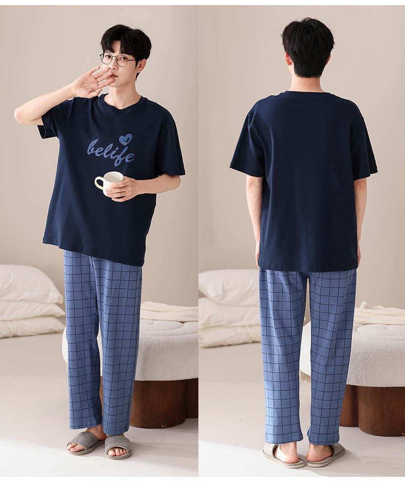 퓨어 코튼 커플 잠옷 여성 여름 라운드 넥 캐주얼 반팔 바지 한국 간단한 겉옷 남성 홈웨어 세트스토어 가기